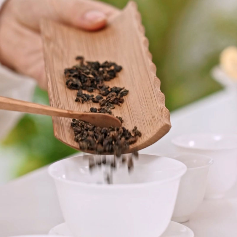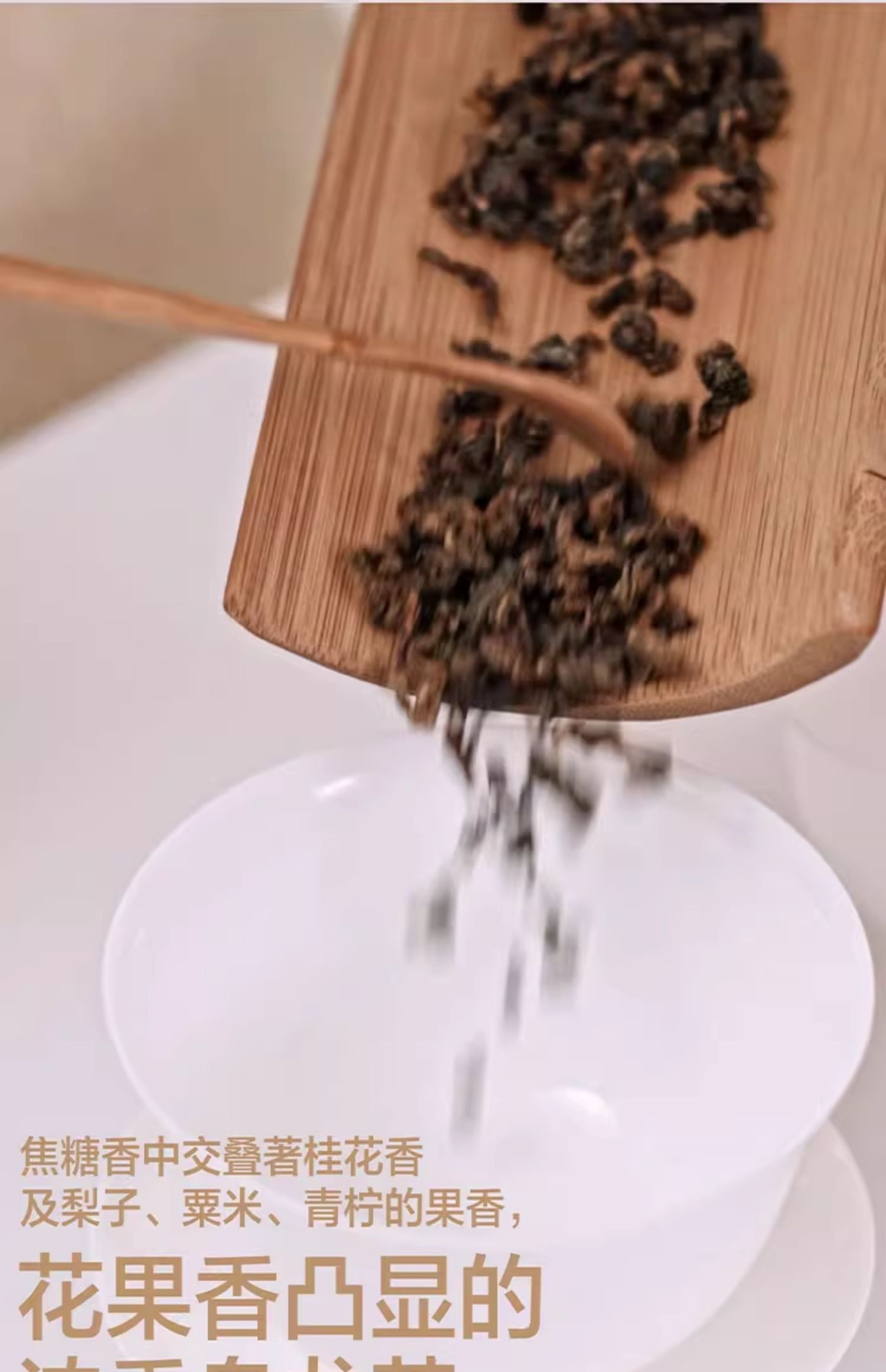 Tea aroma: The aroma of caramel is overlaid with the aroma of osmanthus and the fruity aroma of pear, corn, and lime. This is a strong-flavored oolong tea with an obvious floral and fruity aroma.