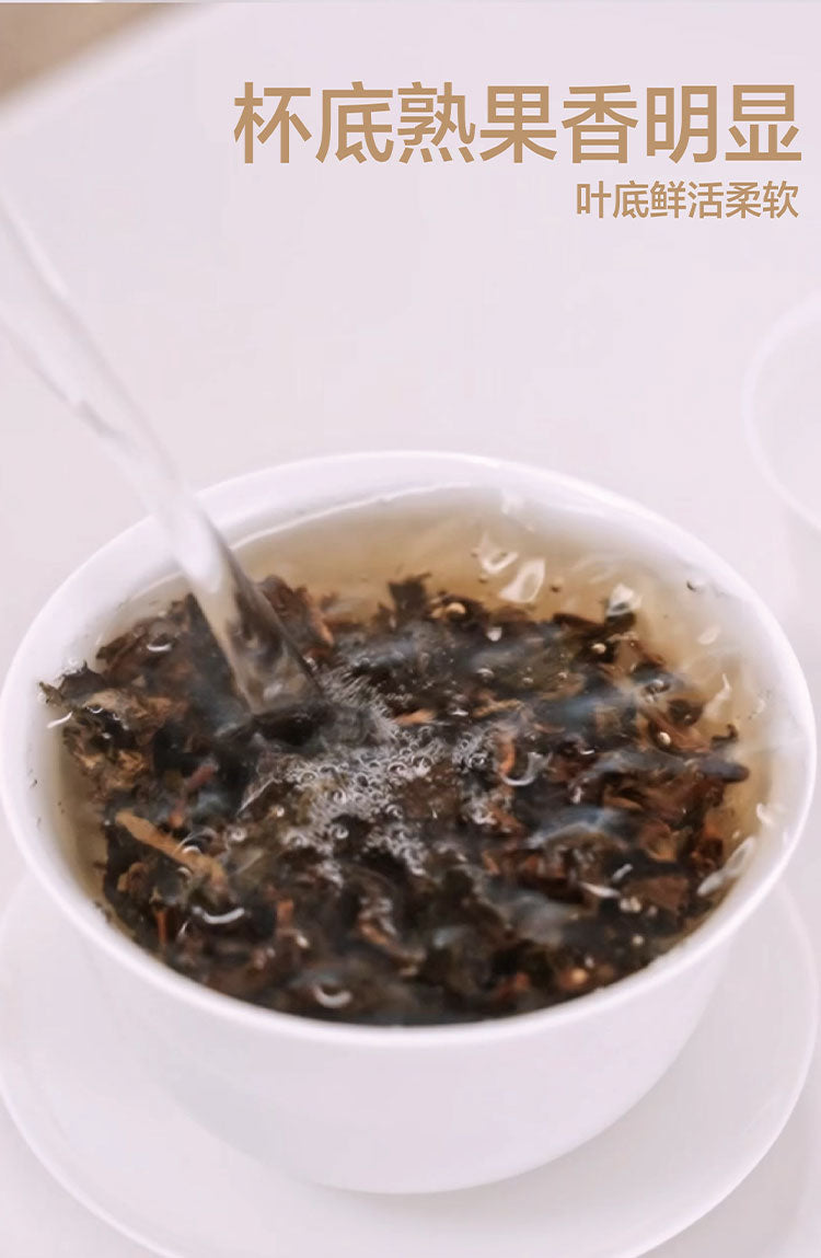 Tea shape: The dry tea particles are hemispherical, and the tea stems are clearly exposed due to the process of rolling without removing the stems. The color is brown and green and oily, with a little bit of broken pieces. The smell of the dry tea has a rich caramel aroma and the aroma of cooked grains.After brewing, the tea leaves are fresh and moist, and the tea leaves are stretched, plump and soft with stems.