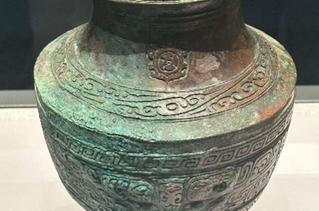 This antique teapot was inspired by Chinese Zhou Dynasty bronze ware engraved patterns called Taotie pattern, this is a beautiful set that embodies functions and aesthetics.