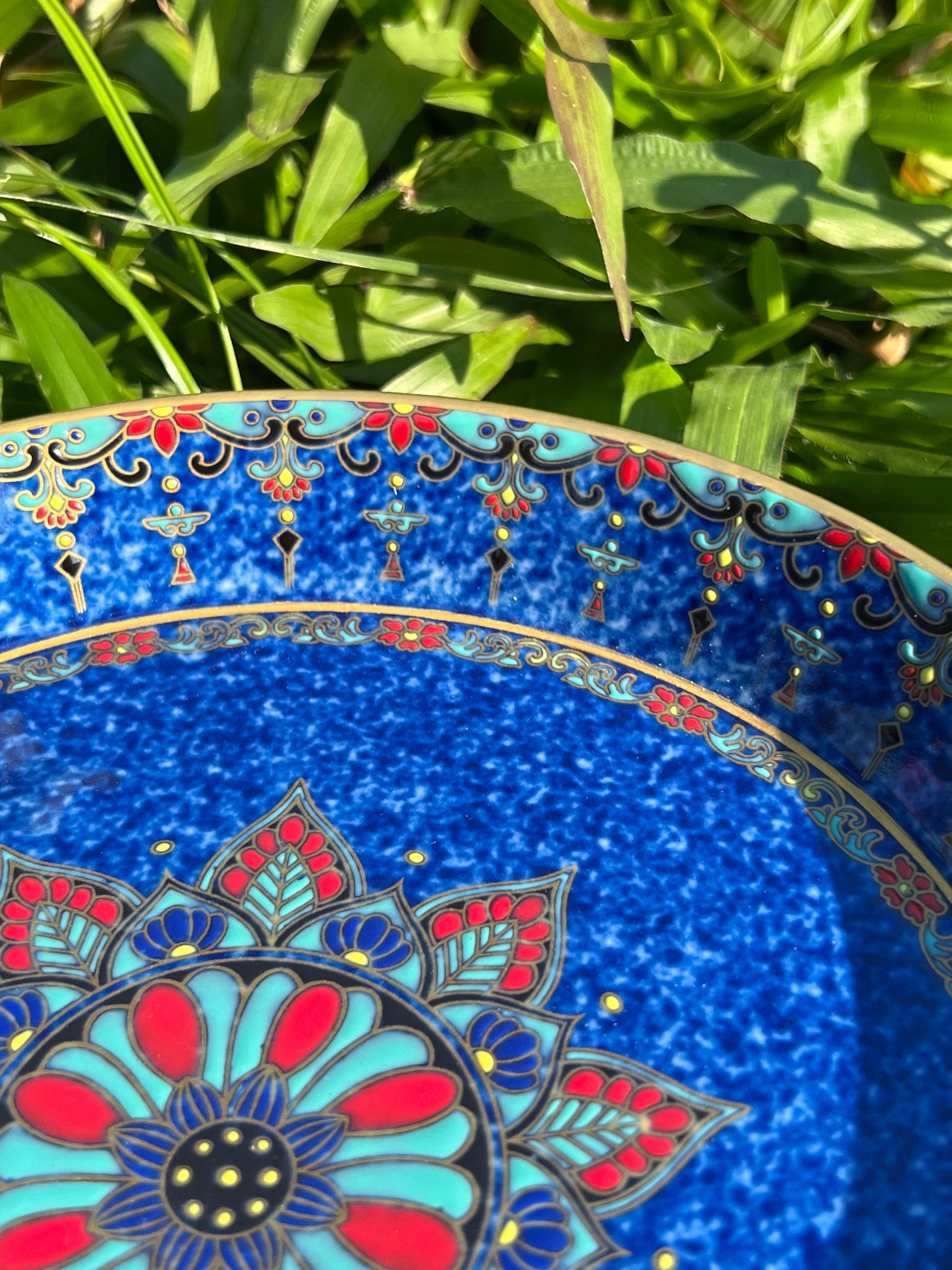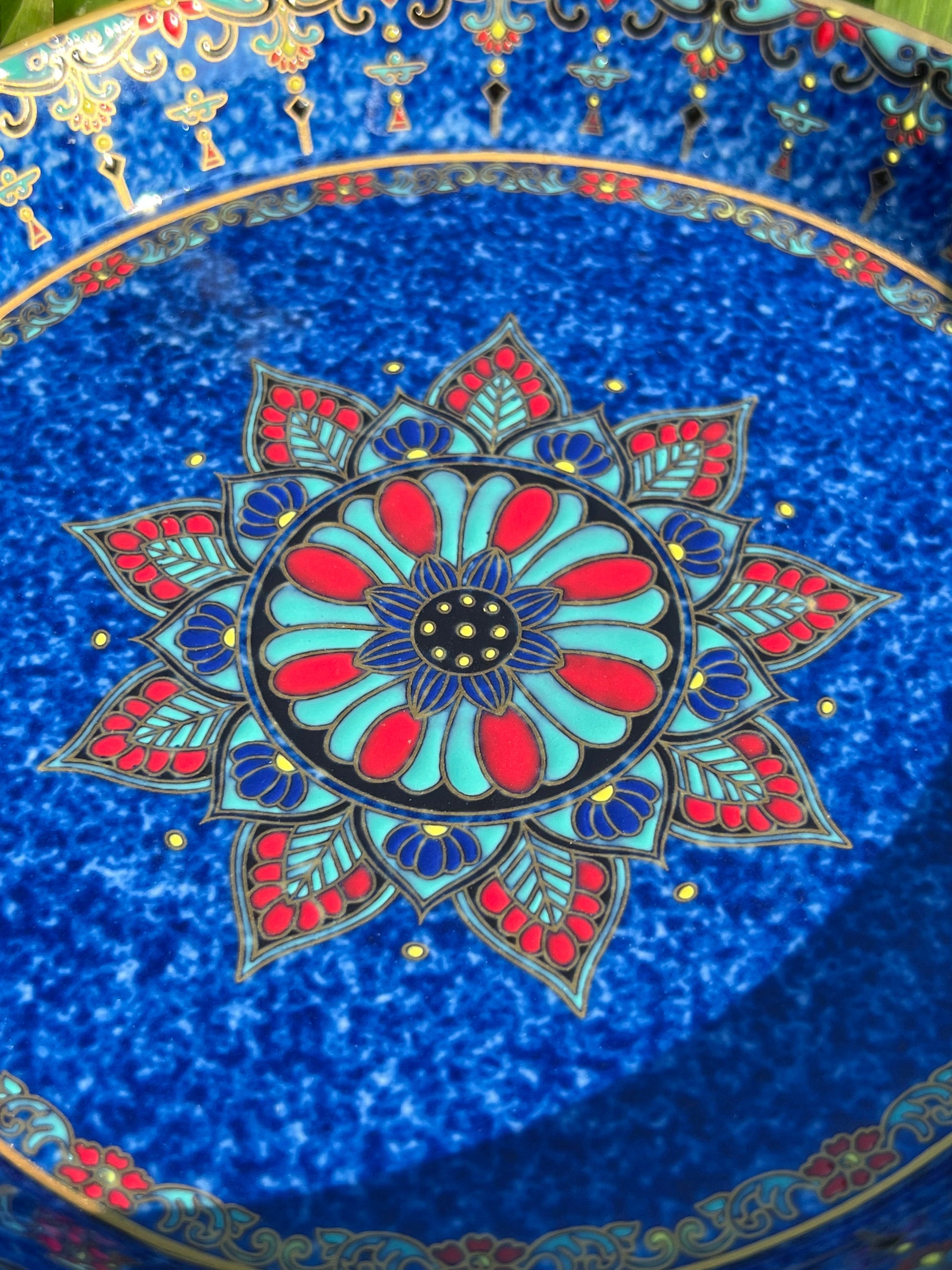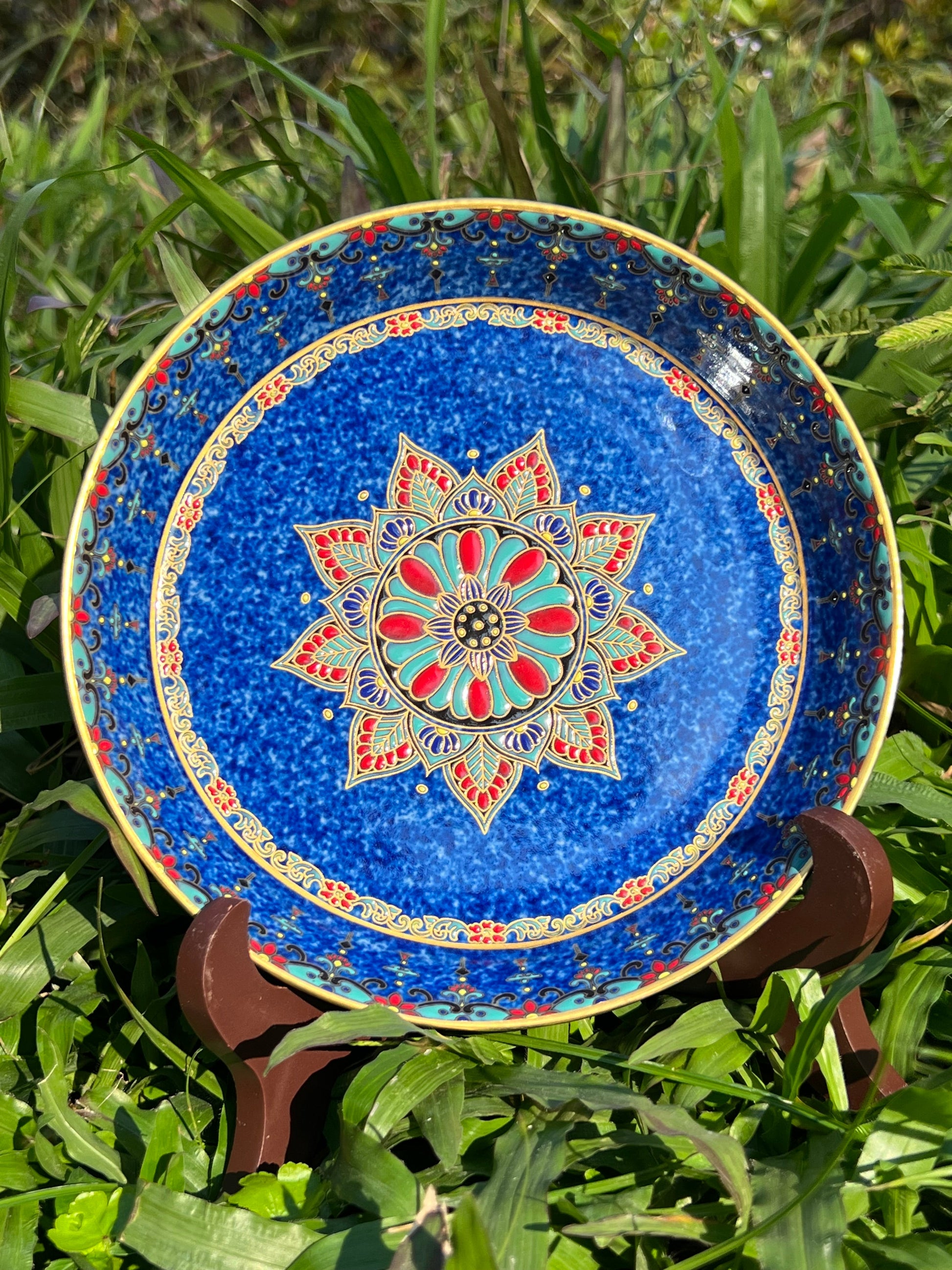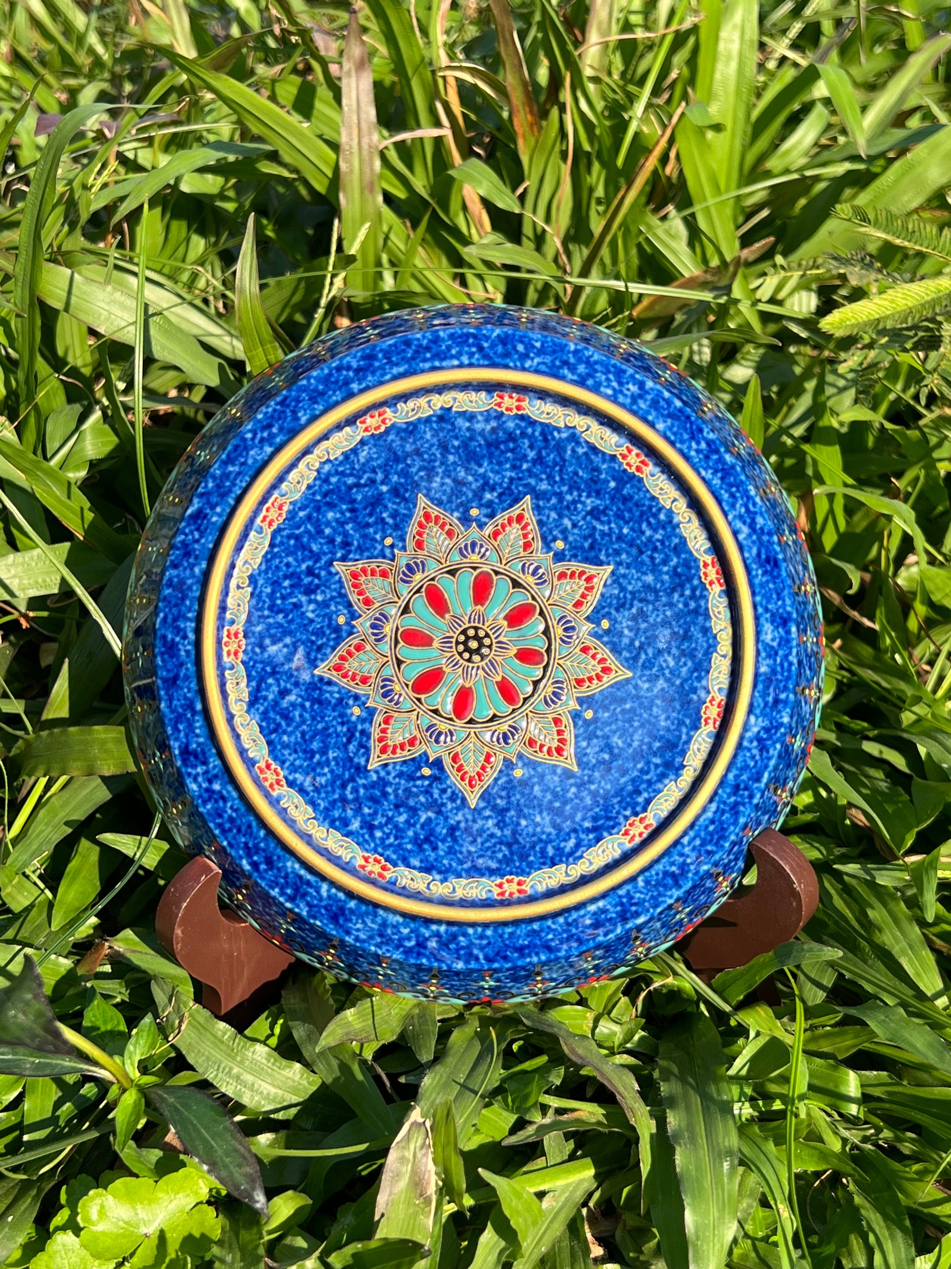Please appreciate the strong visual contrast between the snow-like sprinkled blue glaze and the enamel craftsmanship. The blue and gold color matching is full of high-end feeling. It is painted by the very experienced ceramic painters who have practicing for over 30 years from Chinese Jingdezhen..The painted gold pigment is made of 24k pure gold.