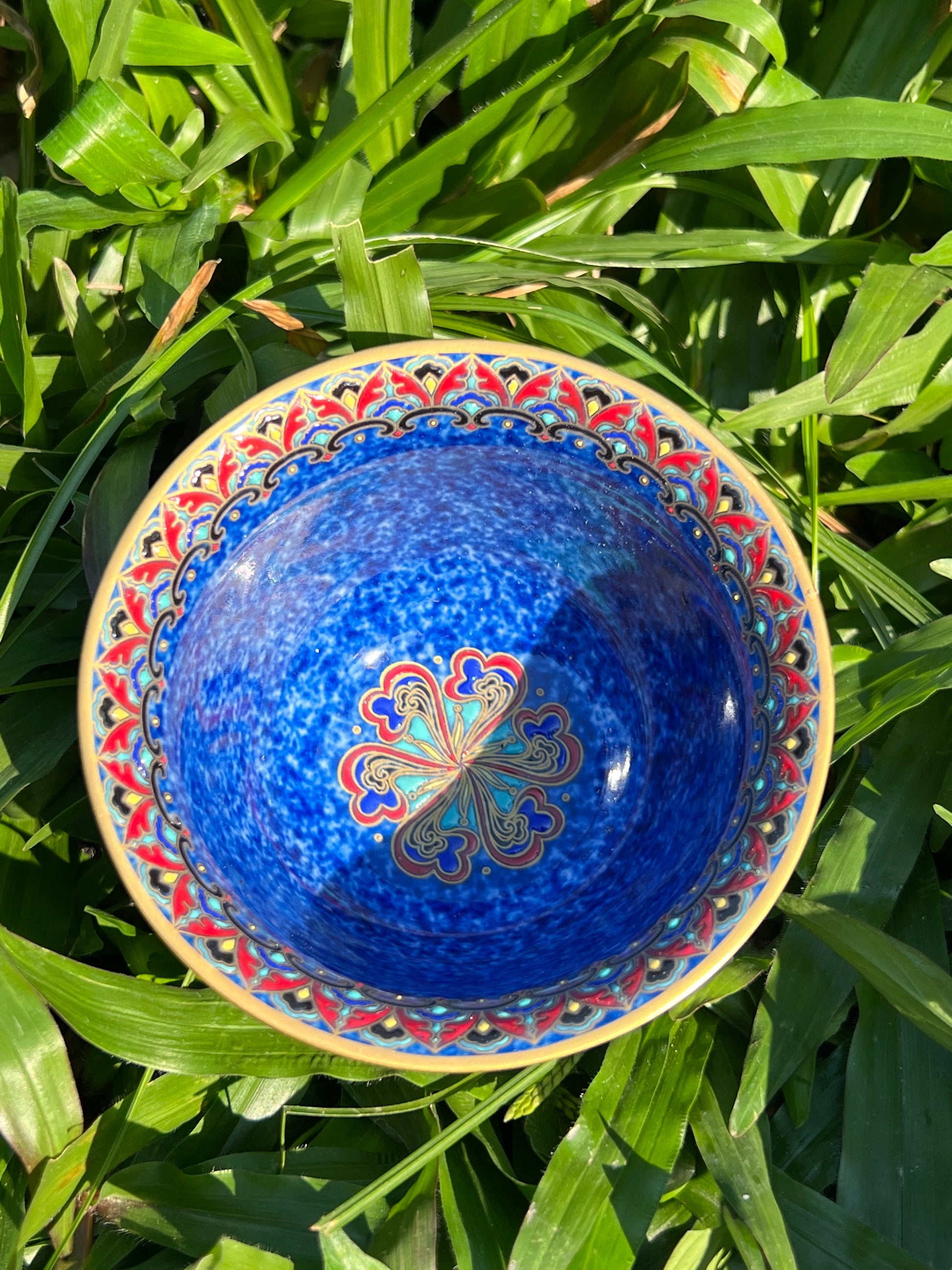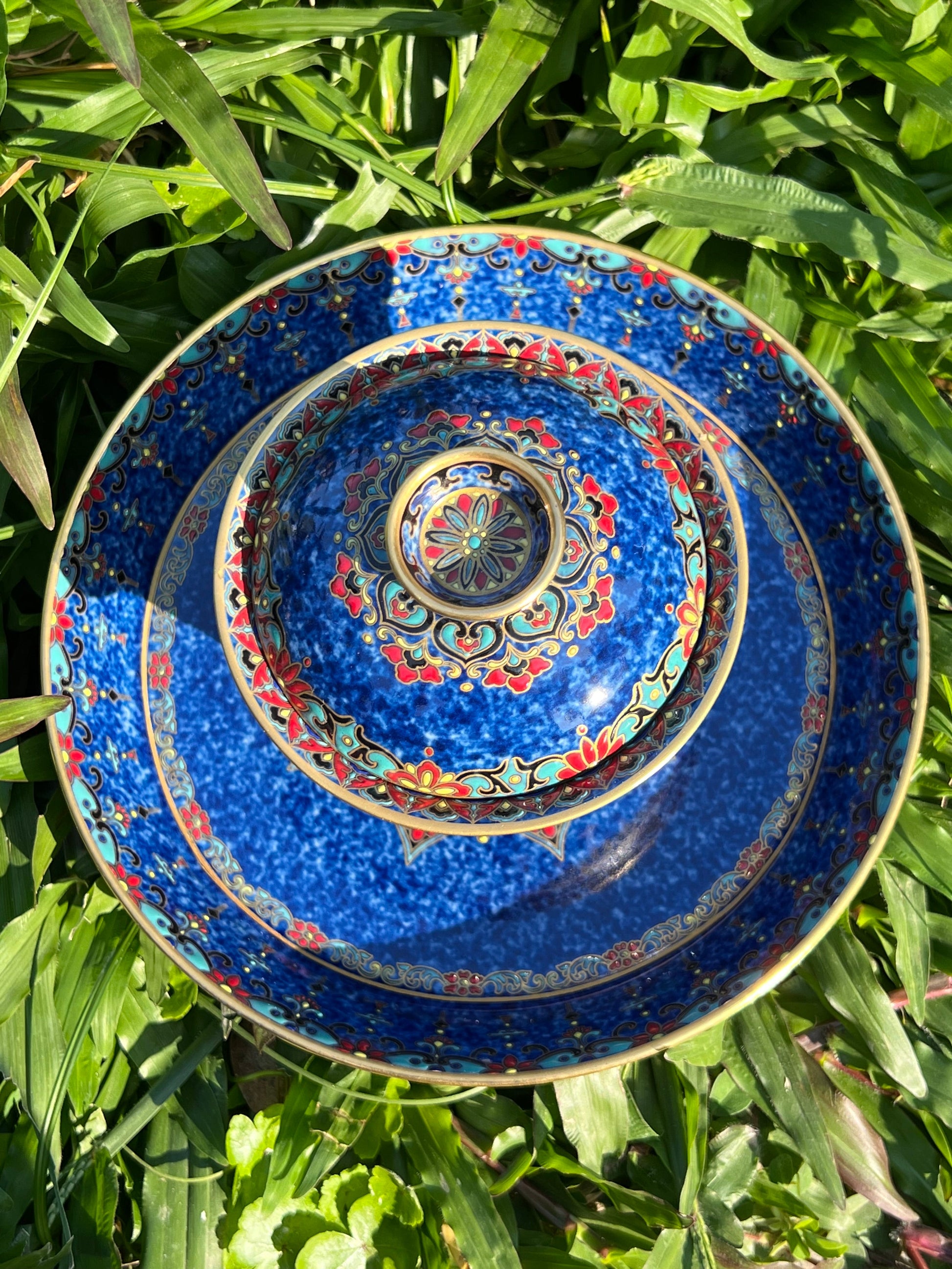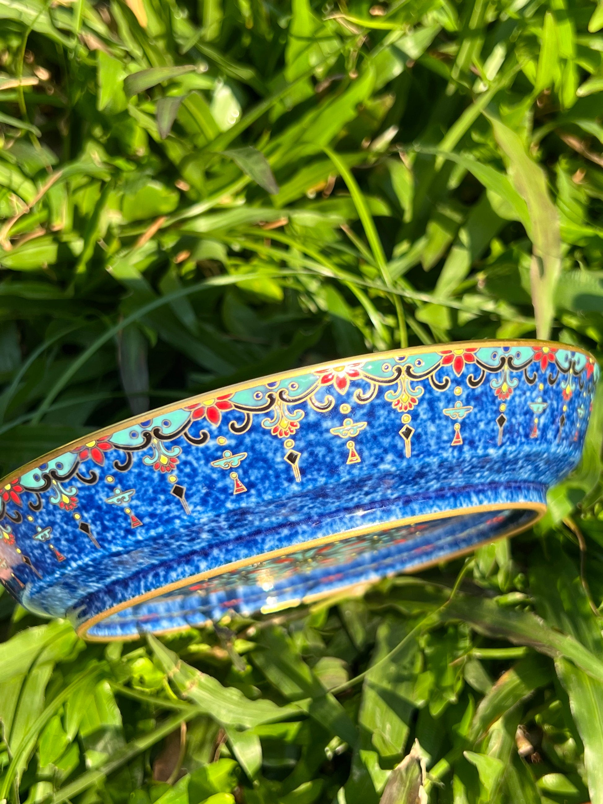 Please appreciate the strong visual contrast between the snow-like sprinkled blue glaze and the enamel craftsmanship. The blue and gold color matching is full of high-end feeling. It is painted by the very experienced ceramic painters who have practicing for over 30 years from Chinese Jingdezhen..The painted gold pigment is made of 24k pure gold.