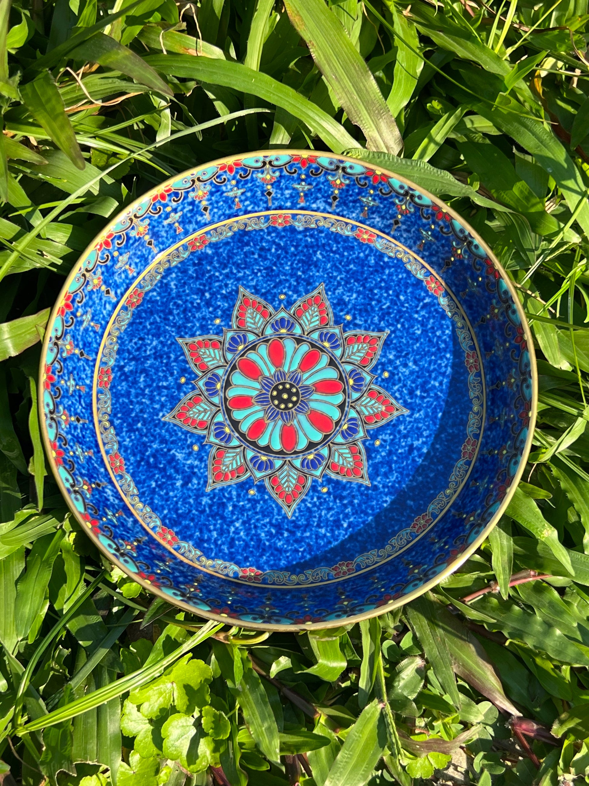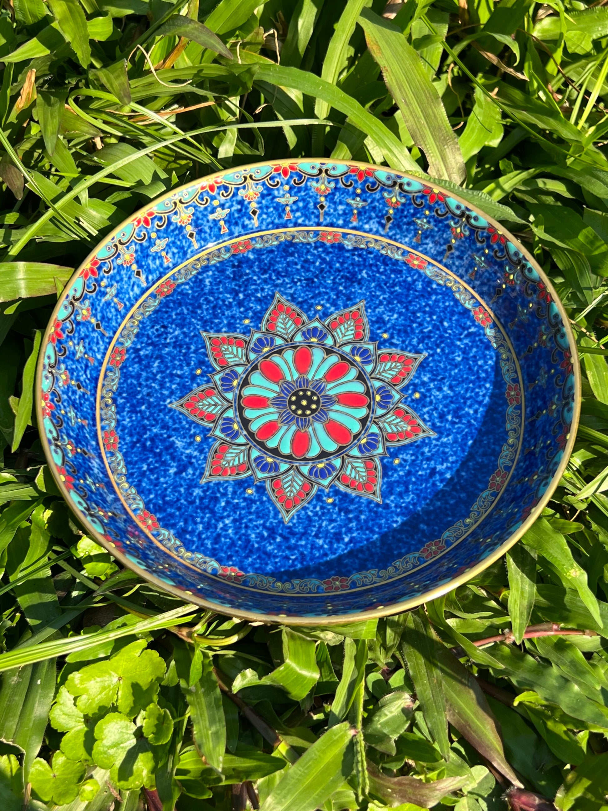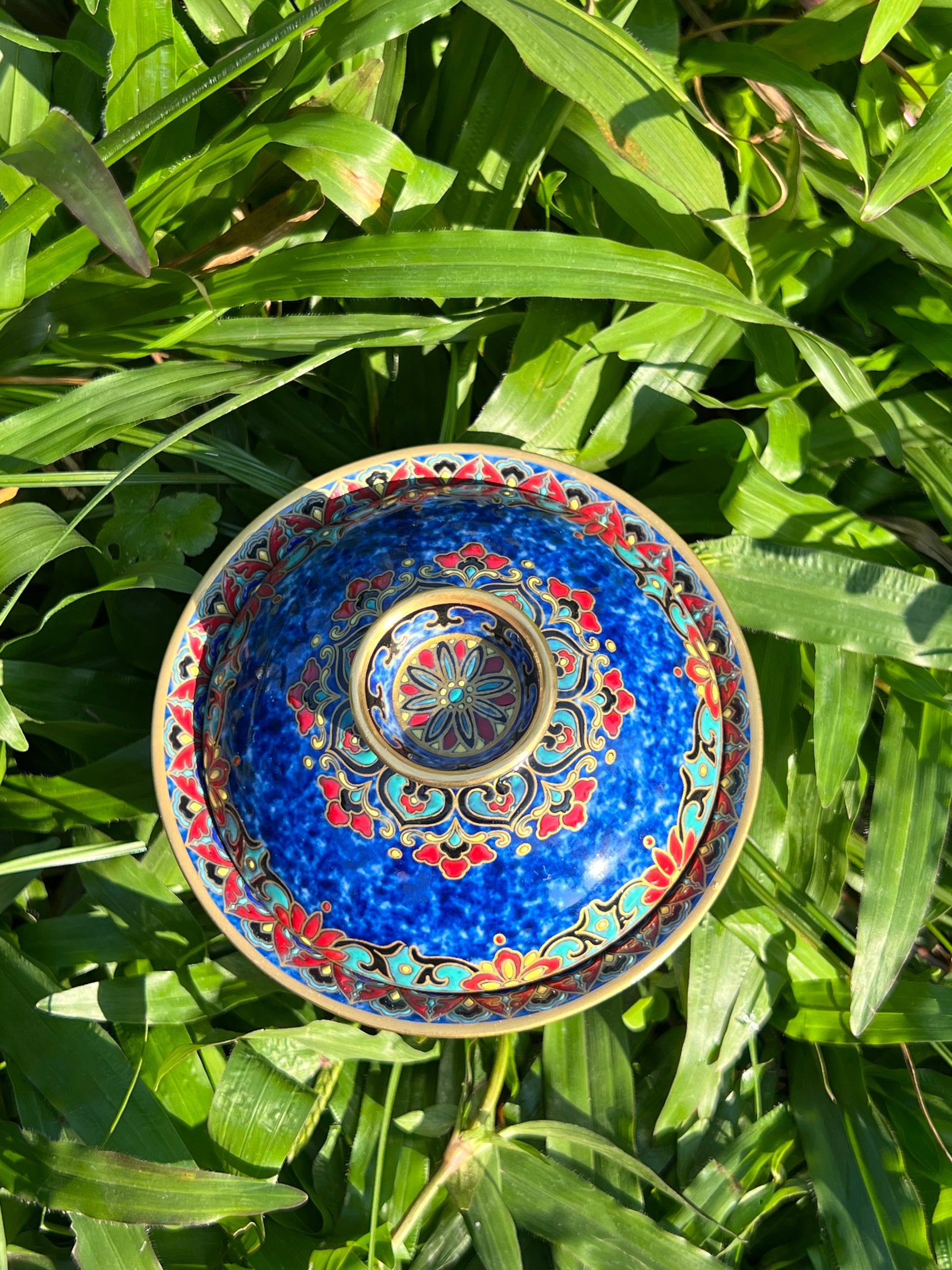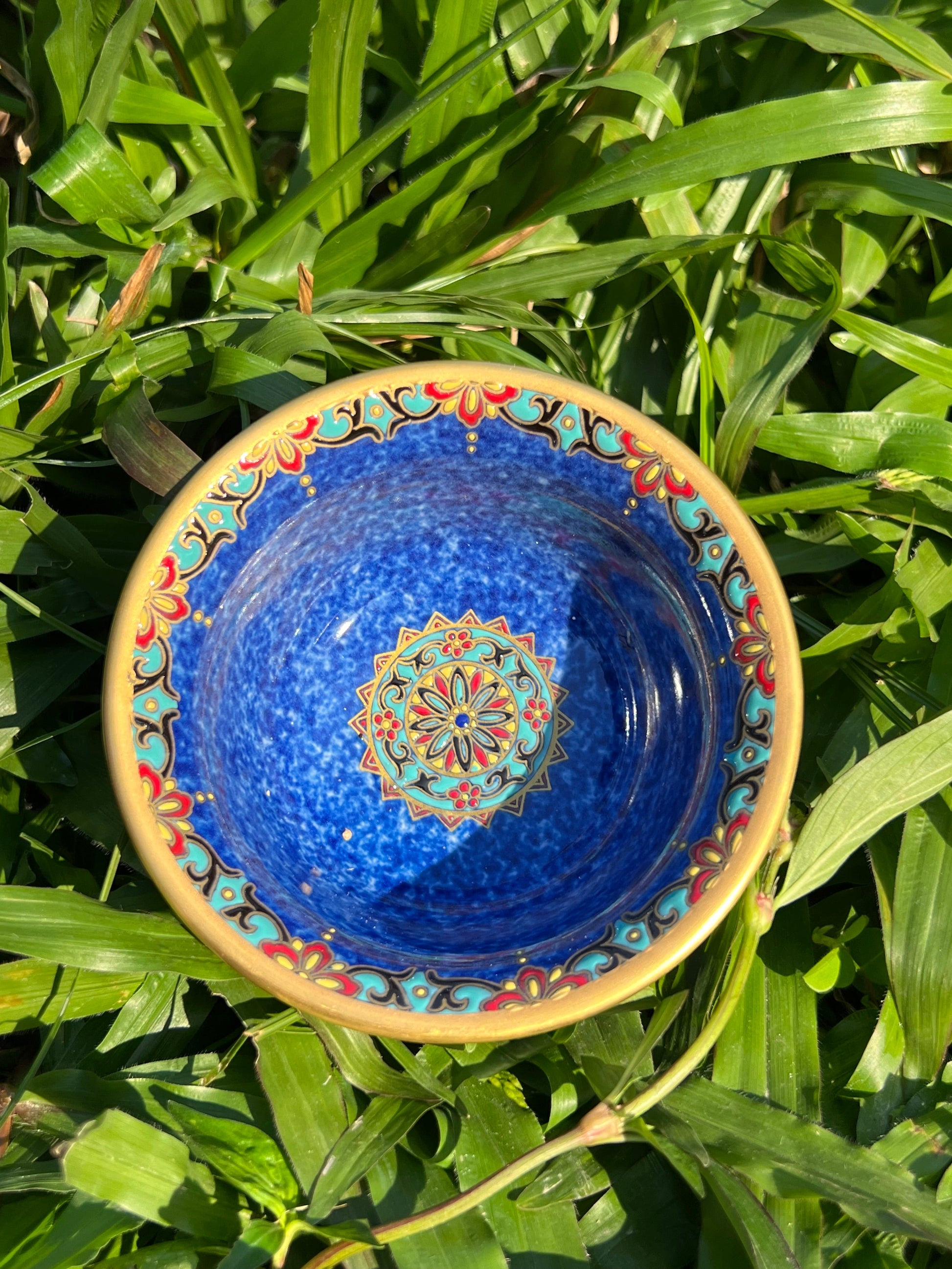Please appreciate the strong visual contrast between the snow-like sprinkled blue glaze and the enamel craftsmanship. The blue and gold color matching is full of high-end feeling. It is painted by the very experienced ceramic painters who have practicing for over 30 years from Chinese Jingdezhen..The painted gold pigment is made of 24k pure gold.
