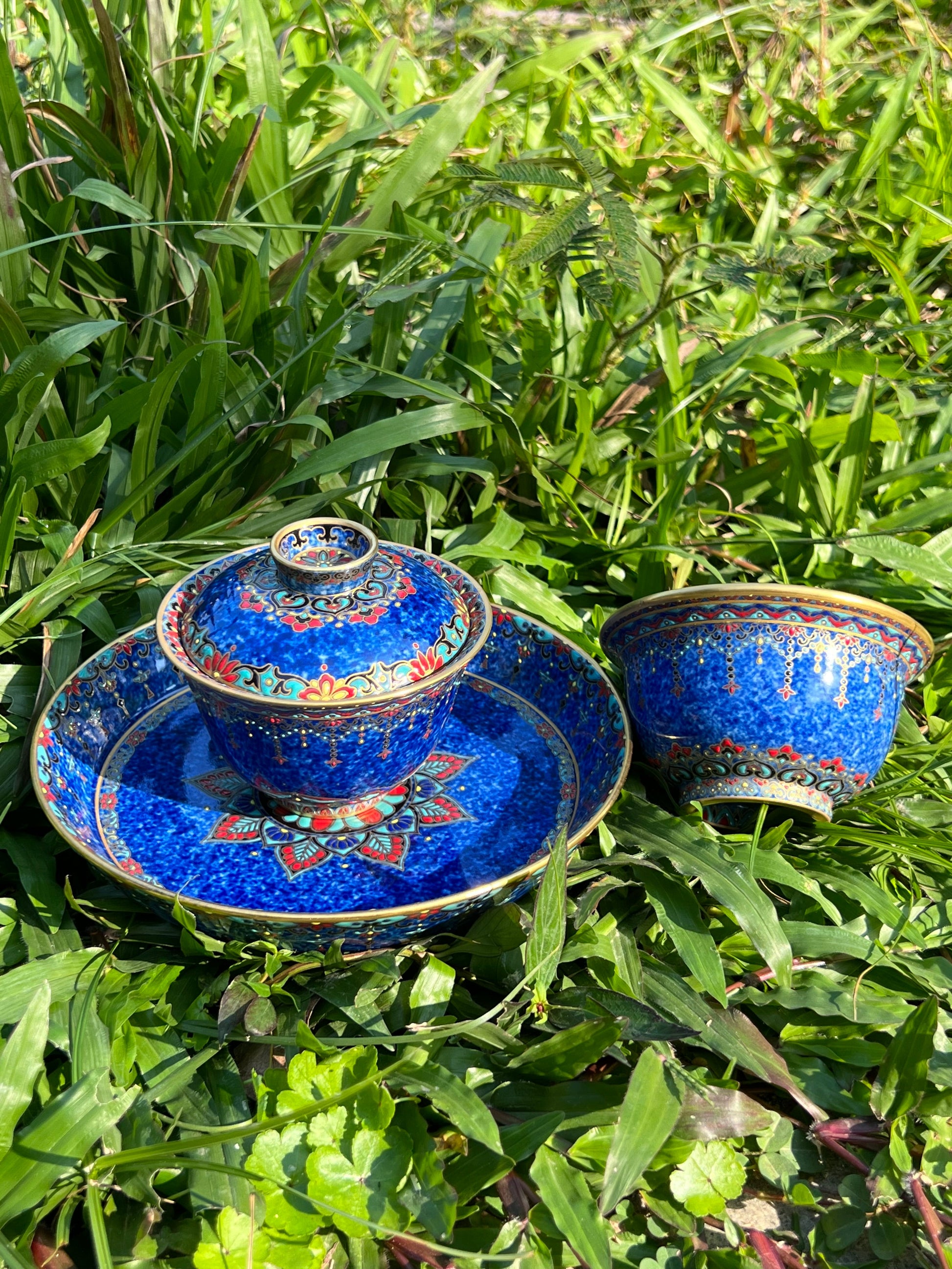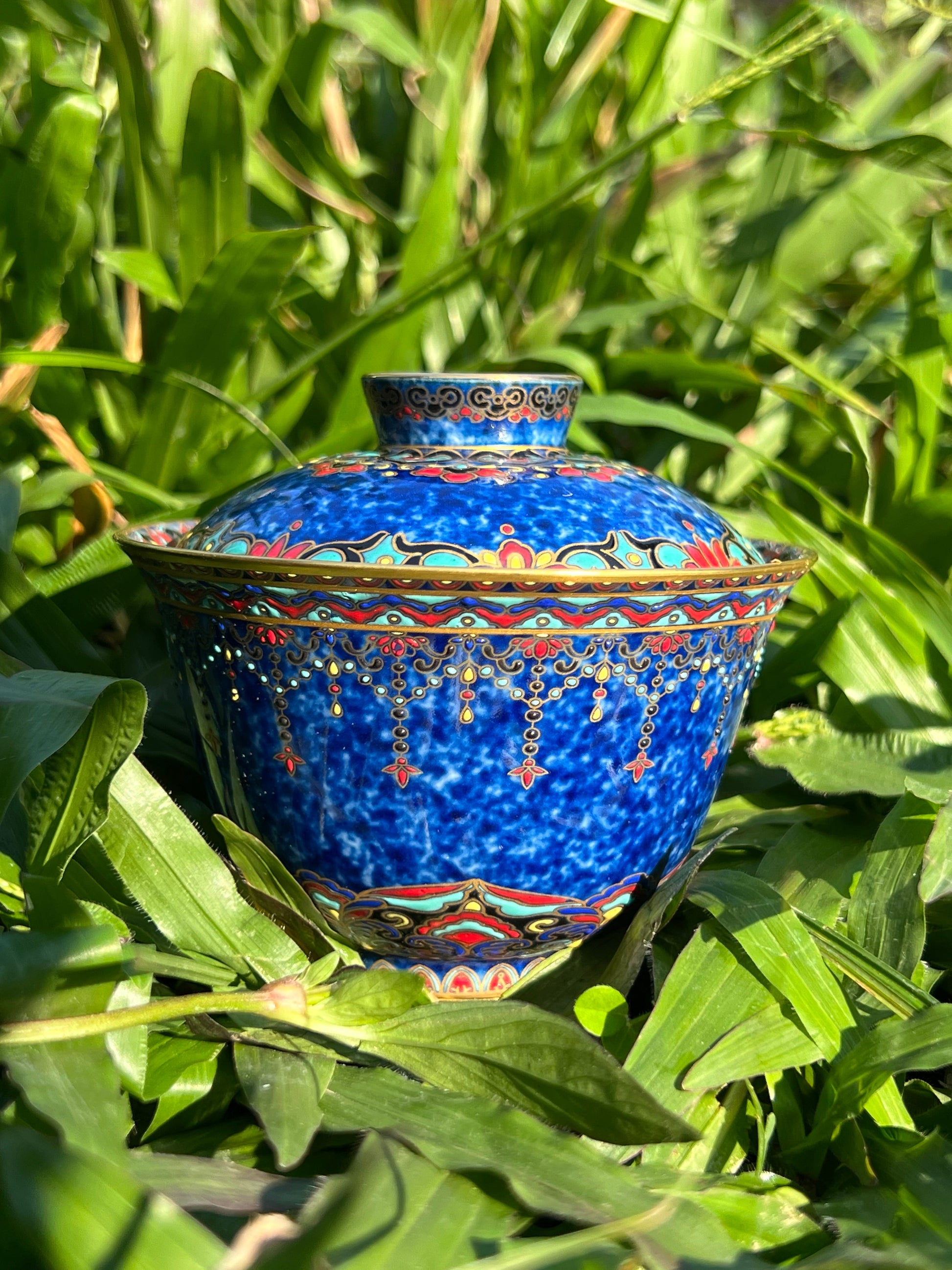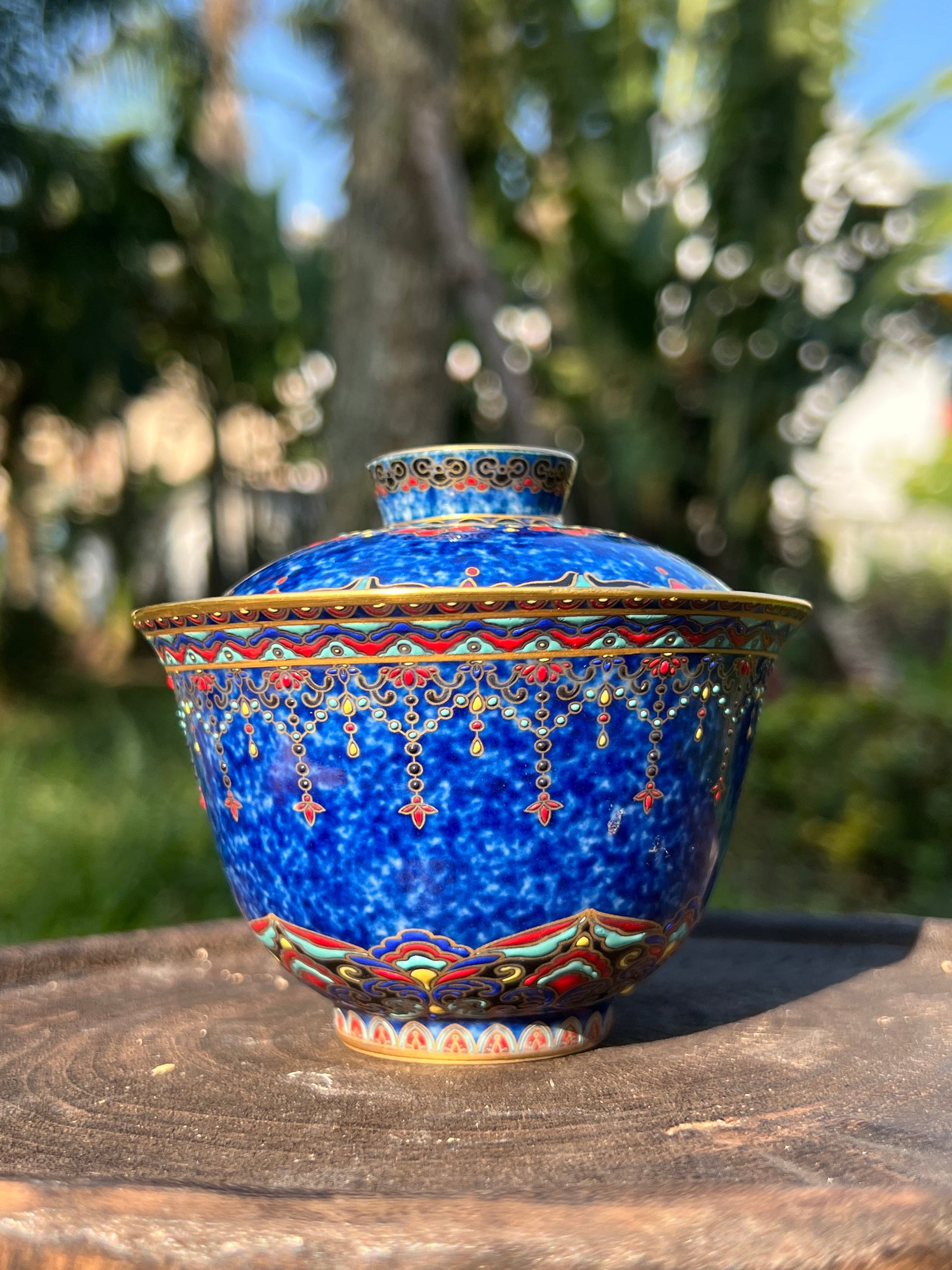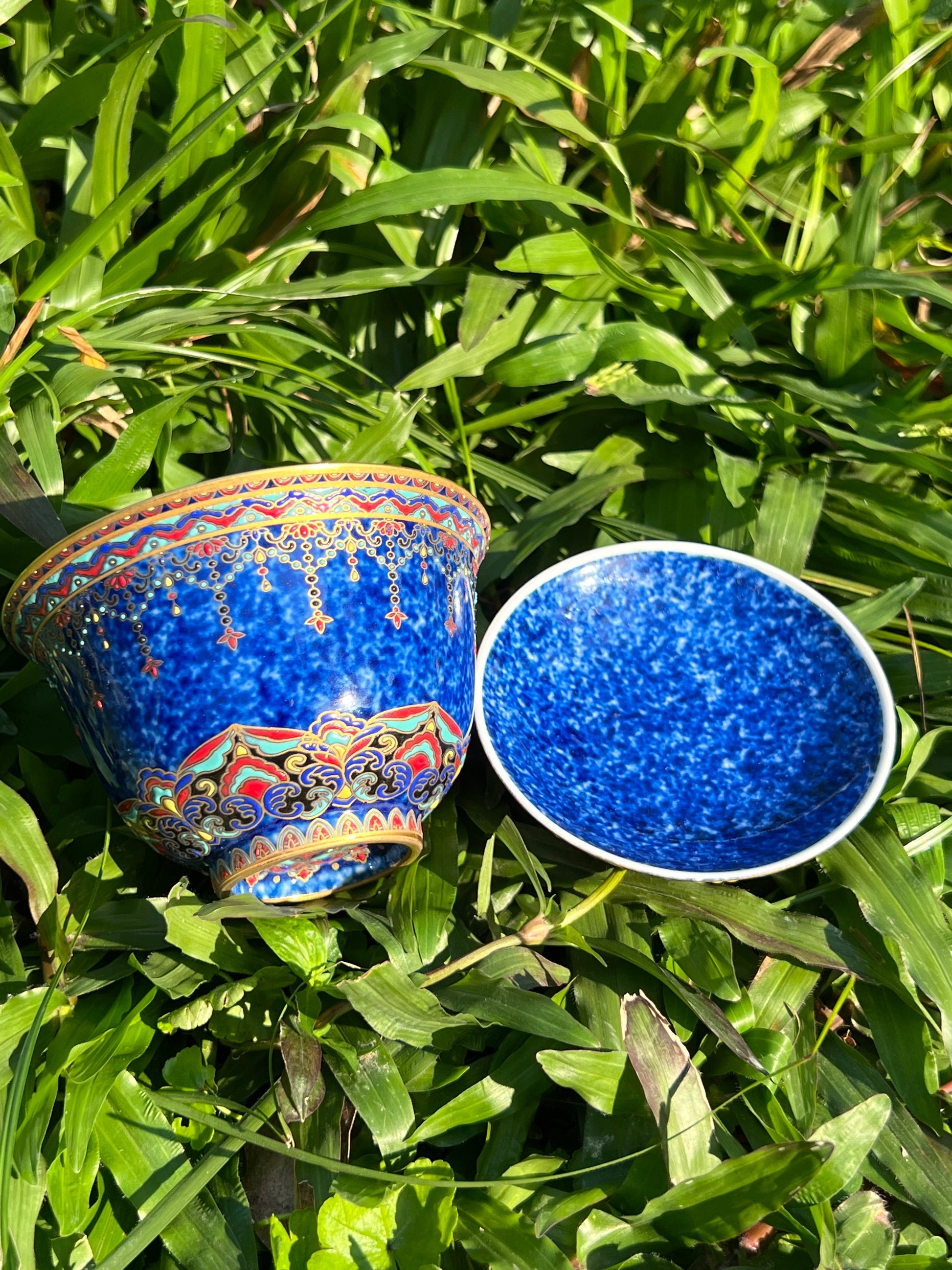 This Jingdezhen artwork teaware is made of traditional Chinese sprinkled blue-glazed and enamel craftsmanship by Jingdezhen experienced ceramicist.