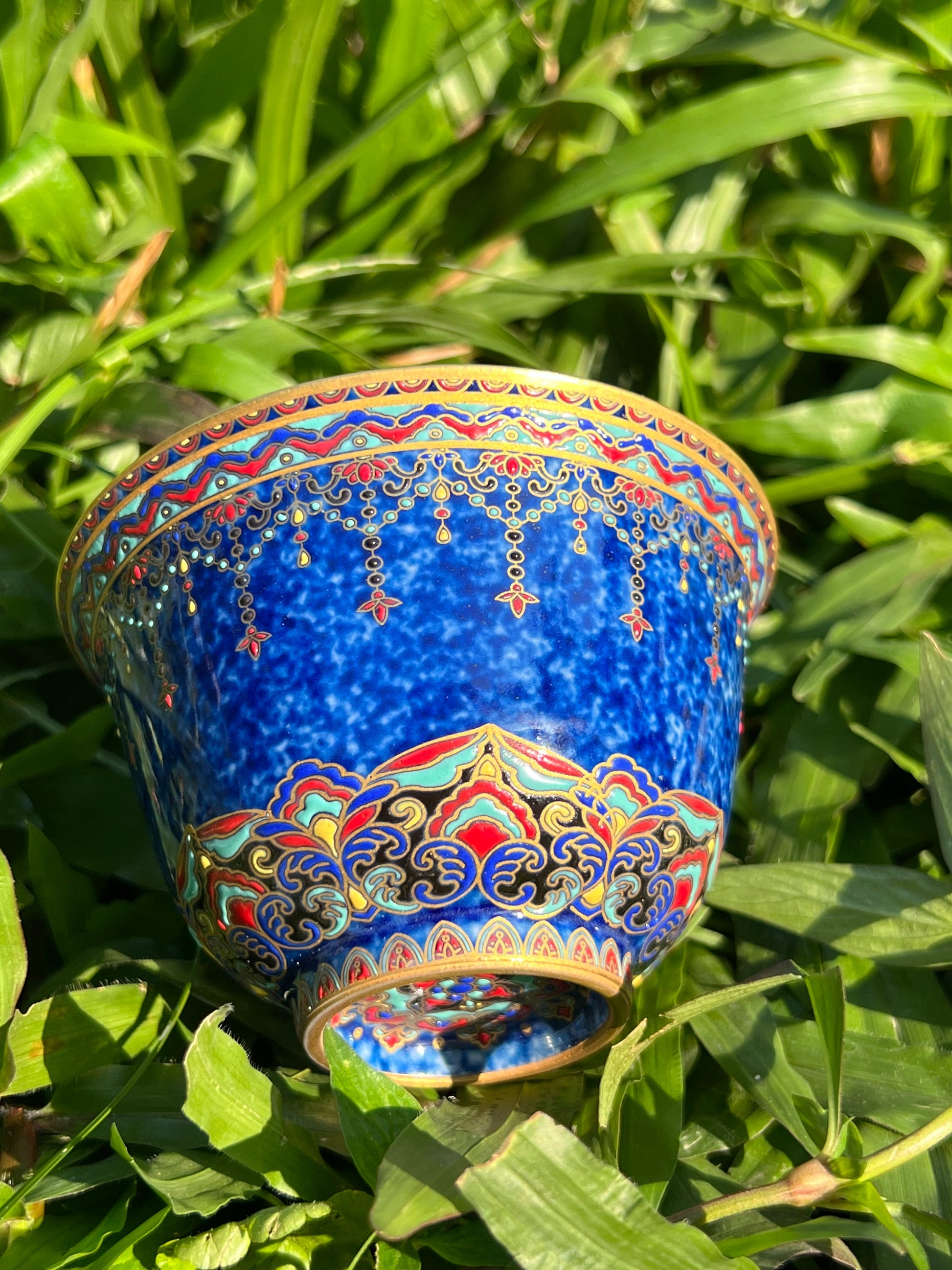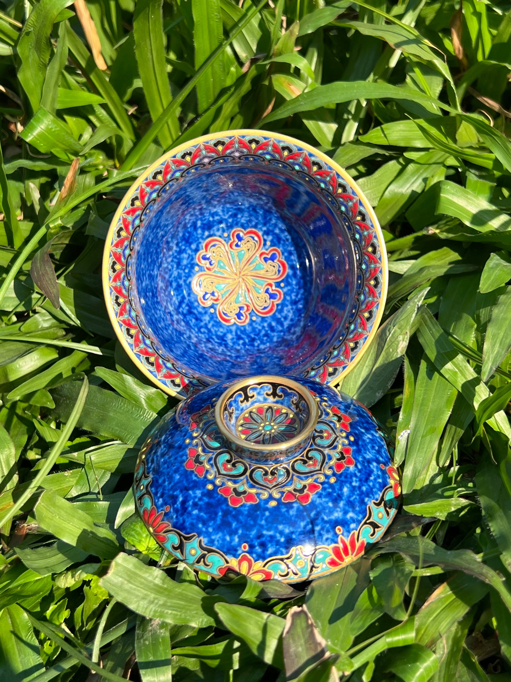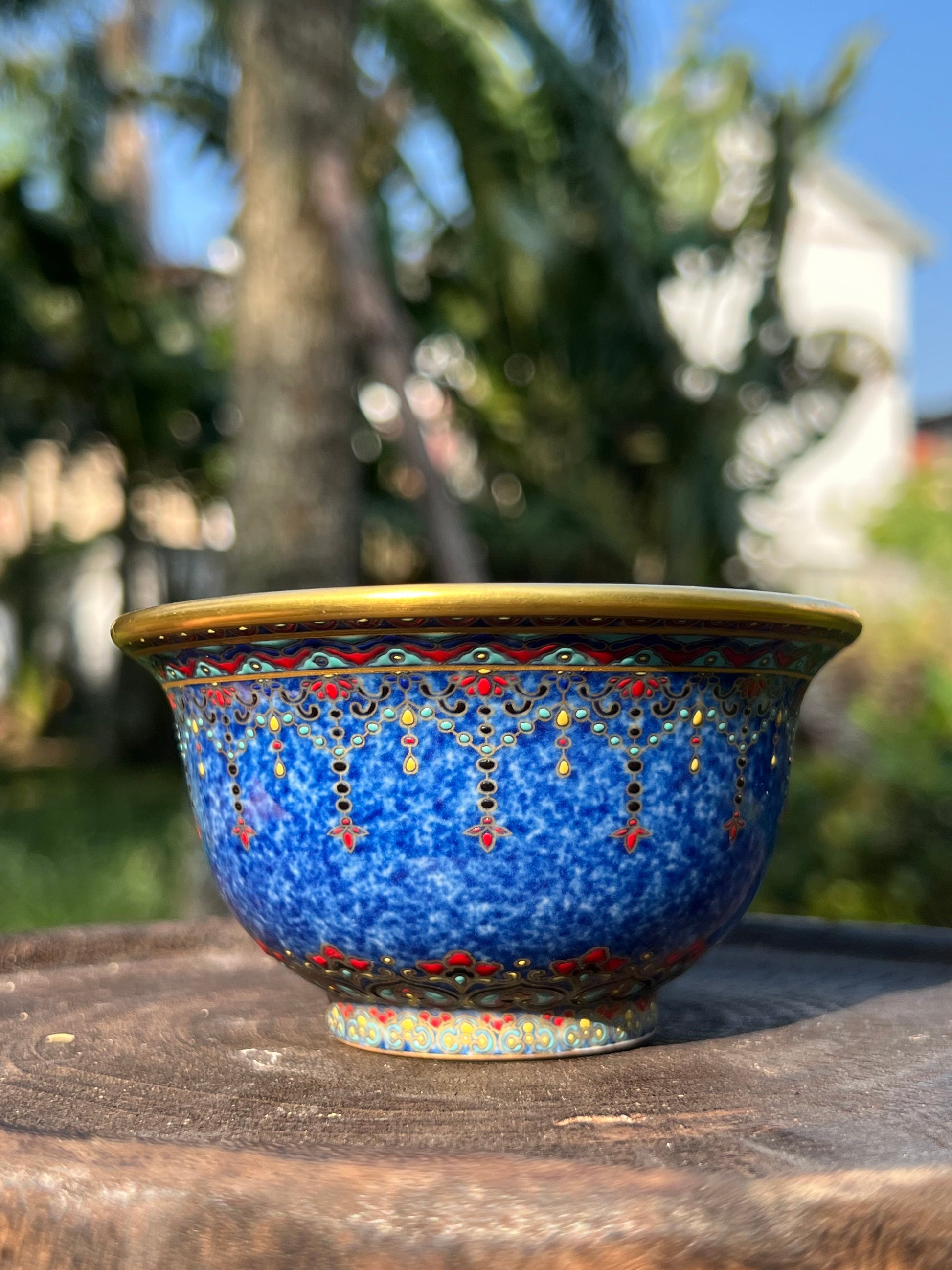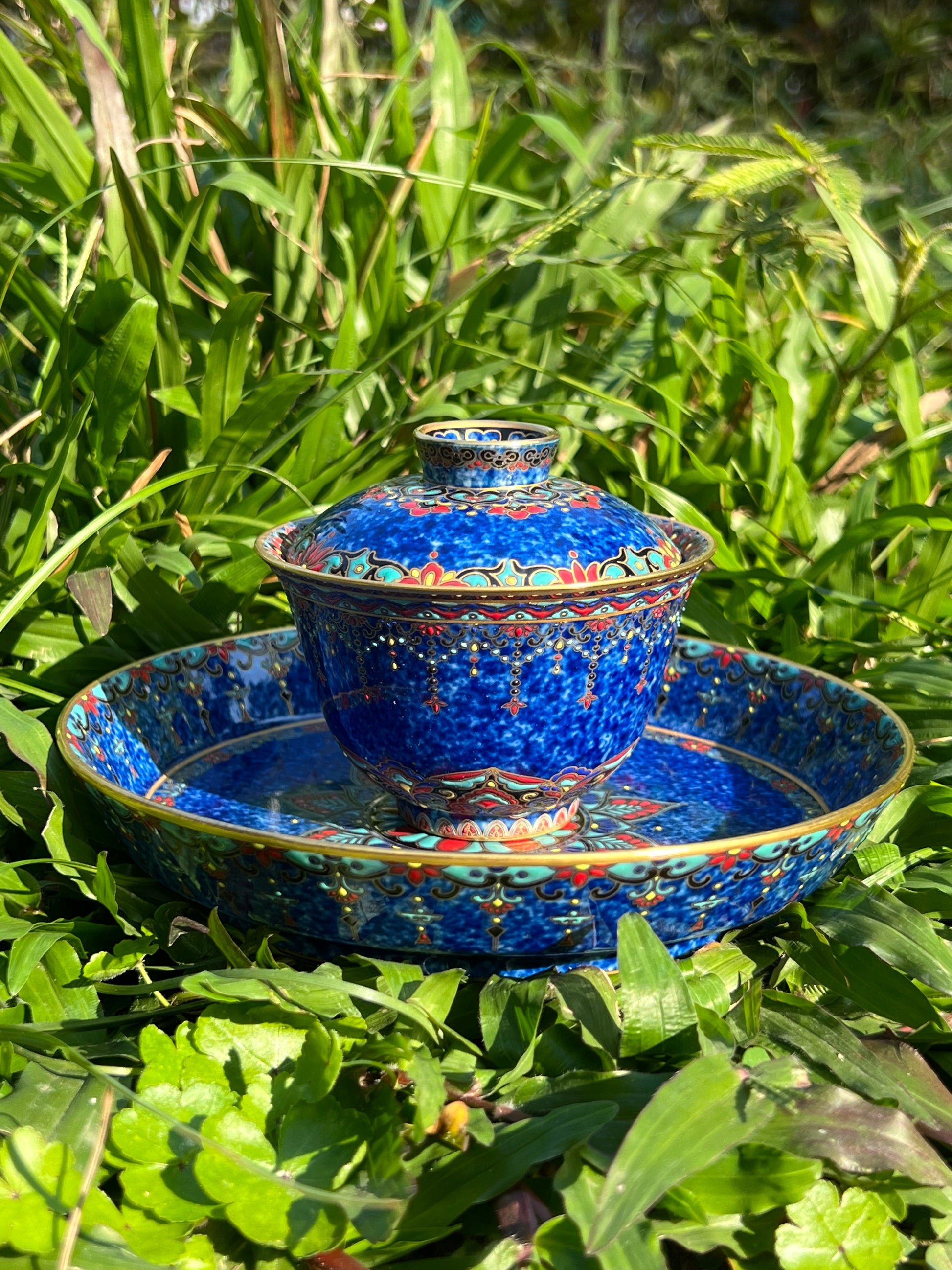 This Jingdezhen artwork teaware is made of traditional Chinese sprinkled blue-glazed and enamel craftsmanship by Jingdezhen experienced ceramicist.