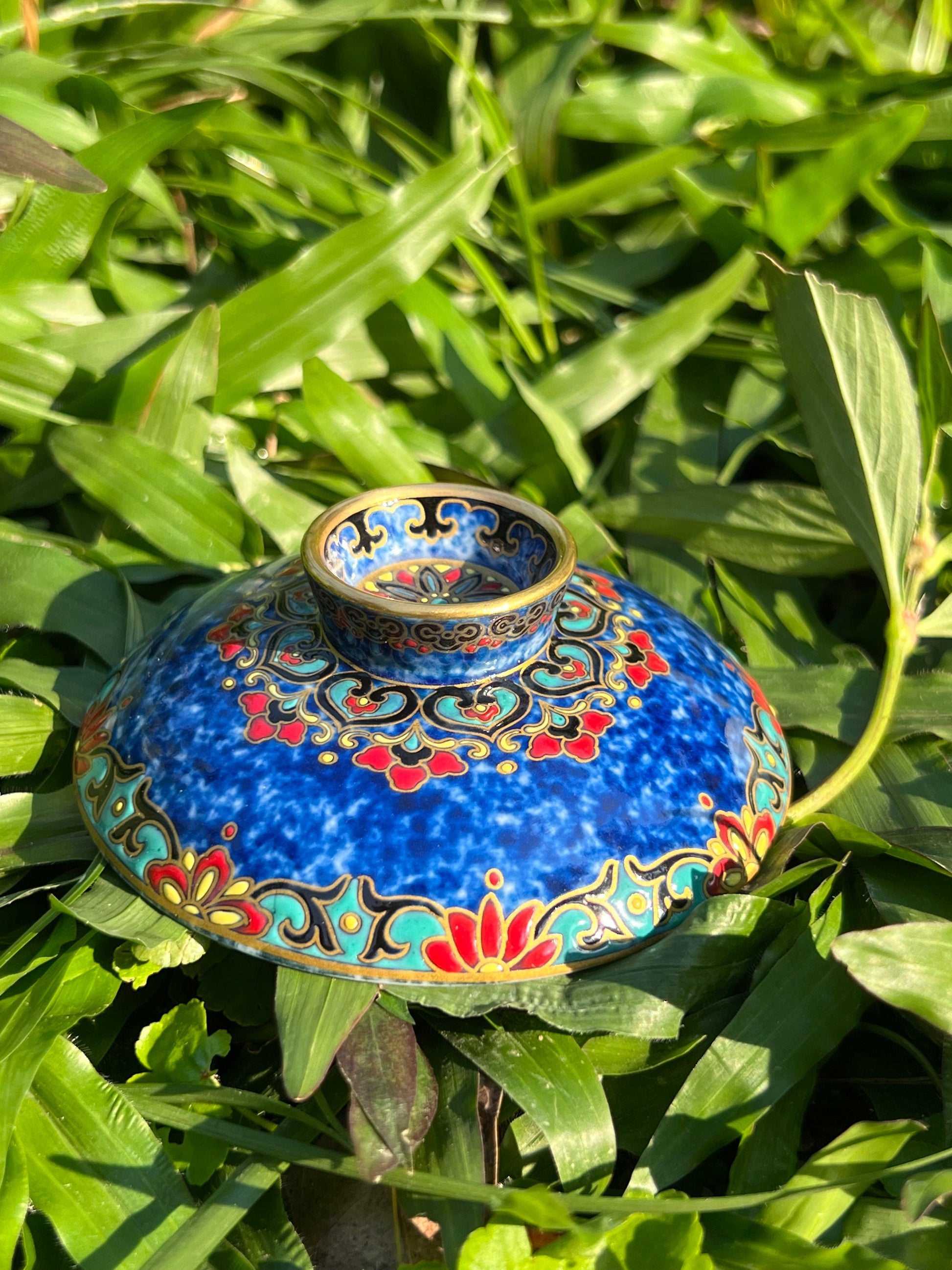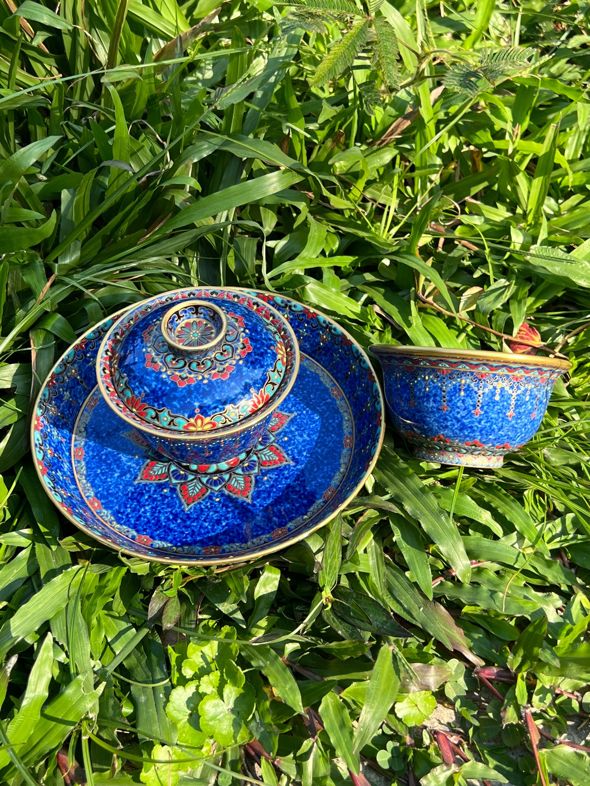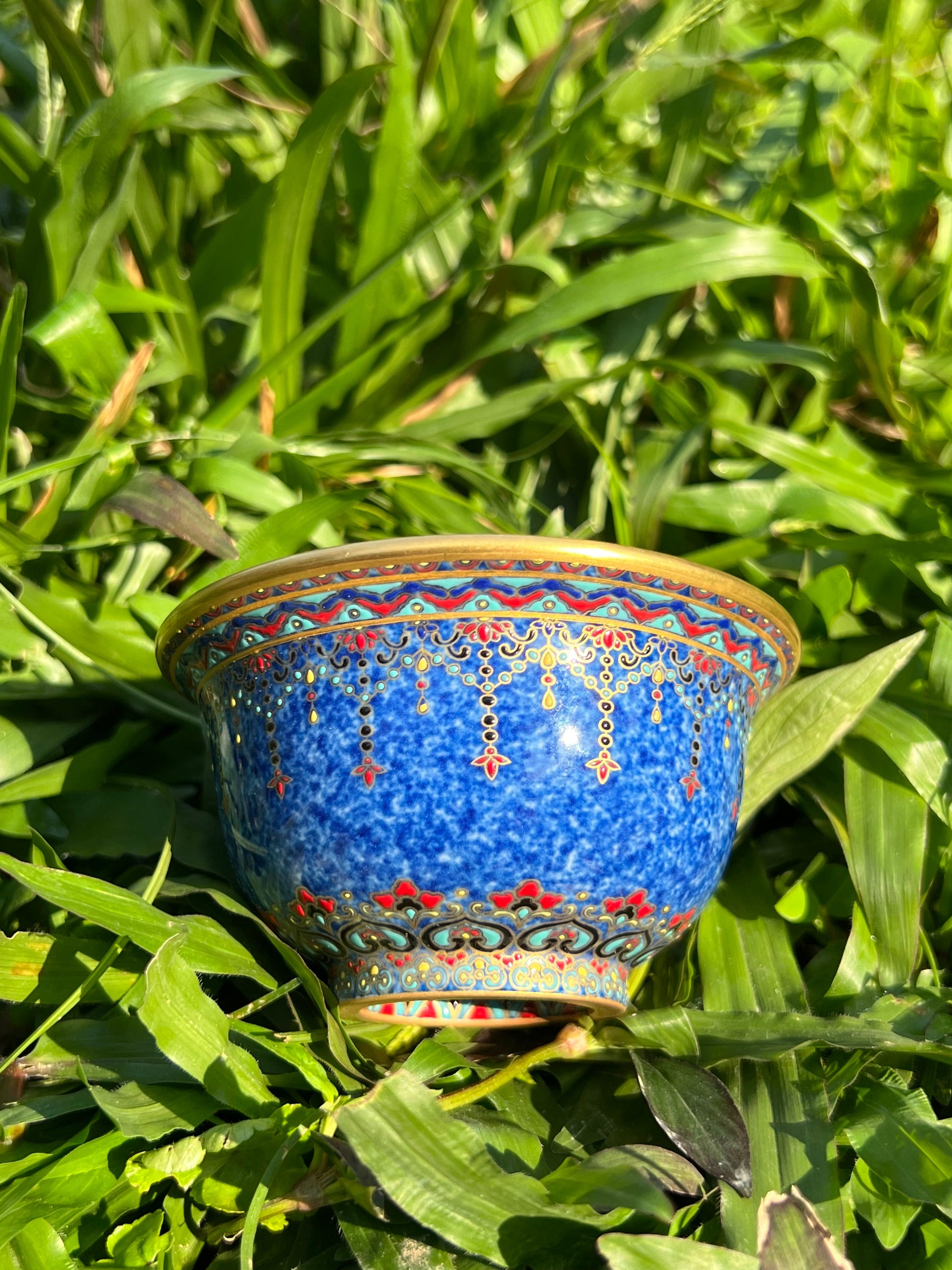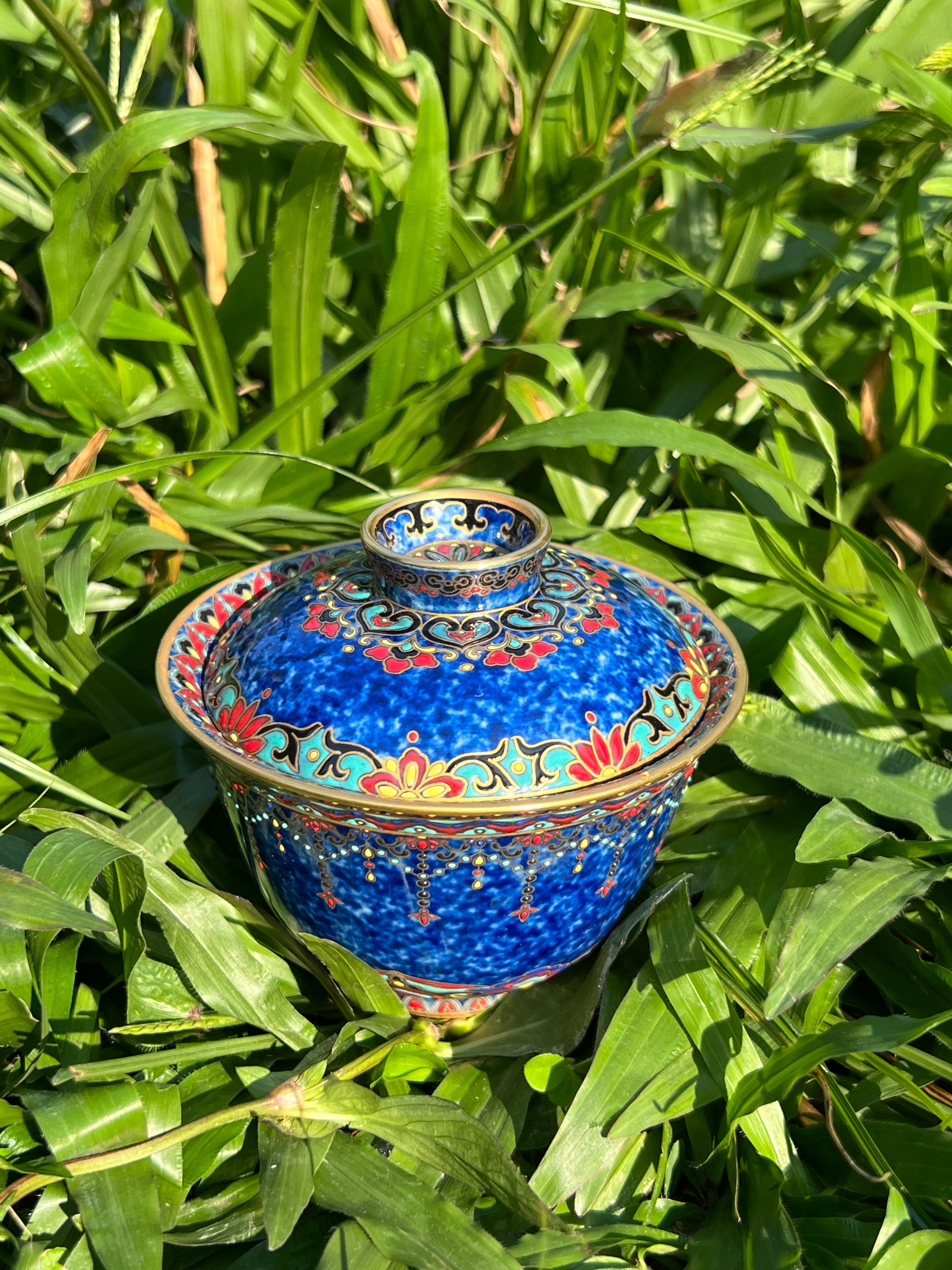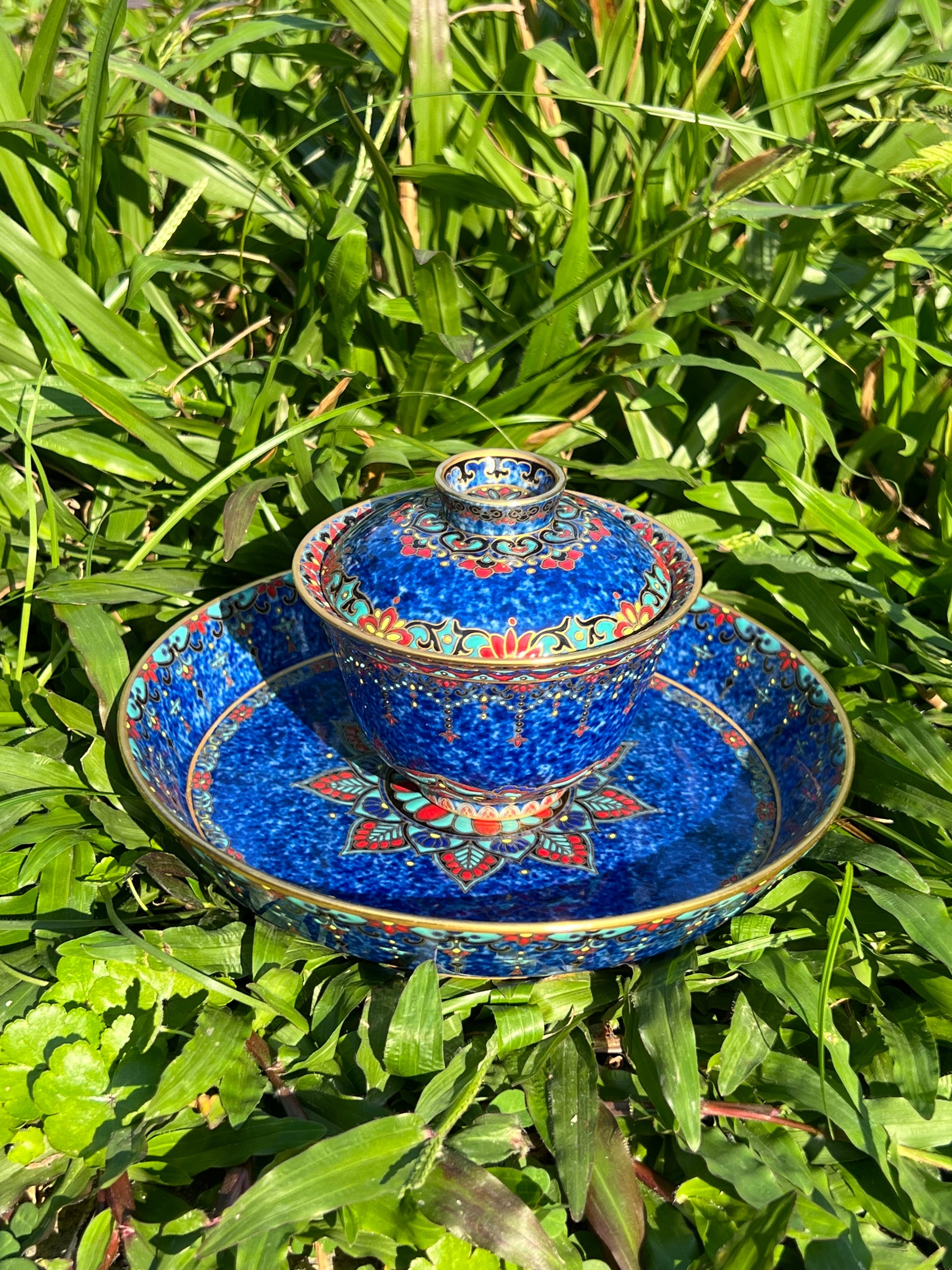 This Jingdezhen artwork teaware is made of traditional Chinese sprinkled blue-glazed and enamel craftsmanship by Jingdezhen experienced ceramicist.