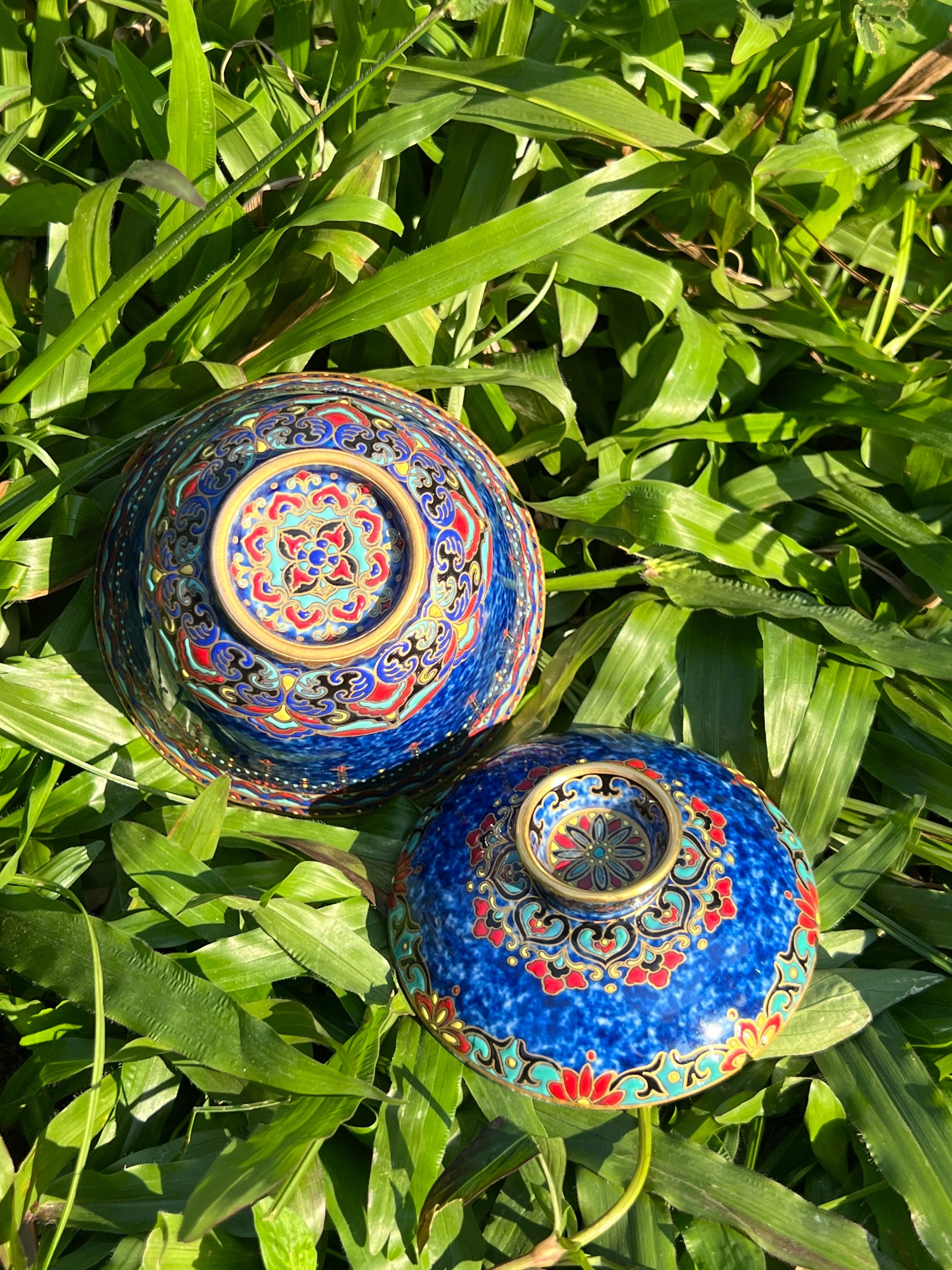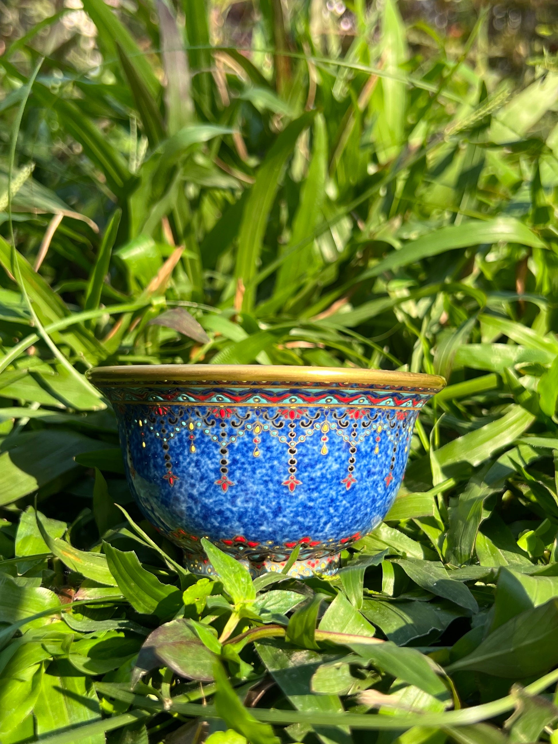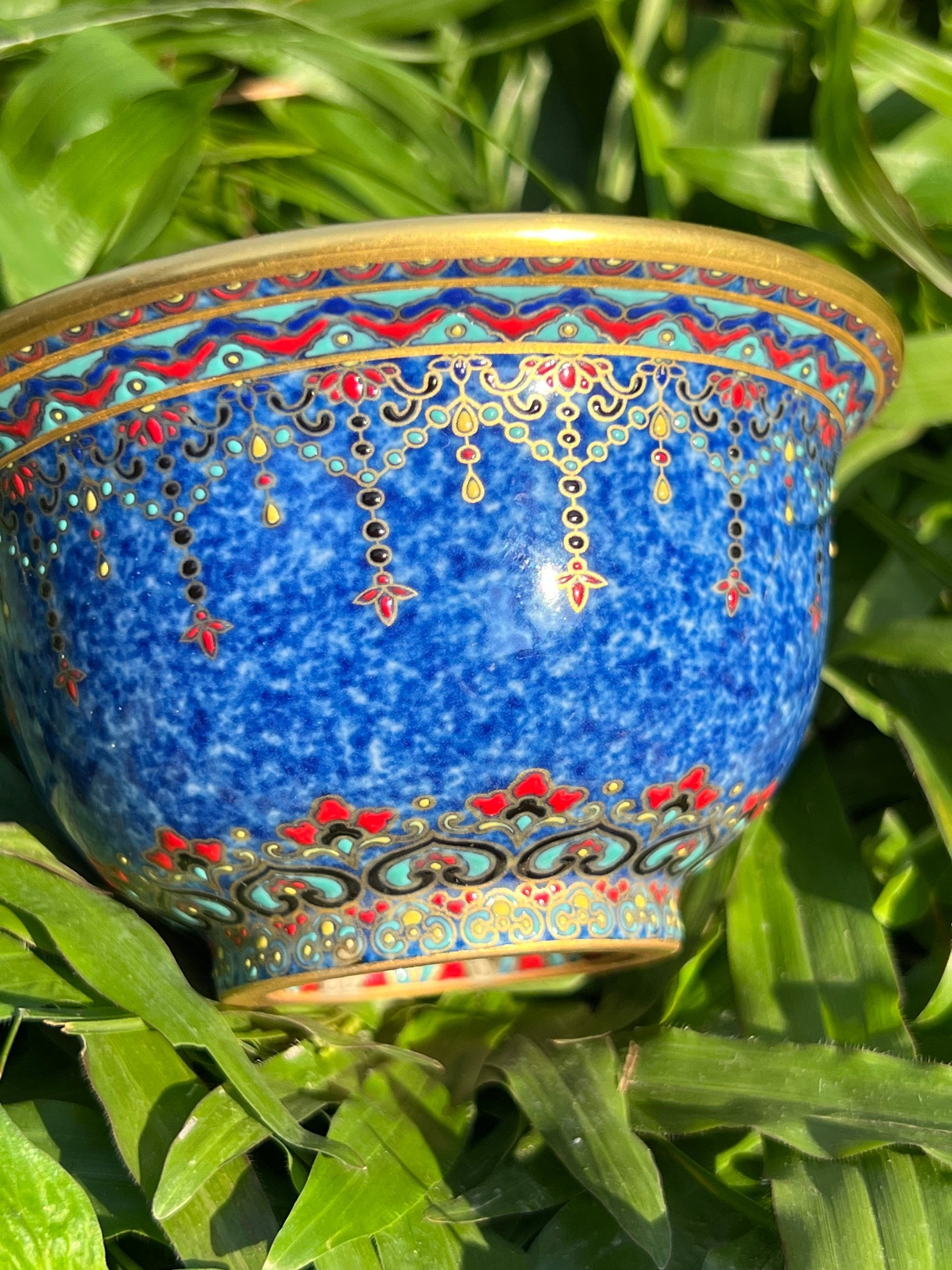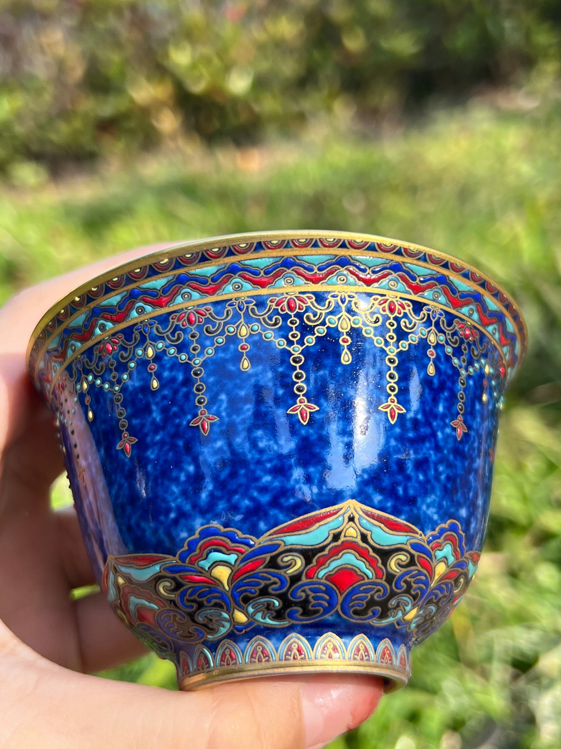 This Jingdezhen artwork teaware is made of traditional Chinese sprinkled blue-glazed and enamel craftsmanship by Jingdezhen experienced ceramicist.