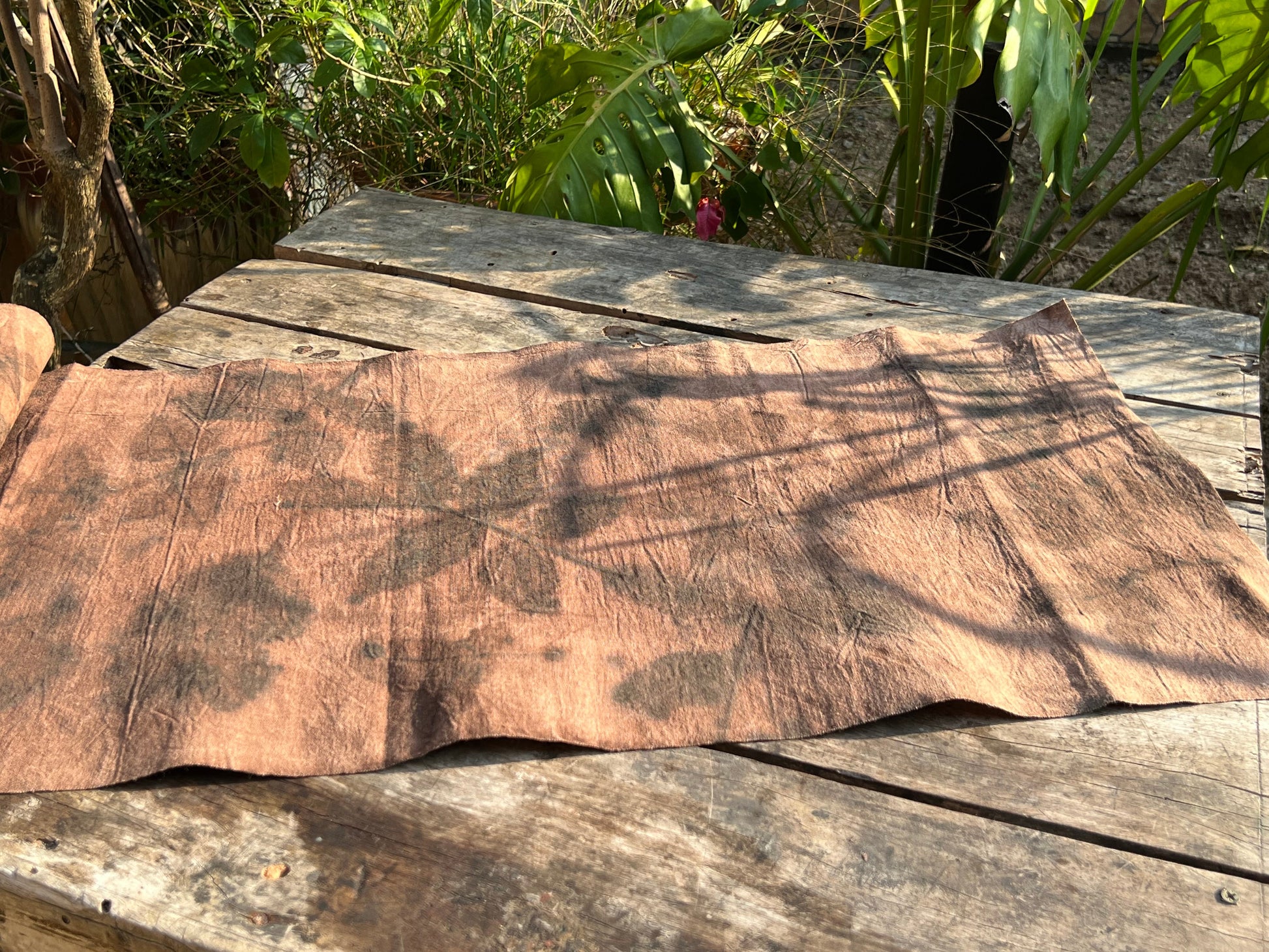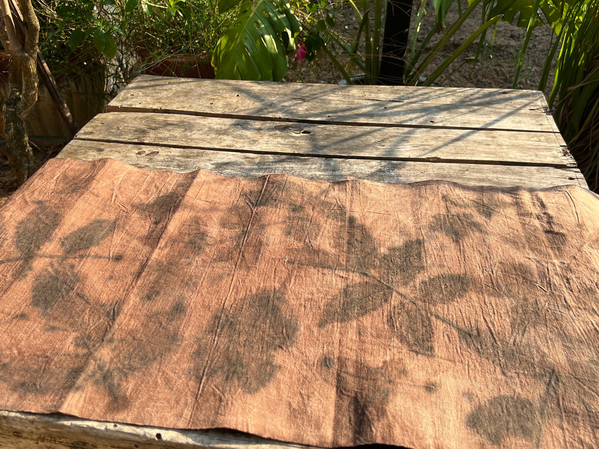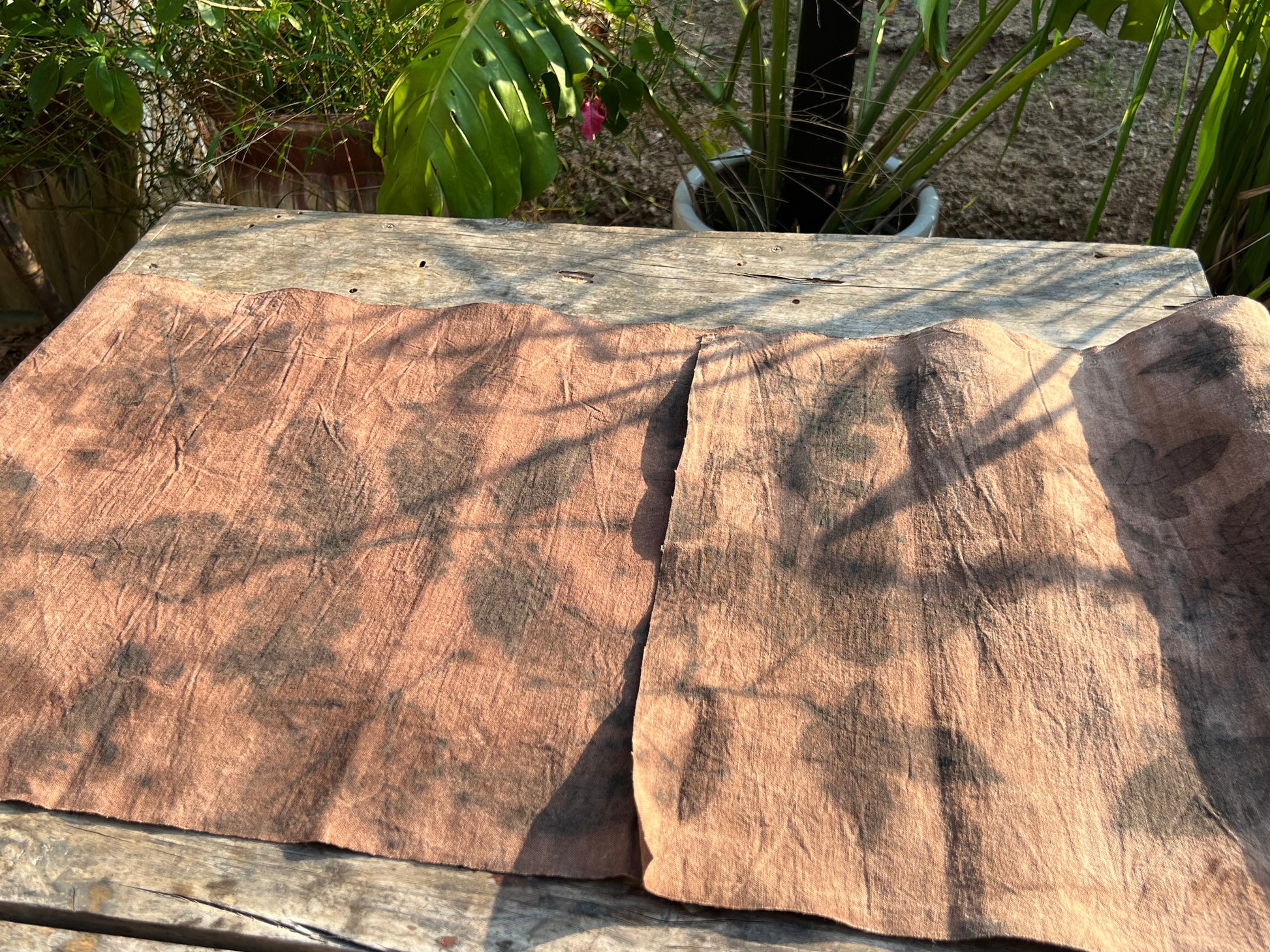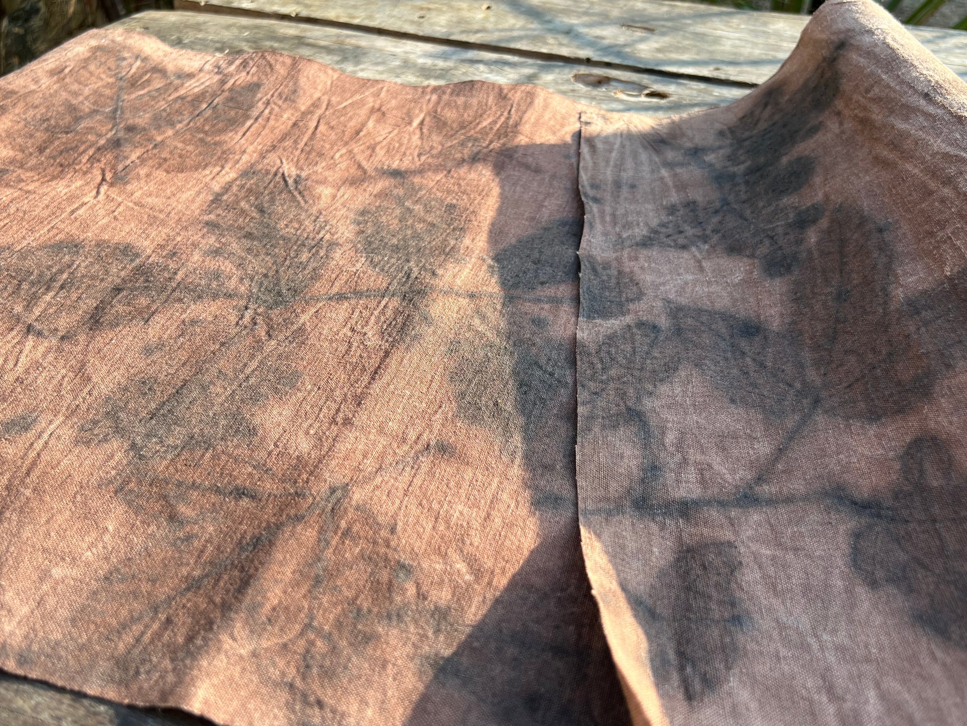 The amazing thing about hand dyeing tea mats is not only in the color change, but the texture of the farbic will also change significantly. After the soft cotton fabric is dyed with natural plants, it can be transformed into a tough and leathery fabric.