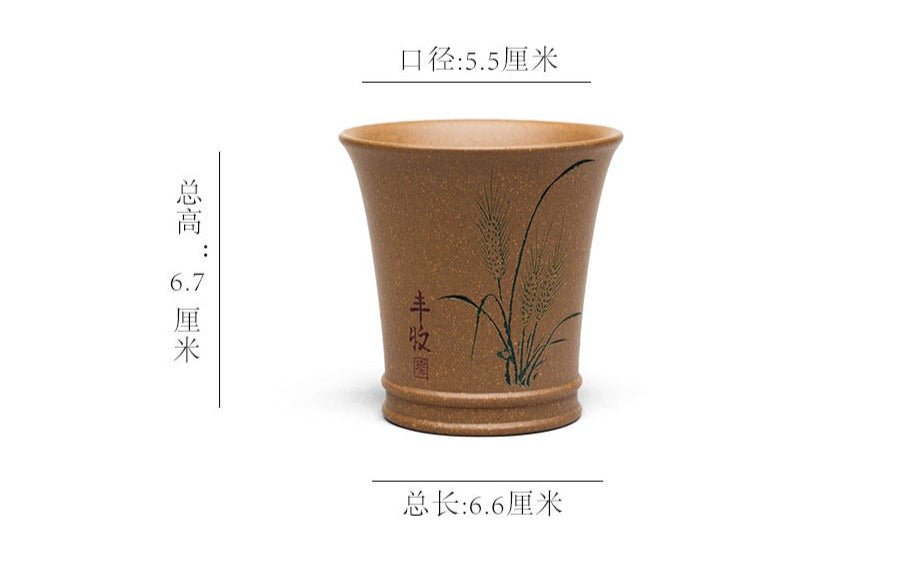Chinese Handcraft Yixing Purple Clay Yellow Teacup Unique Artwork Master Pottery Household Sketch Teacup