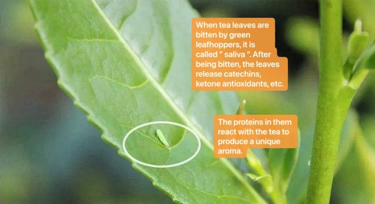As the most highly oxidized Oolong, the process uses 60-85% heavy fermentation (far exceeding ordinary oolong tea). Its core value comes from the unique ecological process and flavor expression: the tea tree needs to be bitten by small green leafhoppers to stimulate the defense reaction (commonly known as "saliva"), prompting the leaves to secrete aromatic substances such as Jasmonic acid etc.,