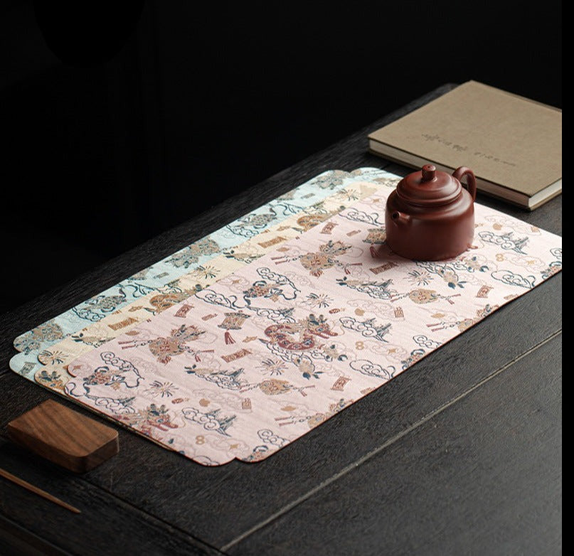 Chinese Brocade Tea Table Cloth Waterproof Chabu Chaxi Dragon Year Style