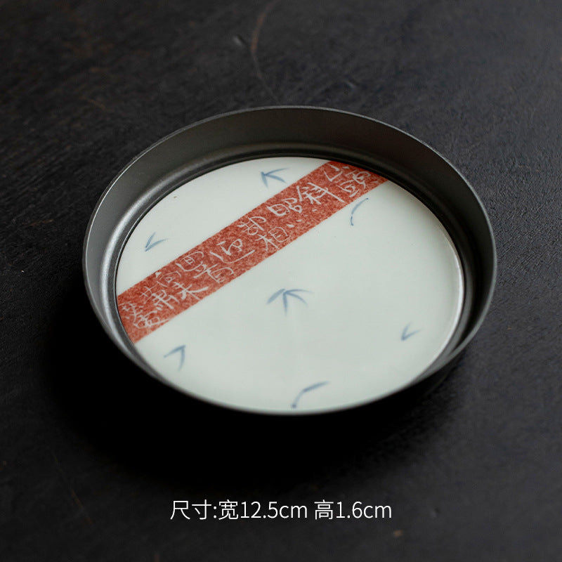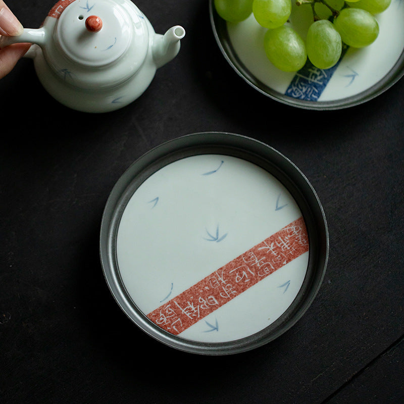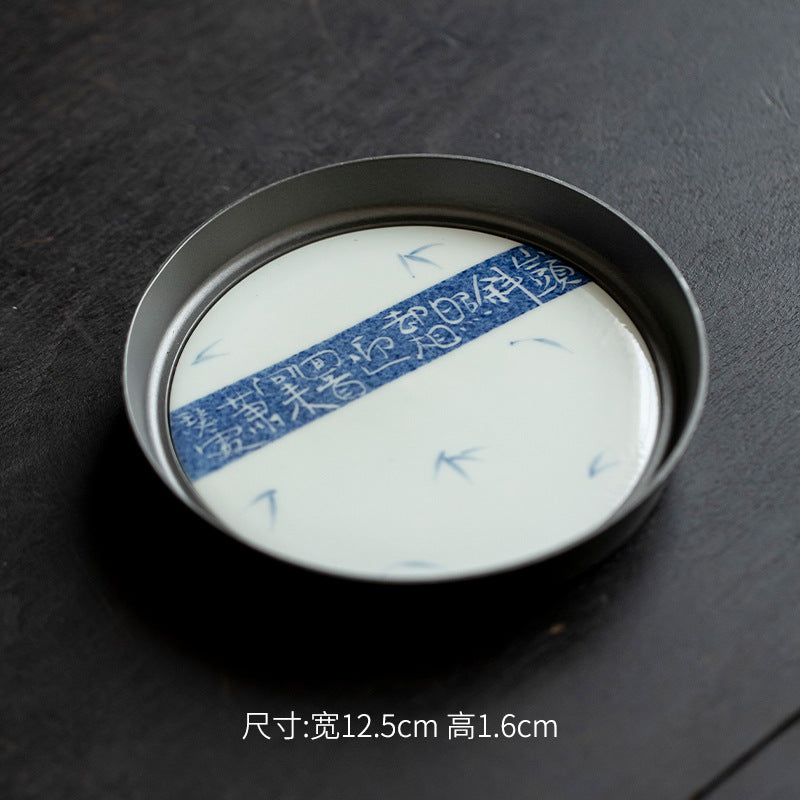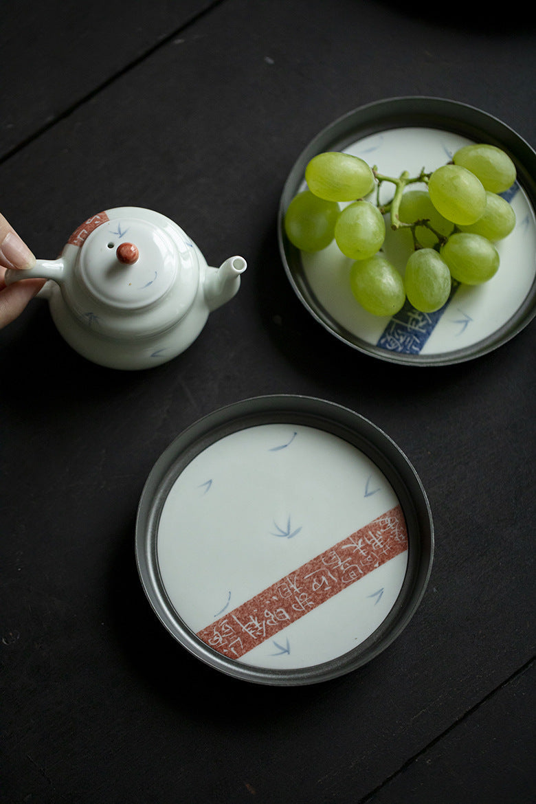 This unique set of sprinkled blue glazed gourd teapot is painted by Chinese experienced craftsmen. The composition of the teapot and cup is based on handwritten poems, with blank space on both sides, and the overall effect is more Chinese classical style.