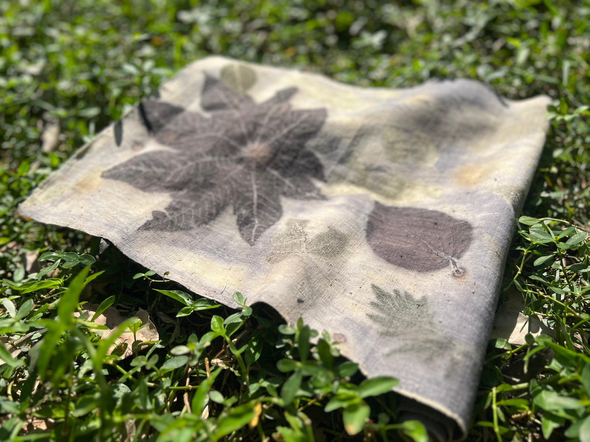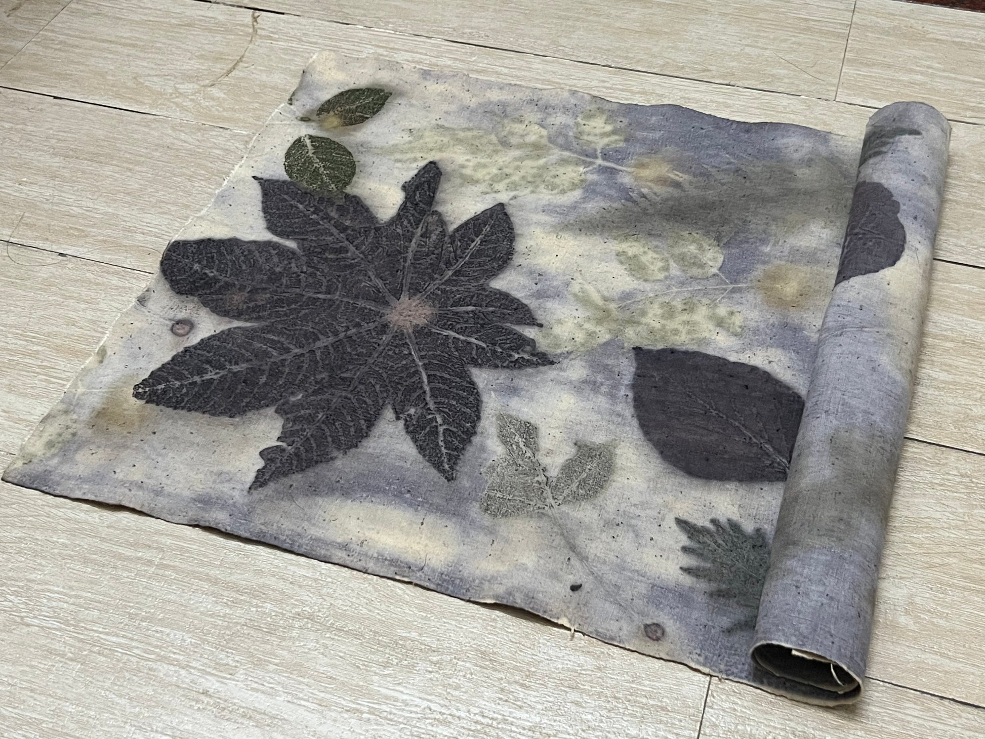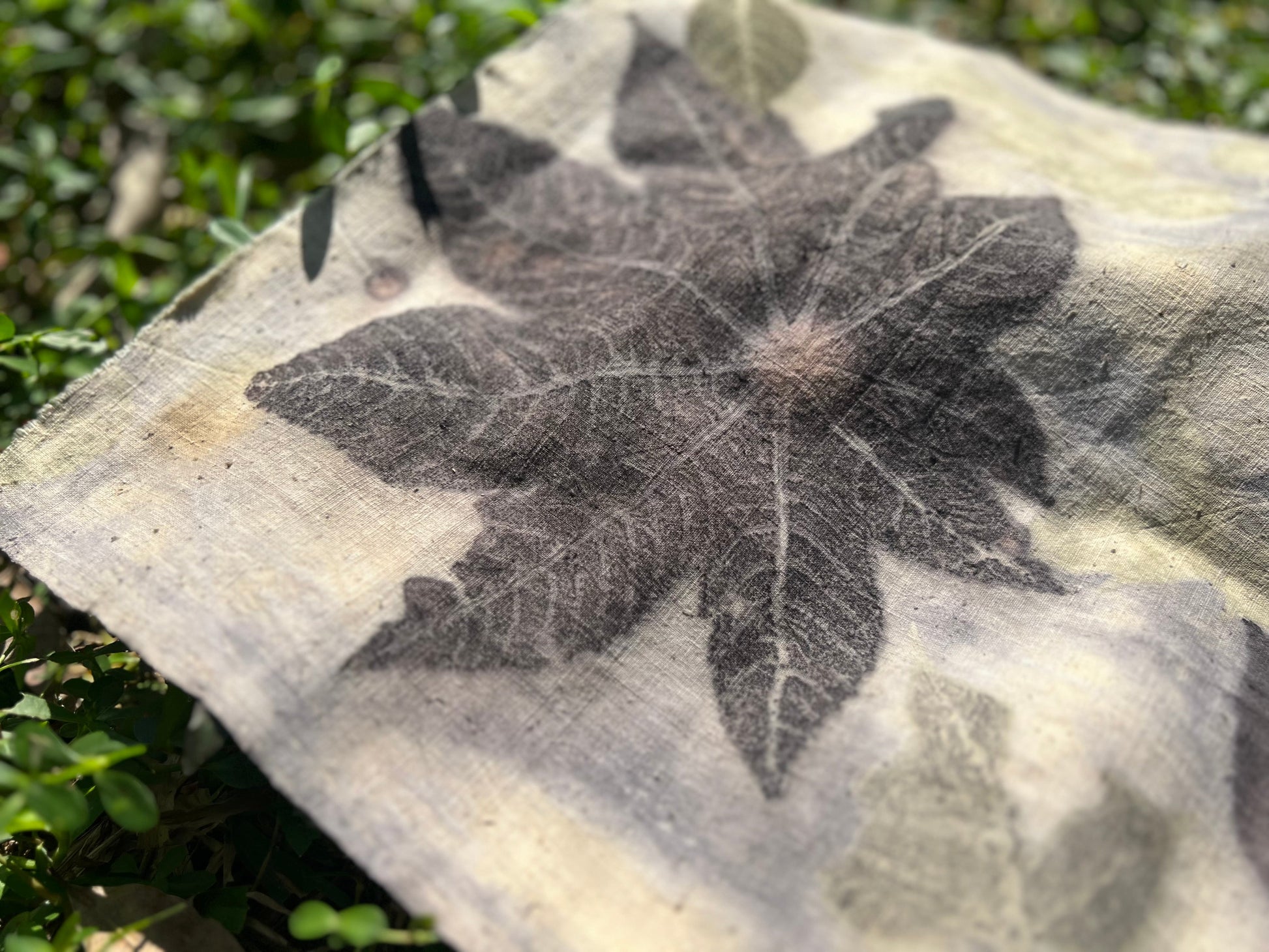 The magic of plant dyeing is not only the color, but the texture of the fabric changes significantly. After the soft cotton is dyed with natural plants, and then printed into patterns using plant heat transfer technology, it can be transformed into something as tough into a tough and leathery fabric.