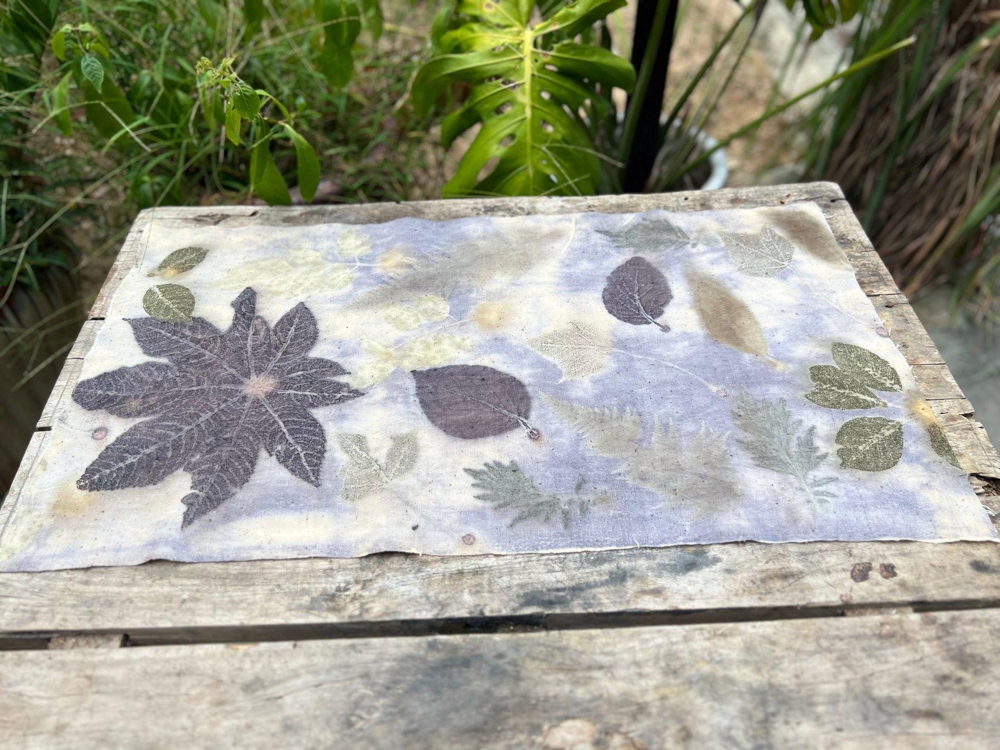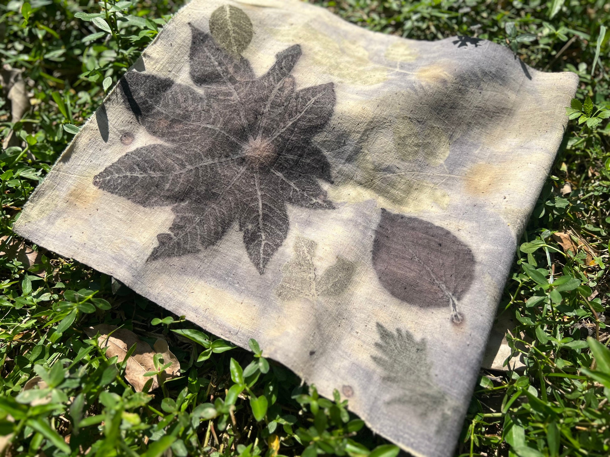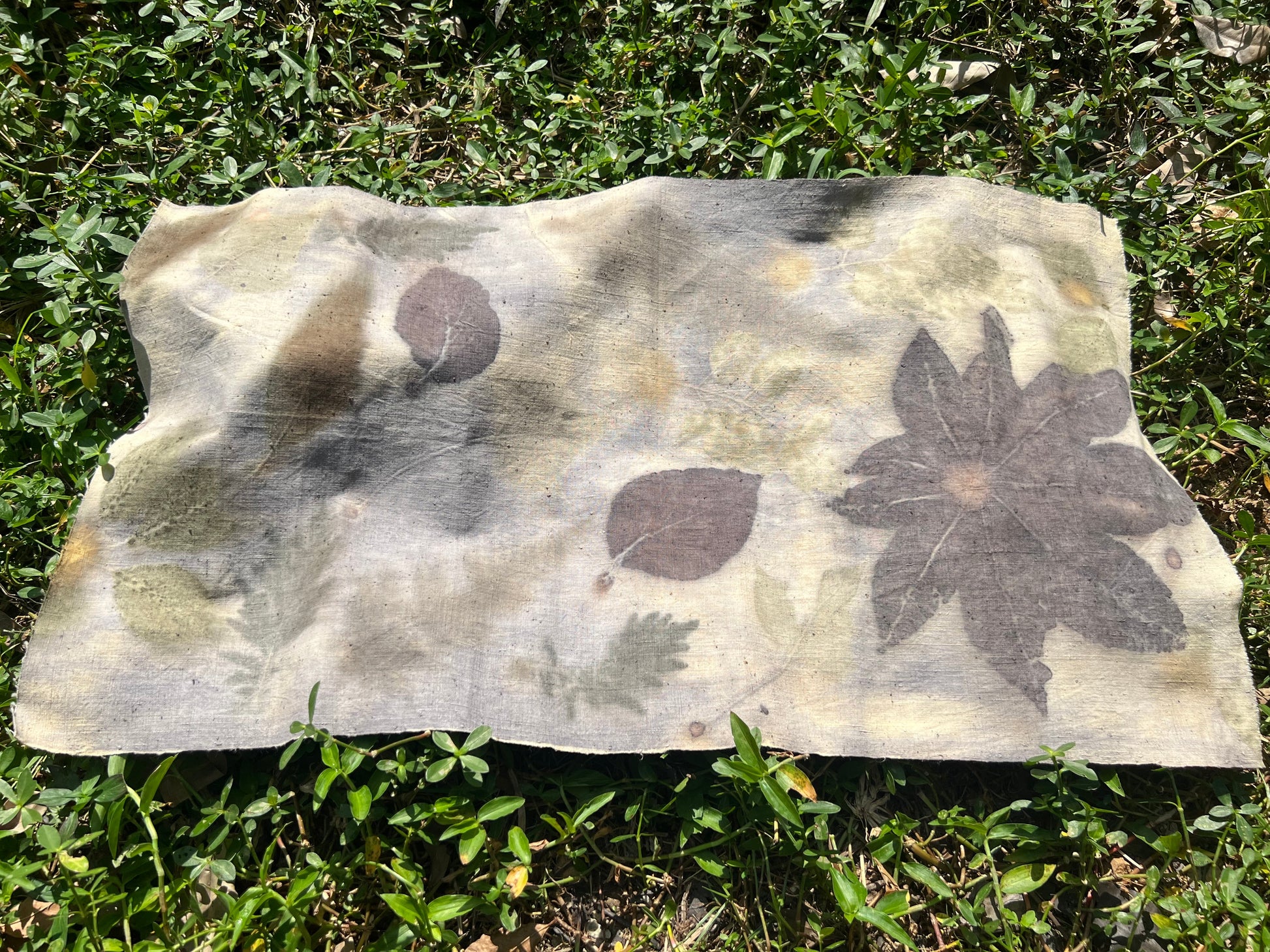 The magic of plant dyeing is not only the color, but the texture of the fabric changes significantly. After the soft cotton is dyed with natural plants, and then printed into patterns using plant heat transfer technology, it can be transformed into something as tough into a tough and leathery fabric.