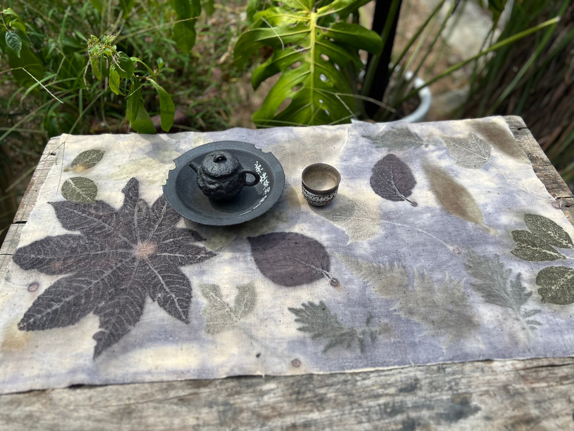 Tea Table Cloth Hand Dyed Plant Dyed Cotton Tea Mat Nature Dye Purple Chabu Chaxi