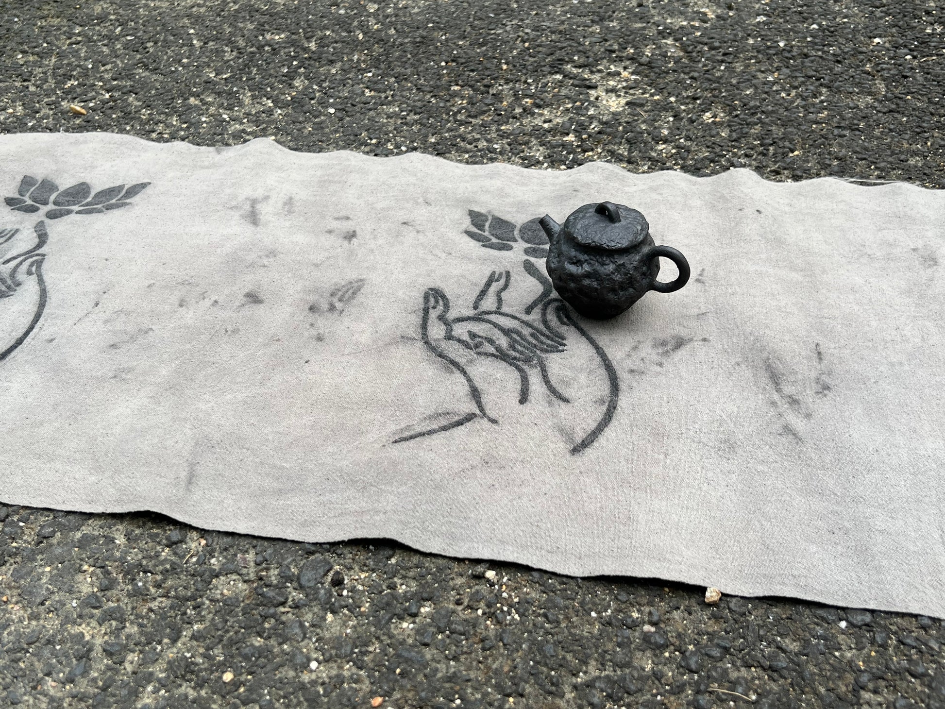 Hand Dyed Tea Table Cloth Plant Dyed Pure Cotton Tea Mat Natura Dye Guanyin Hand Pattern Chabu Chaxi