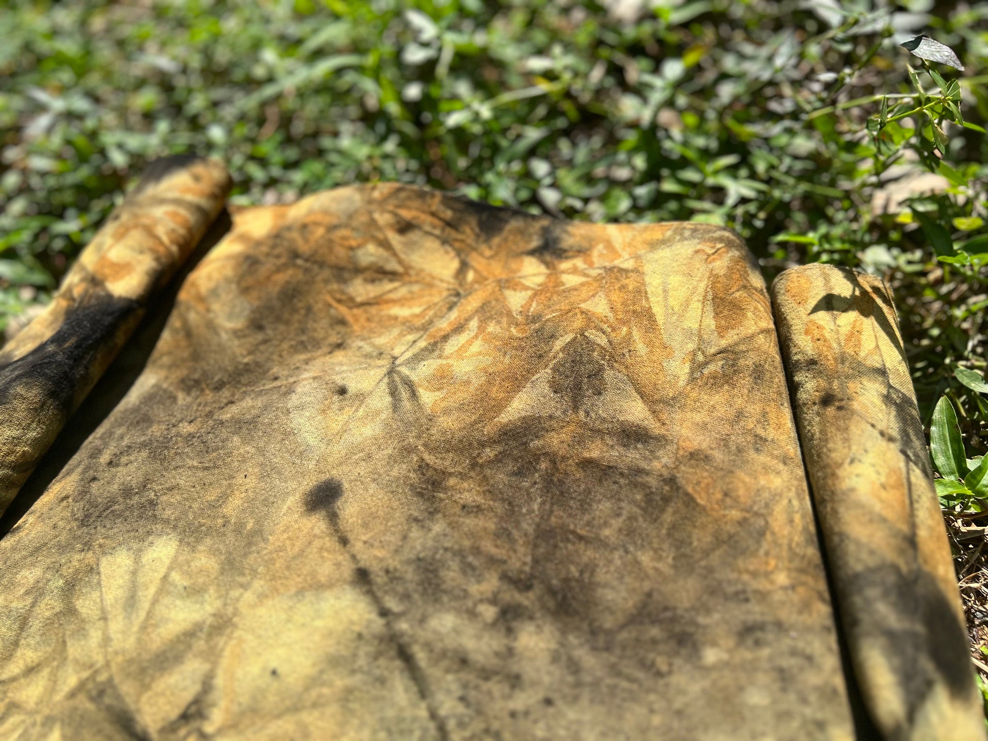 The magic of plant dyeing is not only the color, but the texture of the fabric changes significantly. After the soft cotton is dyed with natural plants, and then printed into patterns using plant heat transfer technology, it can be transformed into something as tough into a tough and leathery fabric.