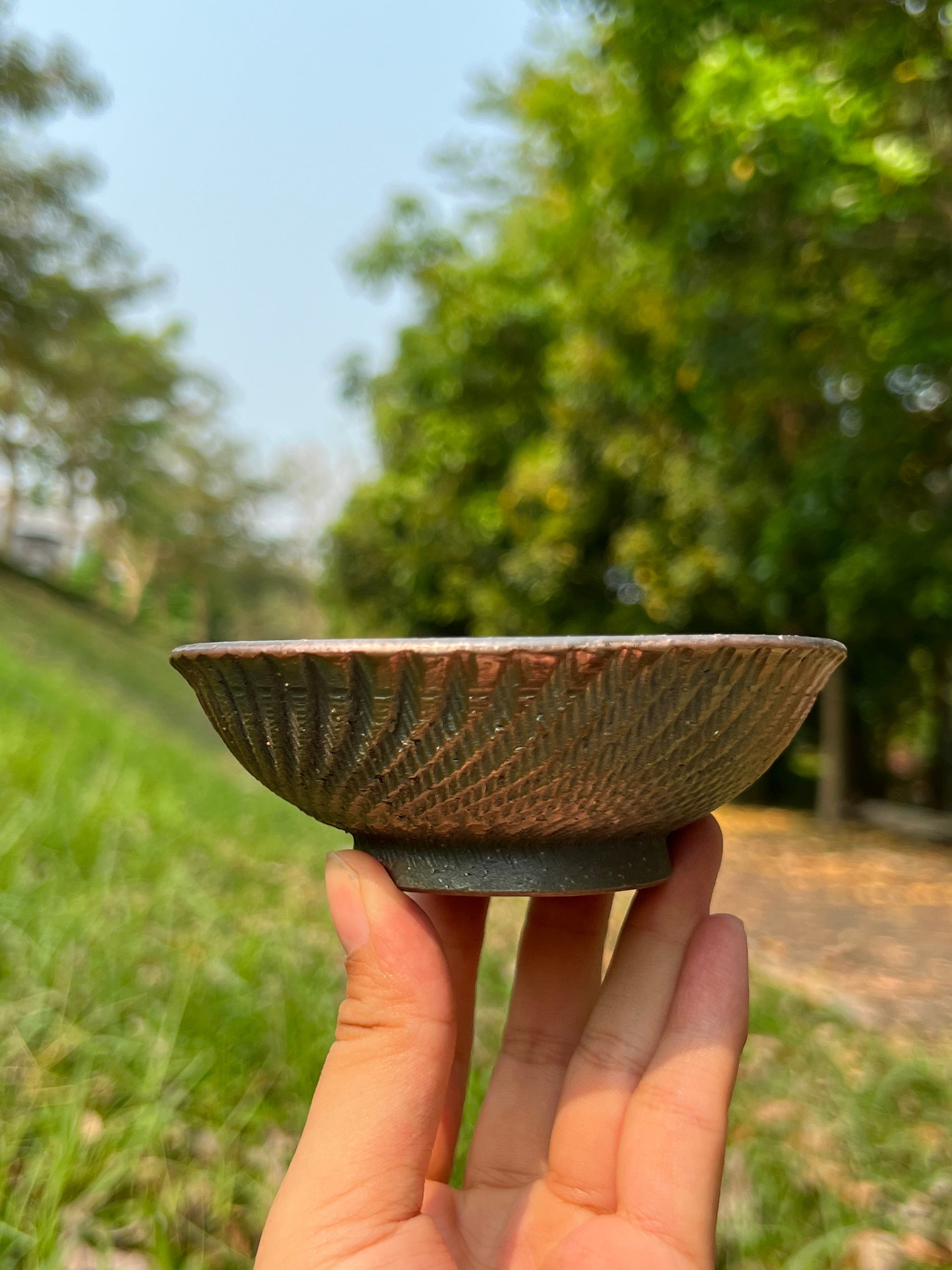 After 3 days of the wood-fired process, the natural wood ashes fall on the surface of the teacup, and then they become this natural gloss and it is particularly beautiful and shining under the sunlight.