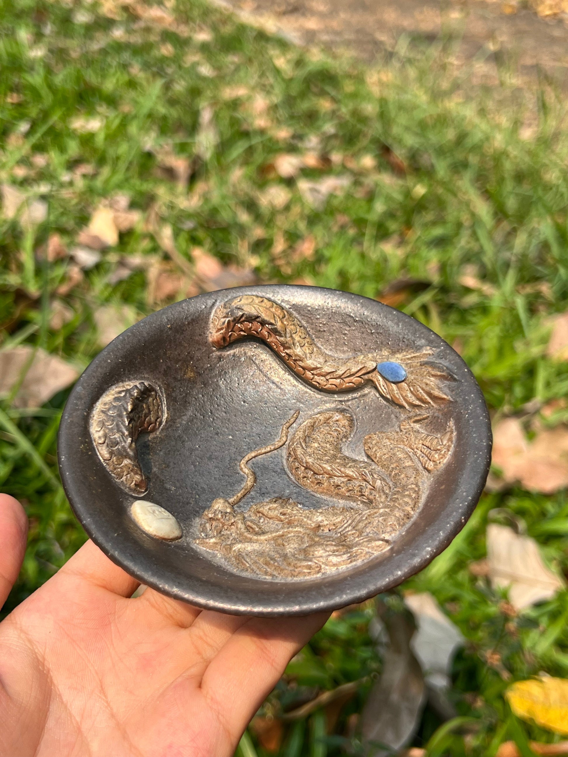 Handmade Chinese Tietai Pottery Woodfired Natural Gloss Artwork Dragon Teacup Gongfu Teaware Teacup