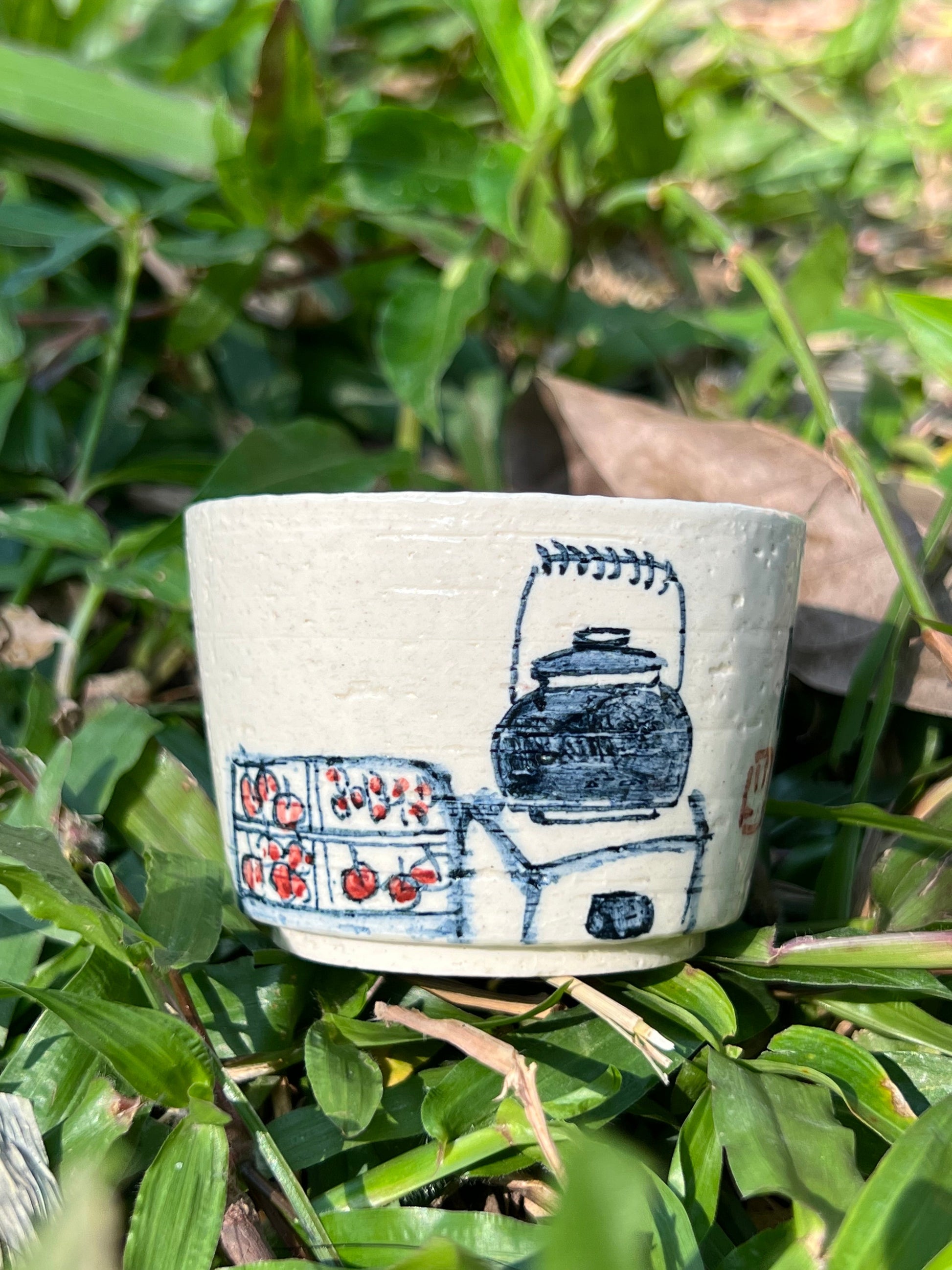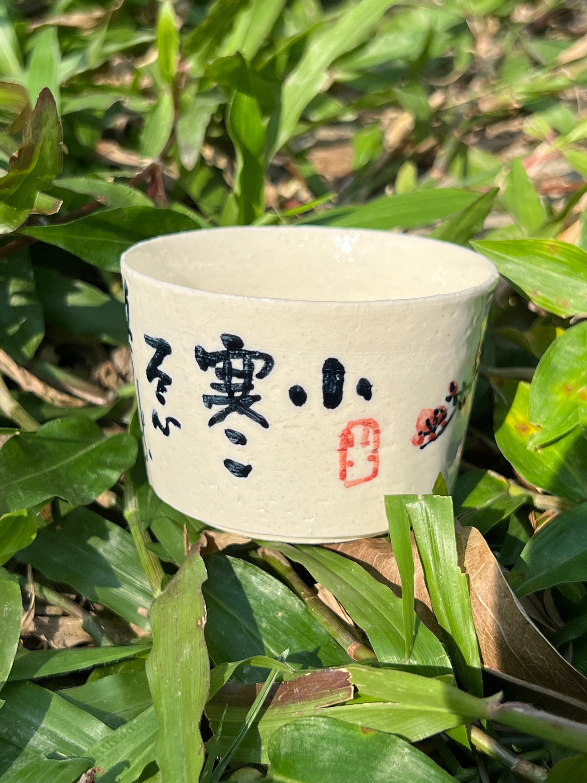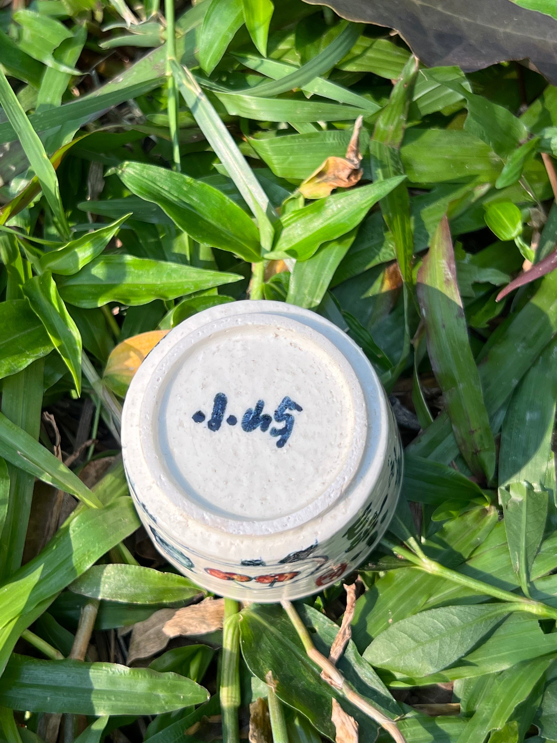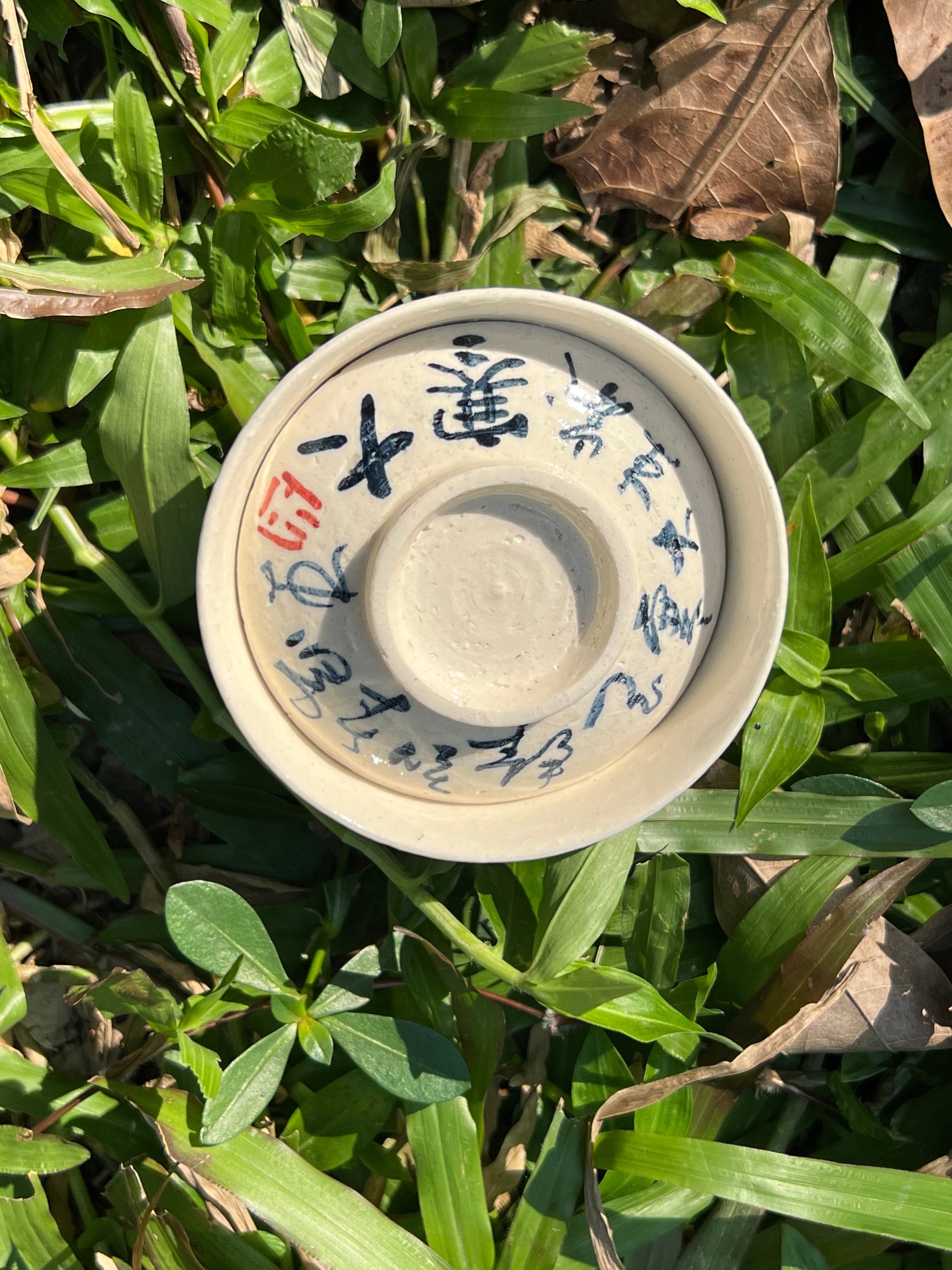 This quaint gaiwan is hand-painted with Chinese calligraphy poems and Chaozhou Gongfu cha patterns, and it is full of literati elegance. It is also paired with a kohiki craft. If you look closely, you can see some cracks on the tea utensil.