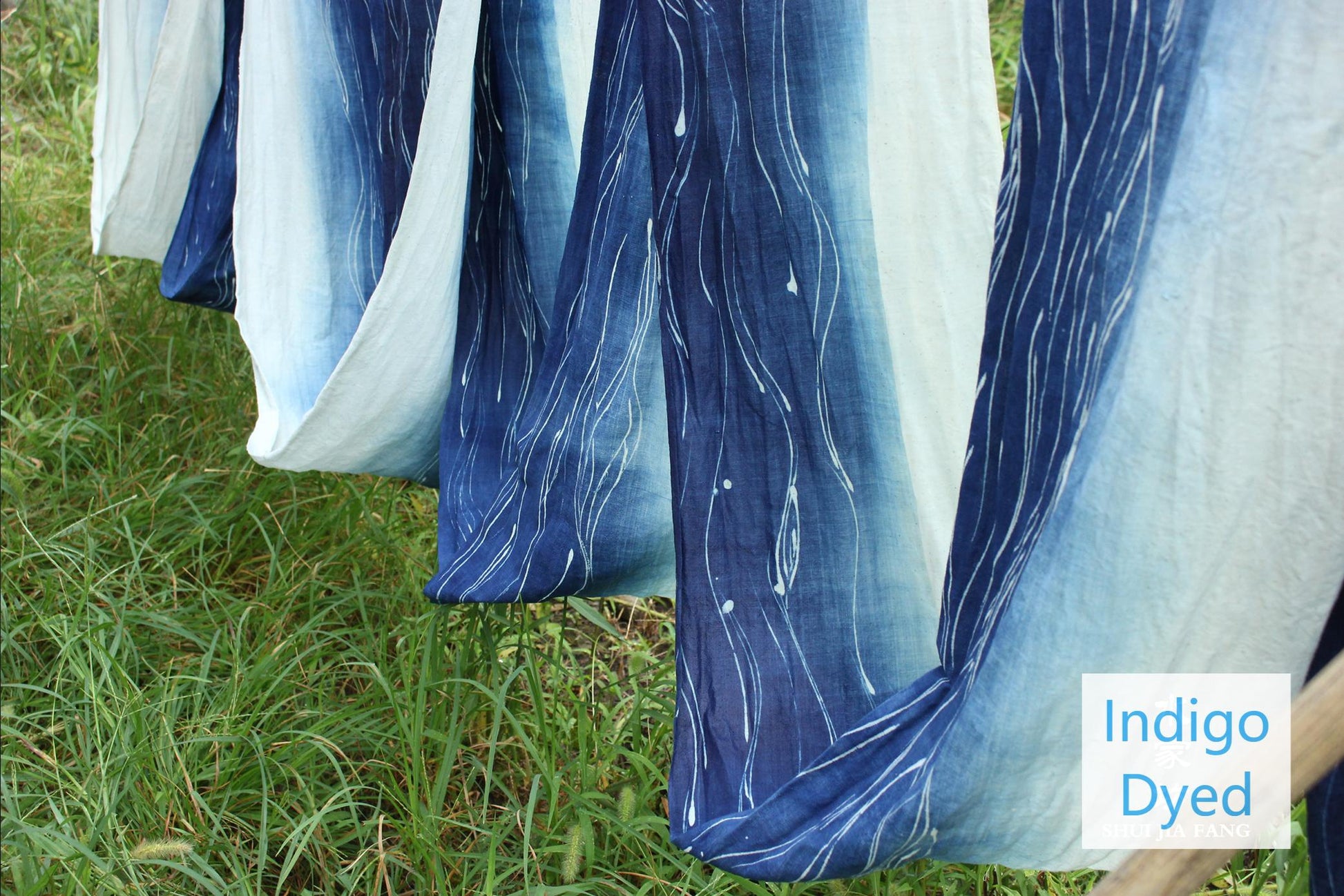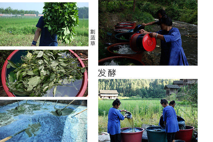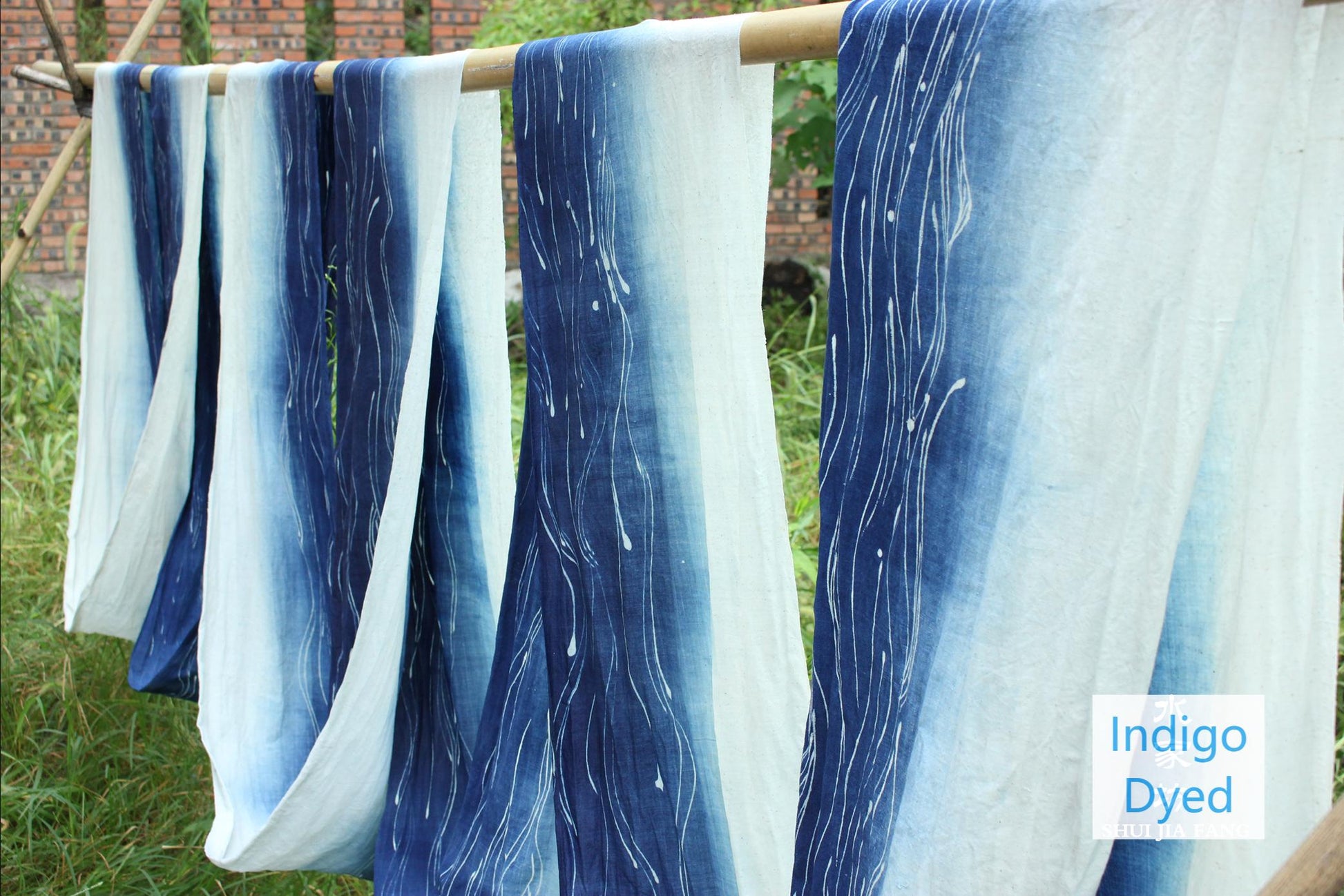 Indigo dyeing is a type of natural plant dyeing. It is an ancient Chinese artificial dyeing technique that uses plant dyes extracted from the leaves of plants that naturally contain blue pigments (such as Isatis indigotica) and then fermented and oxidized to dye fabrics blue.