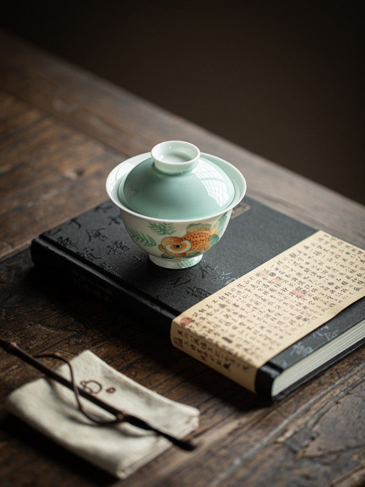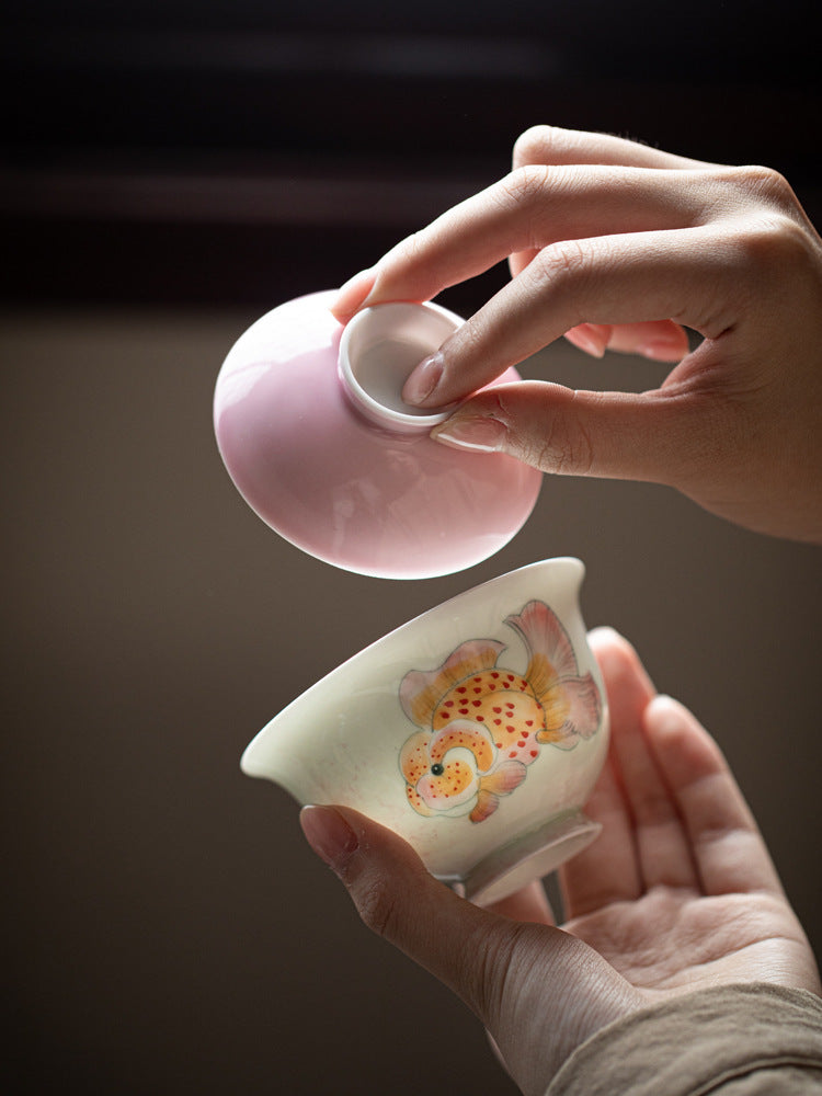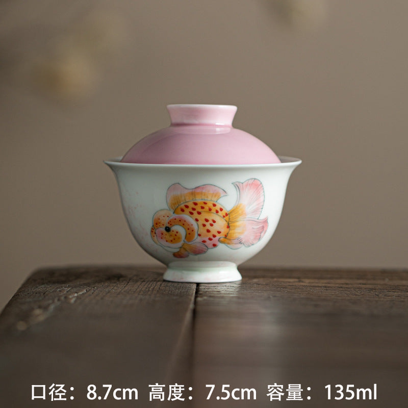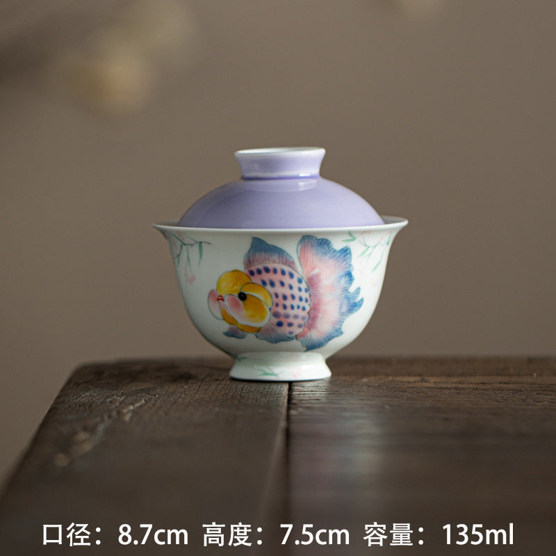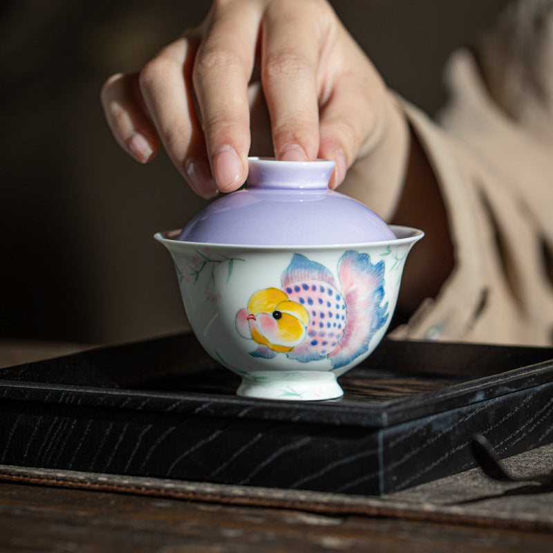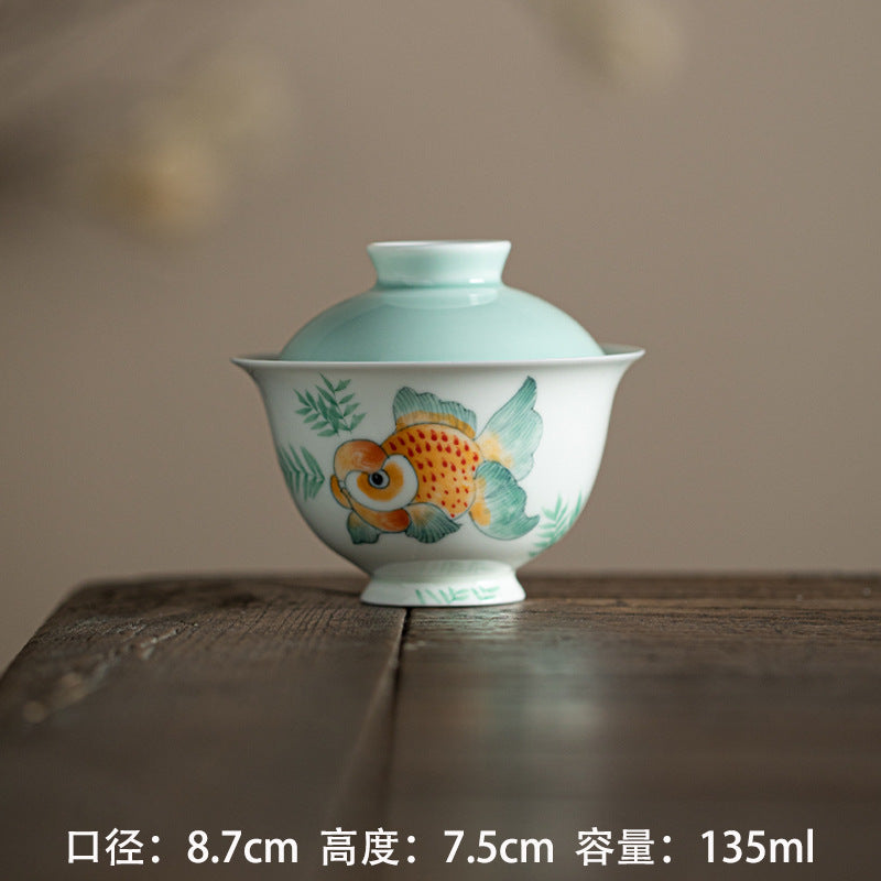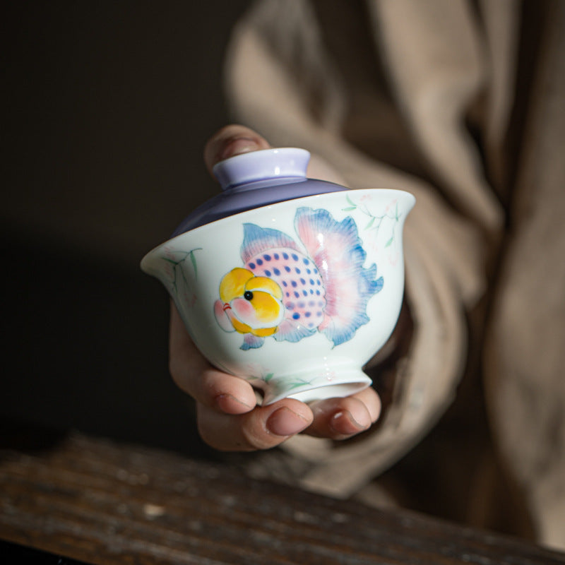 Handmade Chinese Gaiwan Handpainted Fathead Fish Pattern Teaware Teapot Master Pottery Japanese Ceramic