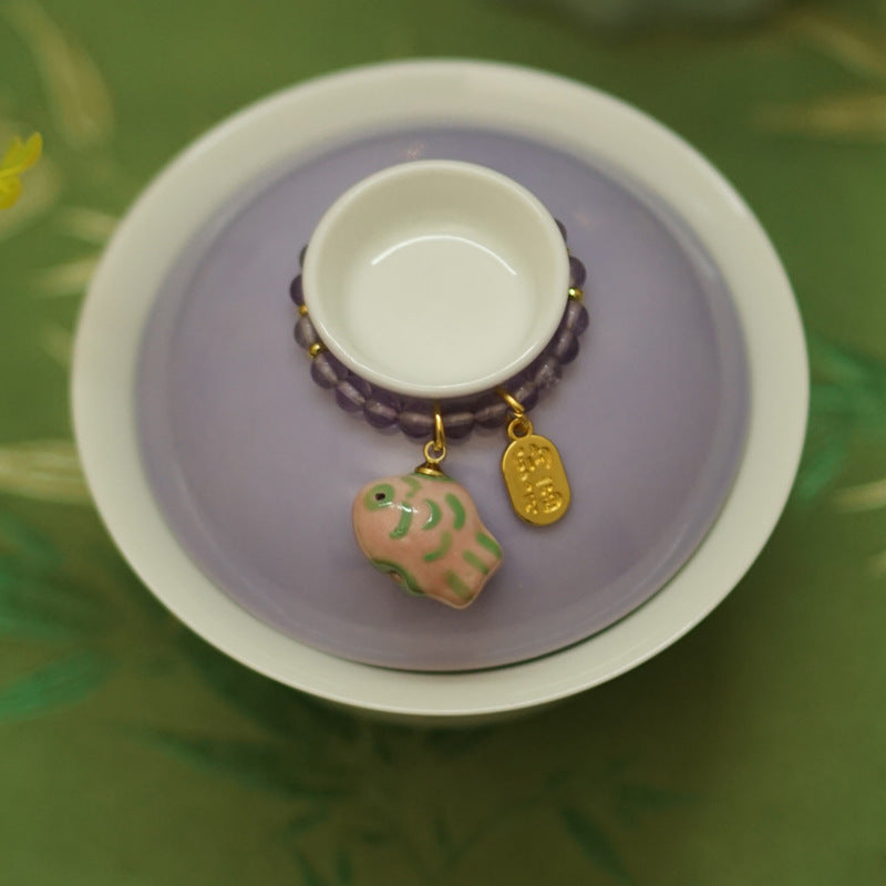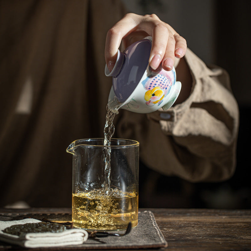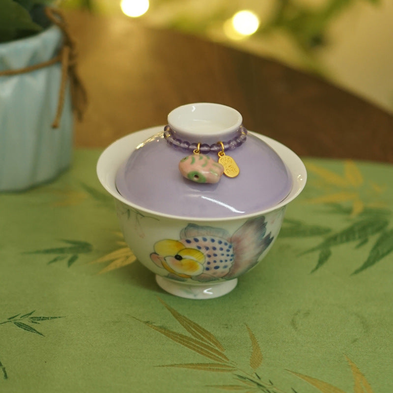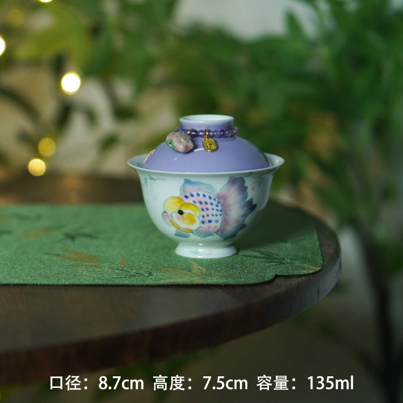 The lovely expression on the gaiwan makes me attracted when I see them for the first time. It is mysterious purple is dreamy in color, and the hand-painted goldfish pattern is lifelike, making me feel as if I am in a beautiful underwater world.