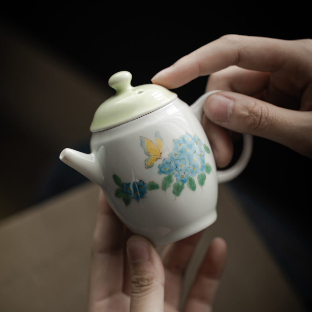 Handmade Chinese Green Teapot Handpainted Hydrangea Pattern Teaware Master Pottery Japanese Ceramic