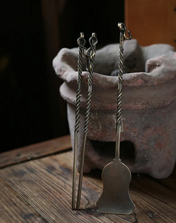 Handmade Copper Gongfu Stove Fire Chopsticks Shovel Set Brass Chopsticks Traditinal Chinese Charcoal Chopsticks Scoop Set