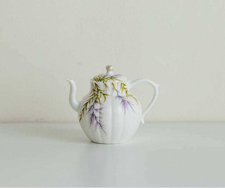 Handpainted Purple Wisteria Flower Pattern Teapot Vintage Teapot Chinese Master Porcelain Ceramic