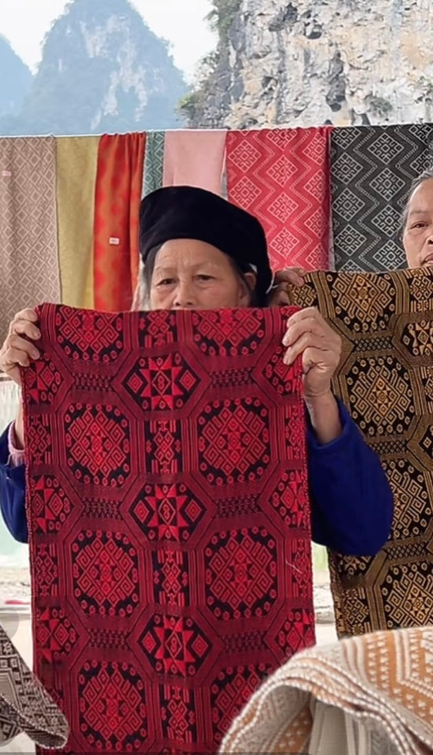 Reminder: as it's 100% handmade by hand-operated loom, the patterns are very varied, for the big pattern, the cloth can be so substantial like machine make.