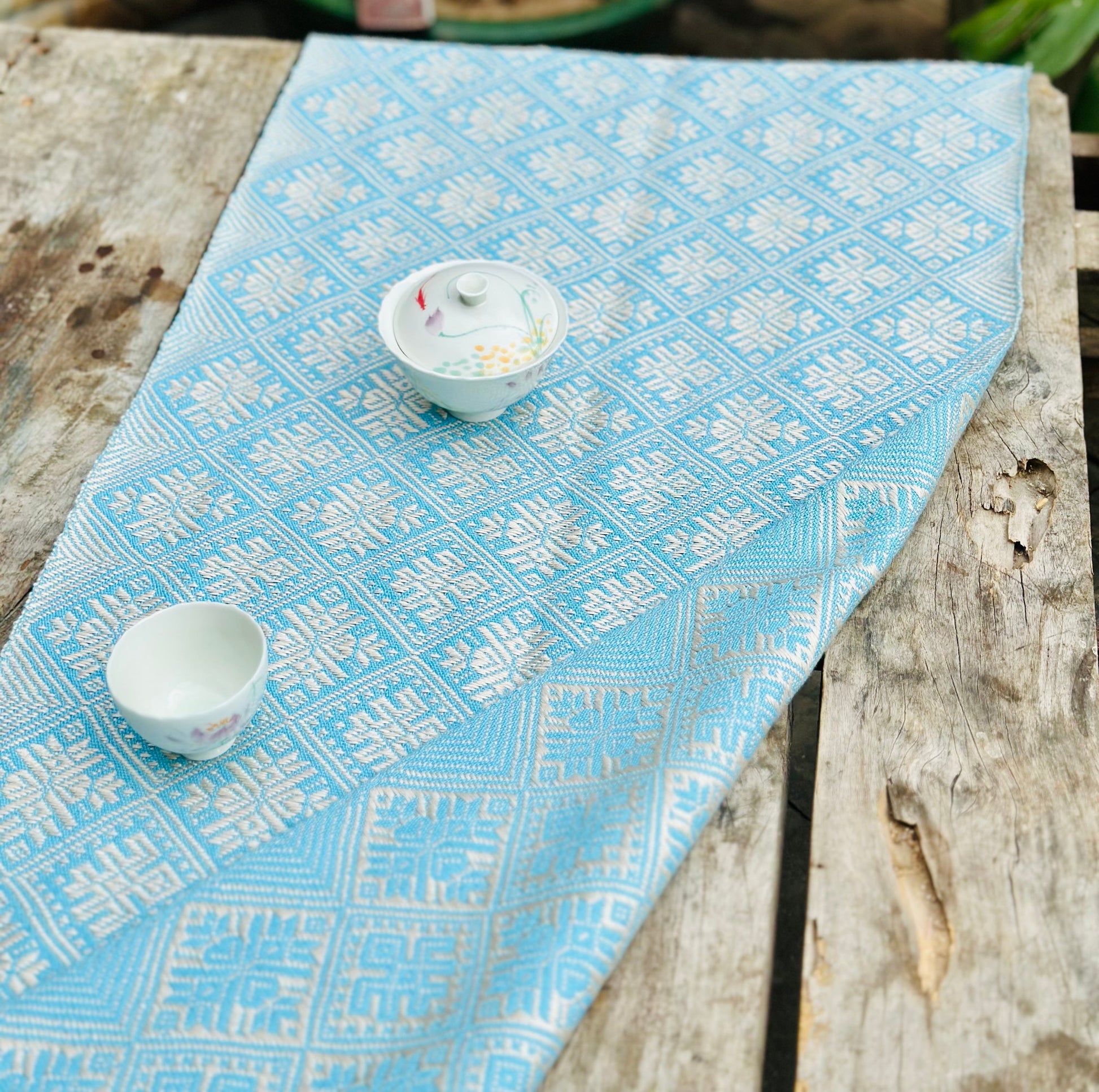 High-end Handcrafted Swallow Phoenix Flower Pattern Chinese Blue White Zhuang Brocade Silk Cloth Scarf Tea Table Cloth