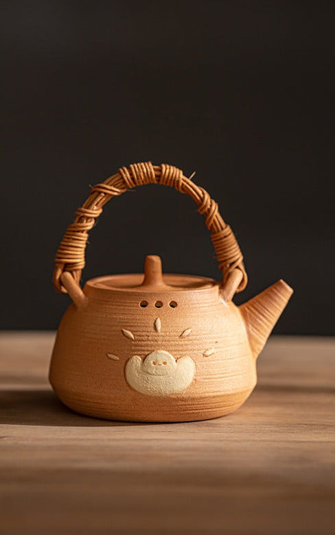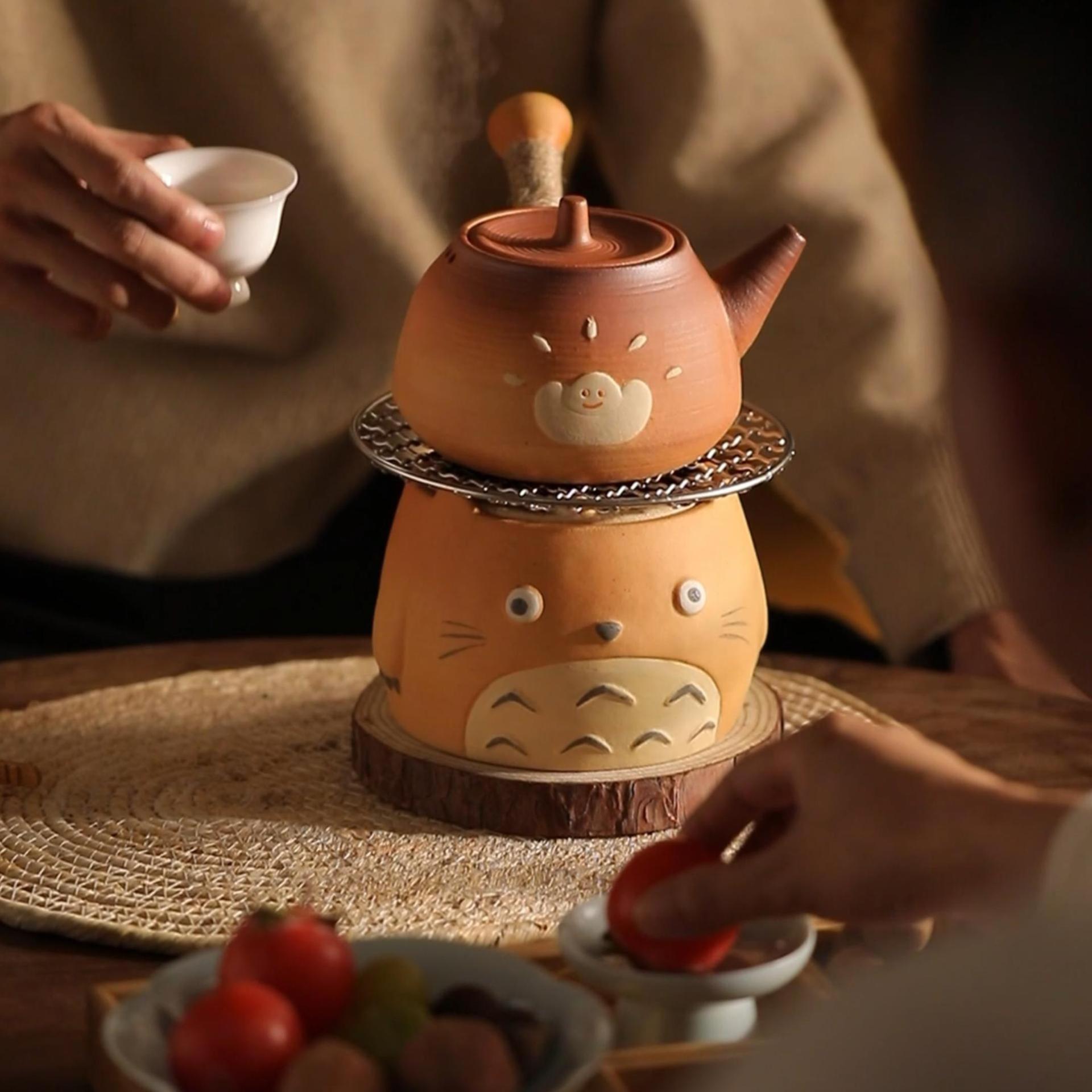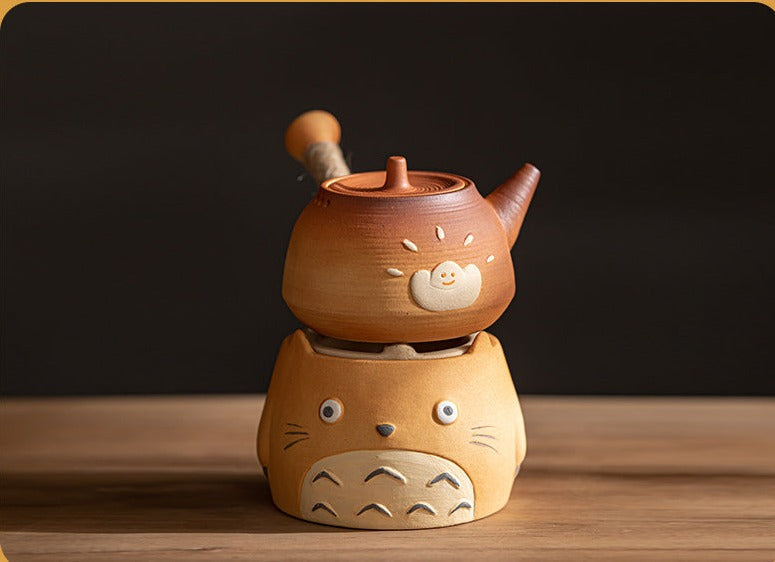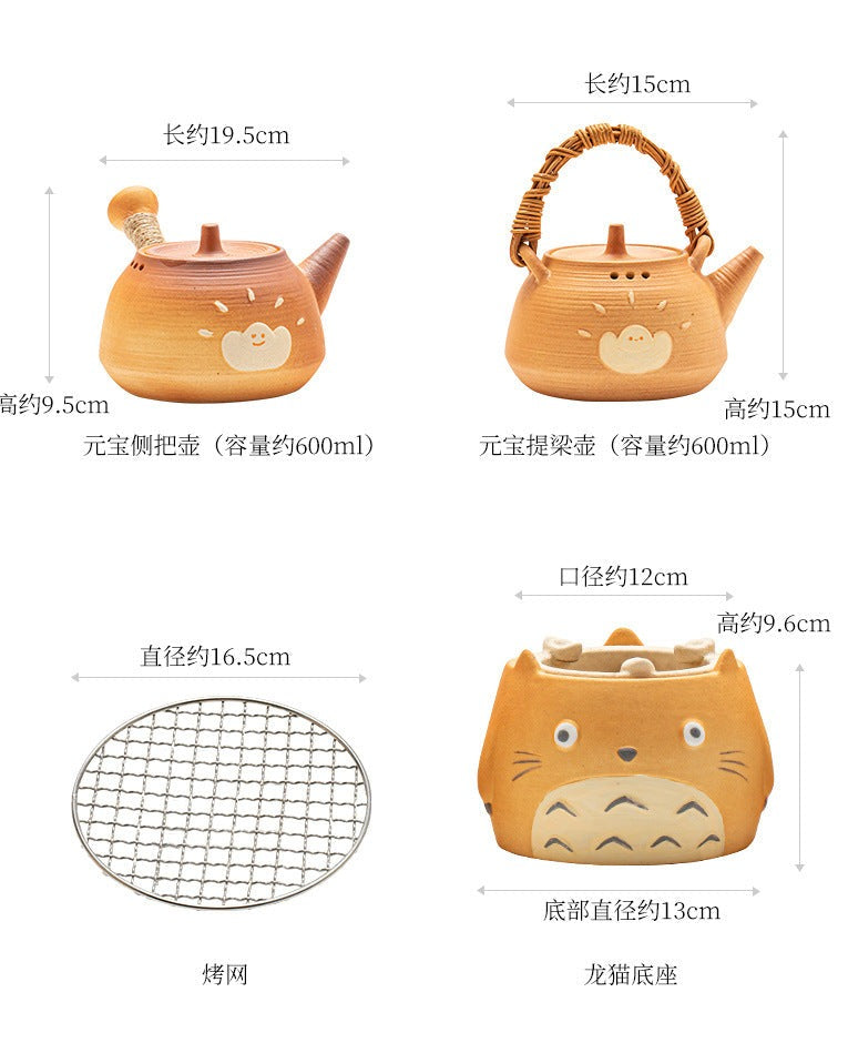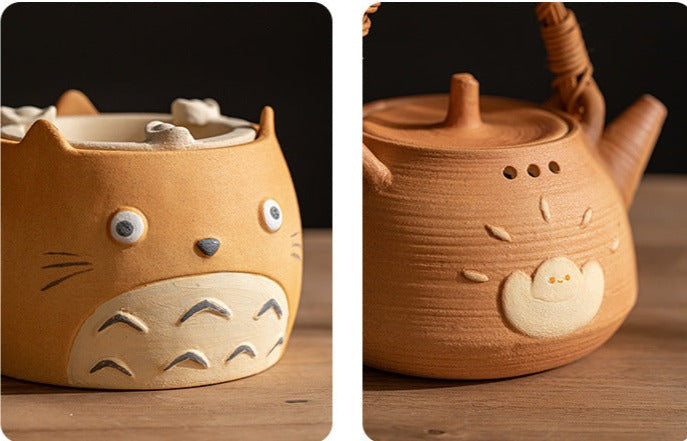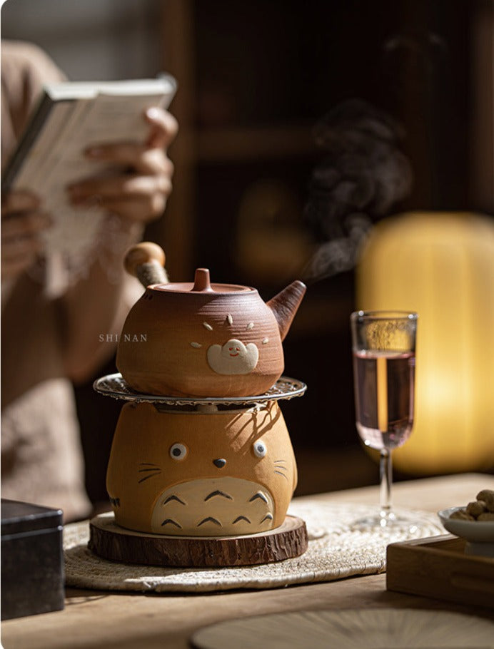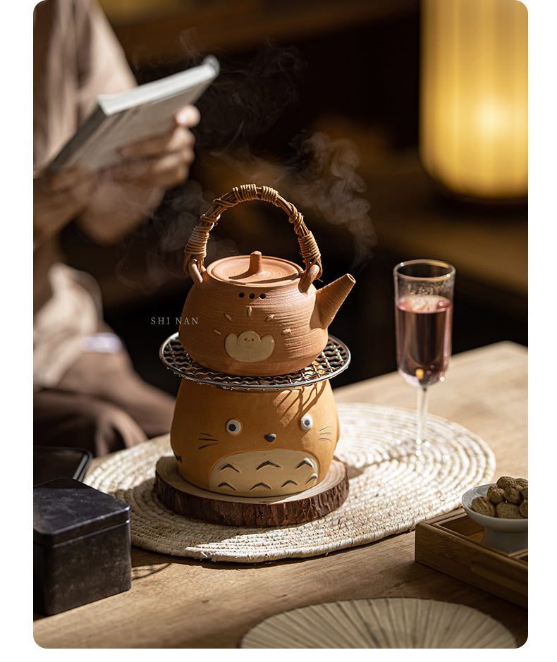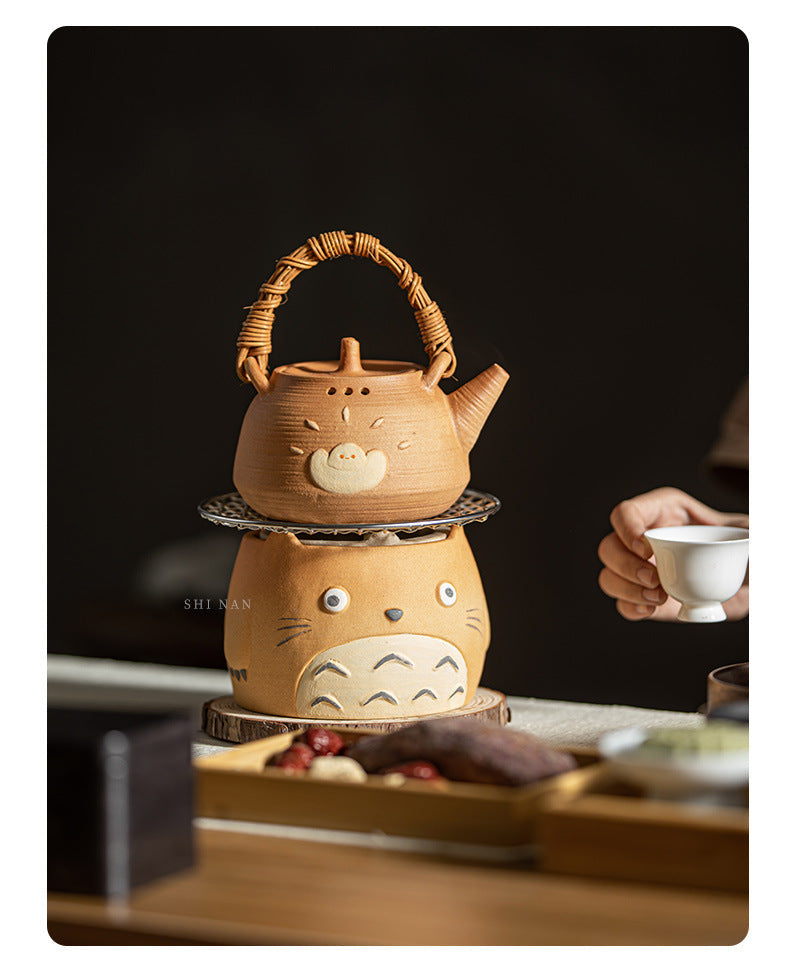 Japanese Totoro Painting Style Kettle Stove Set Handmade Charcoal Stove Set Chinese Master Pottery
