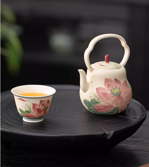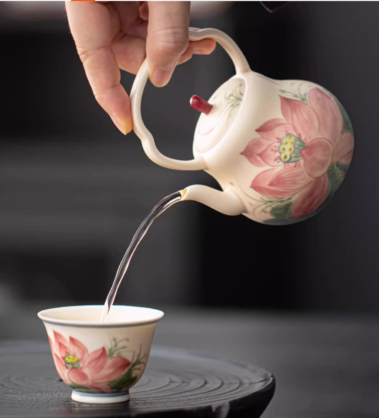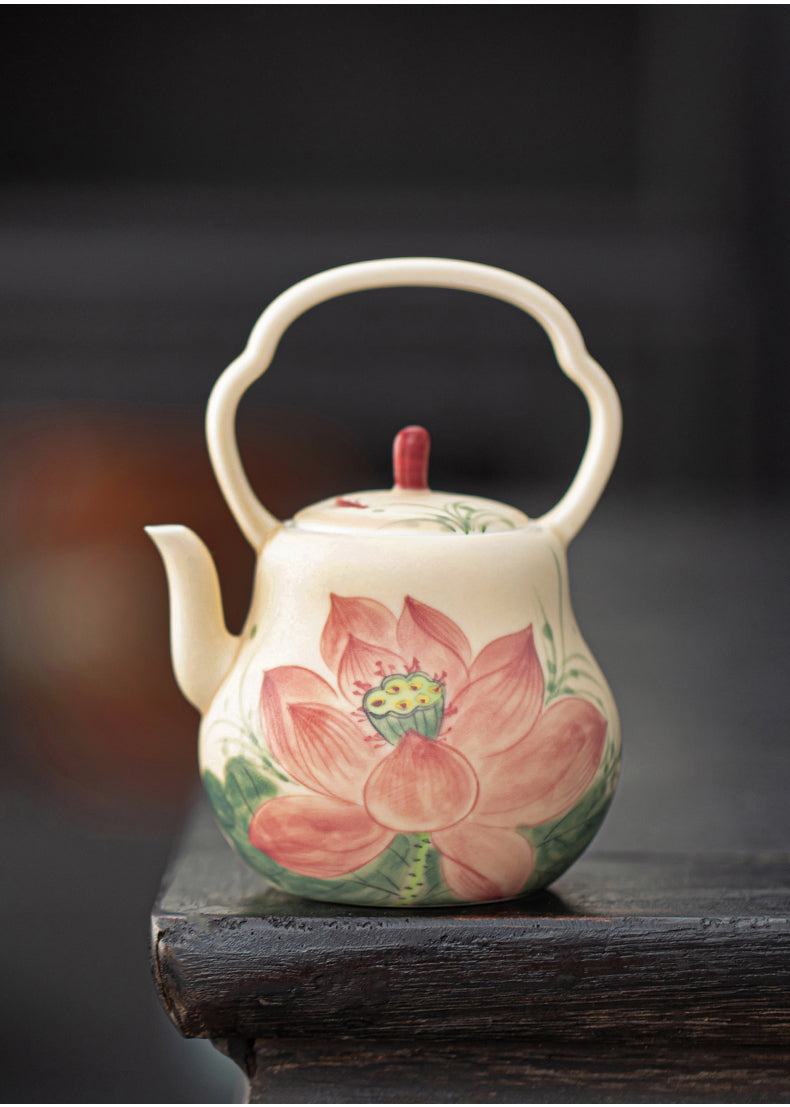 Original Handpaited Chinese Lotus Pattern Teaware Teapot Master Pottery Ceramic Japanese Ceramic
