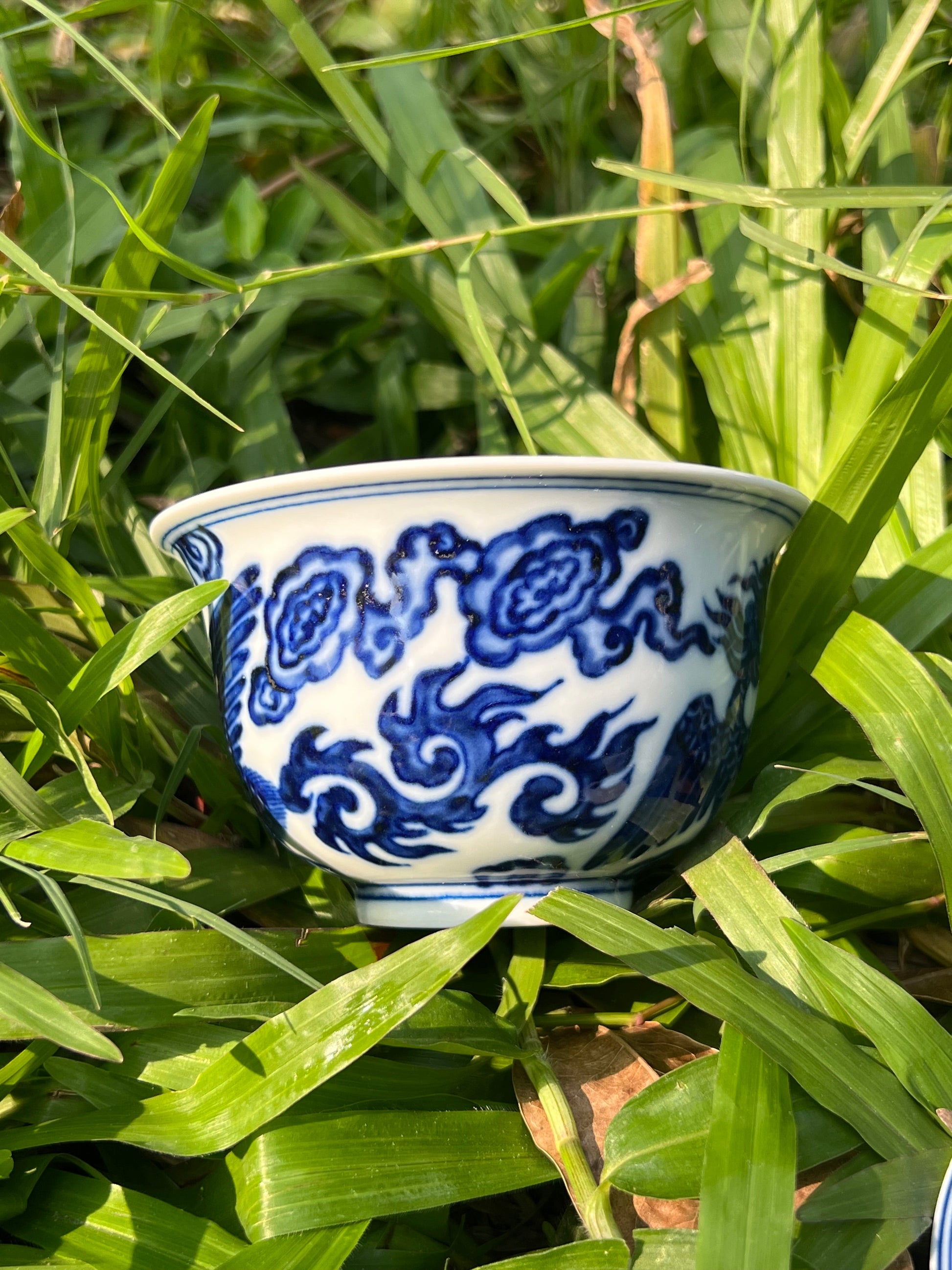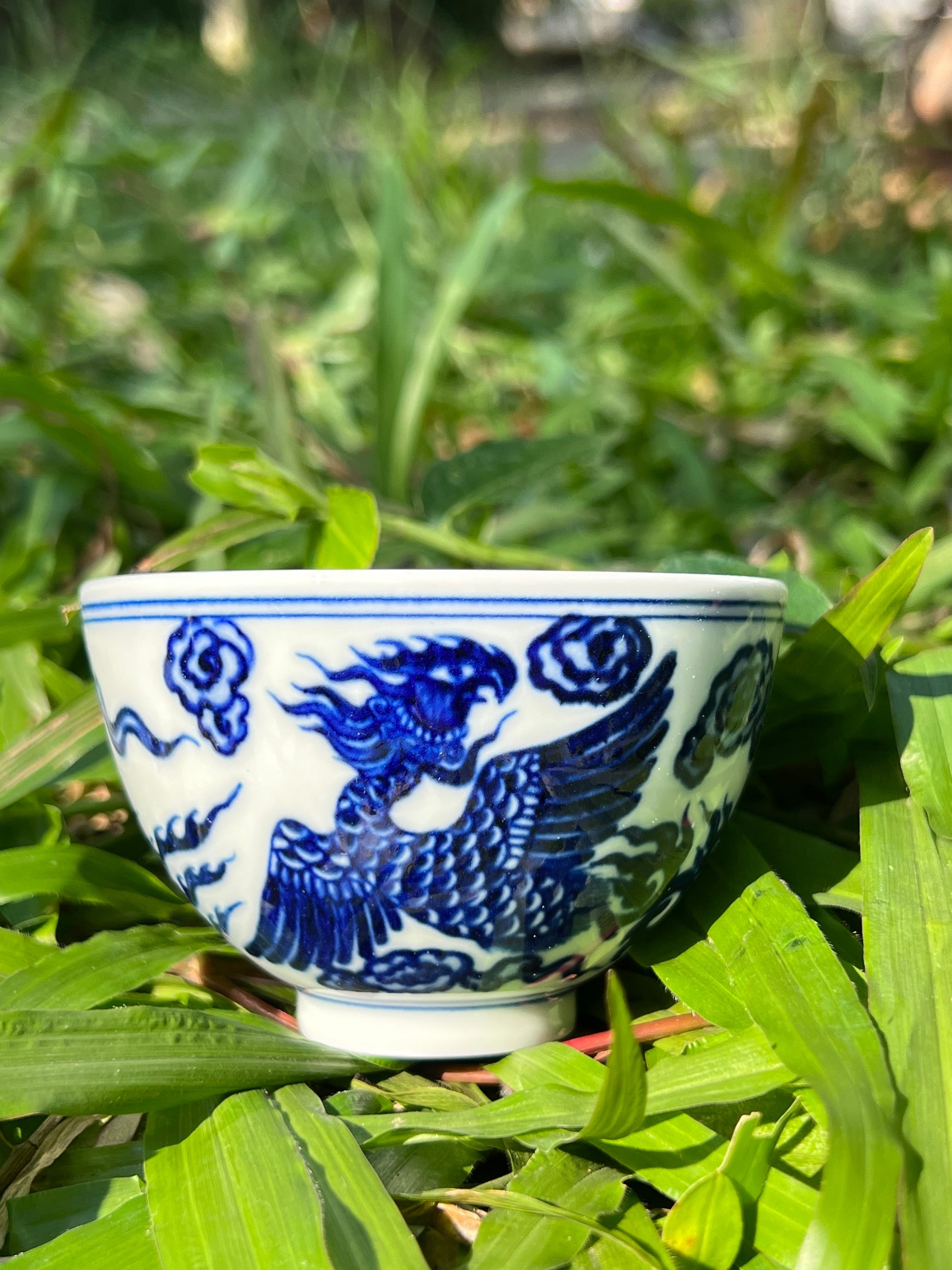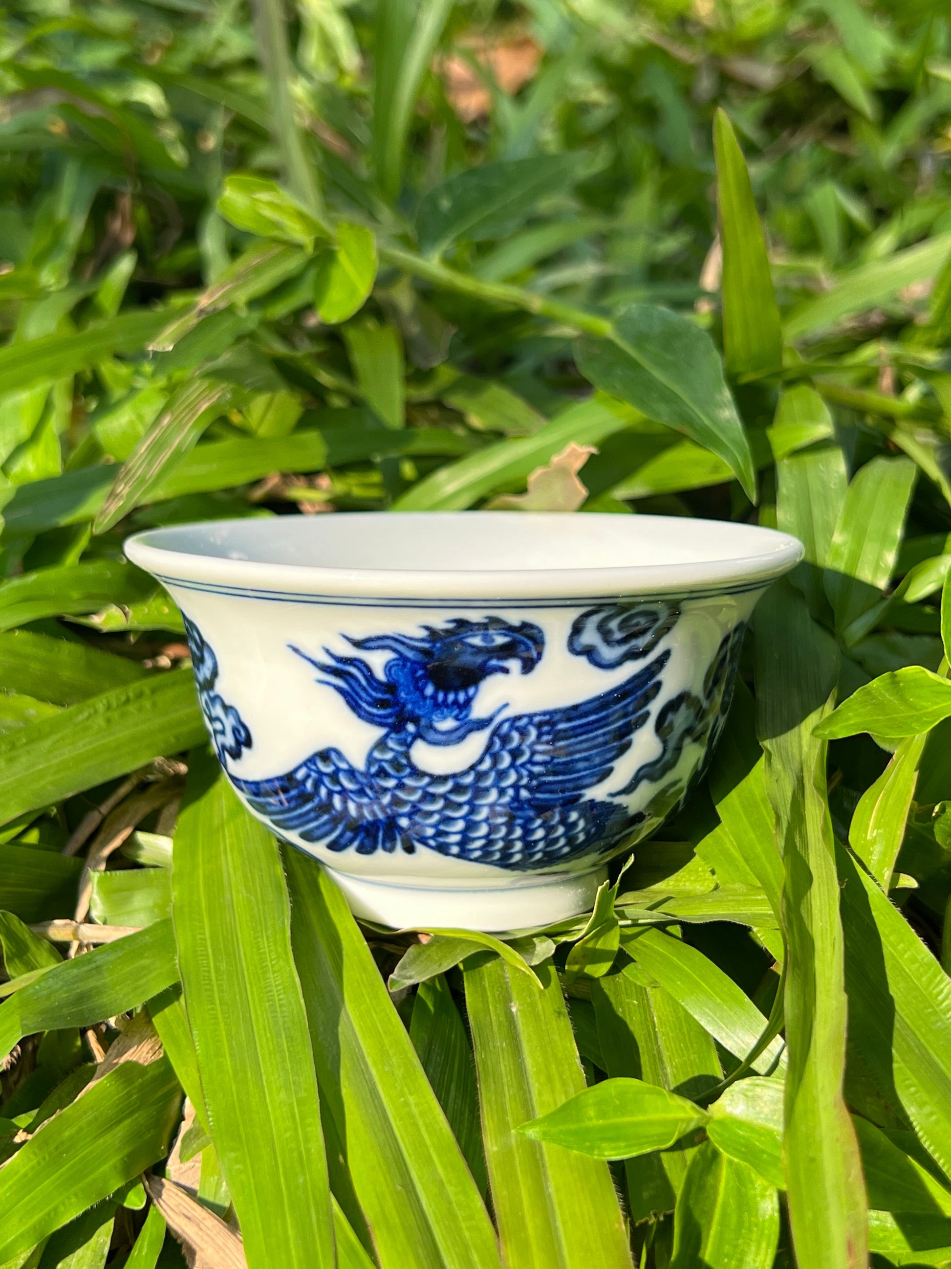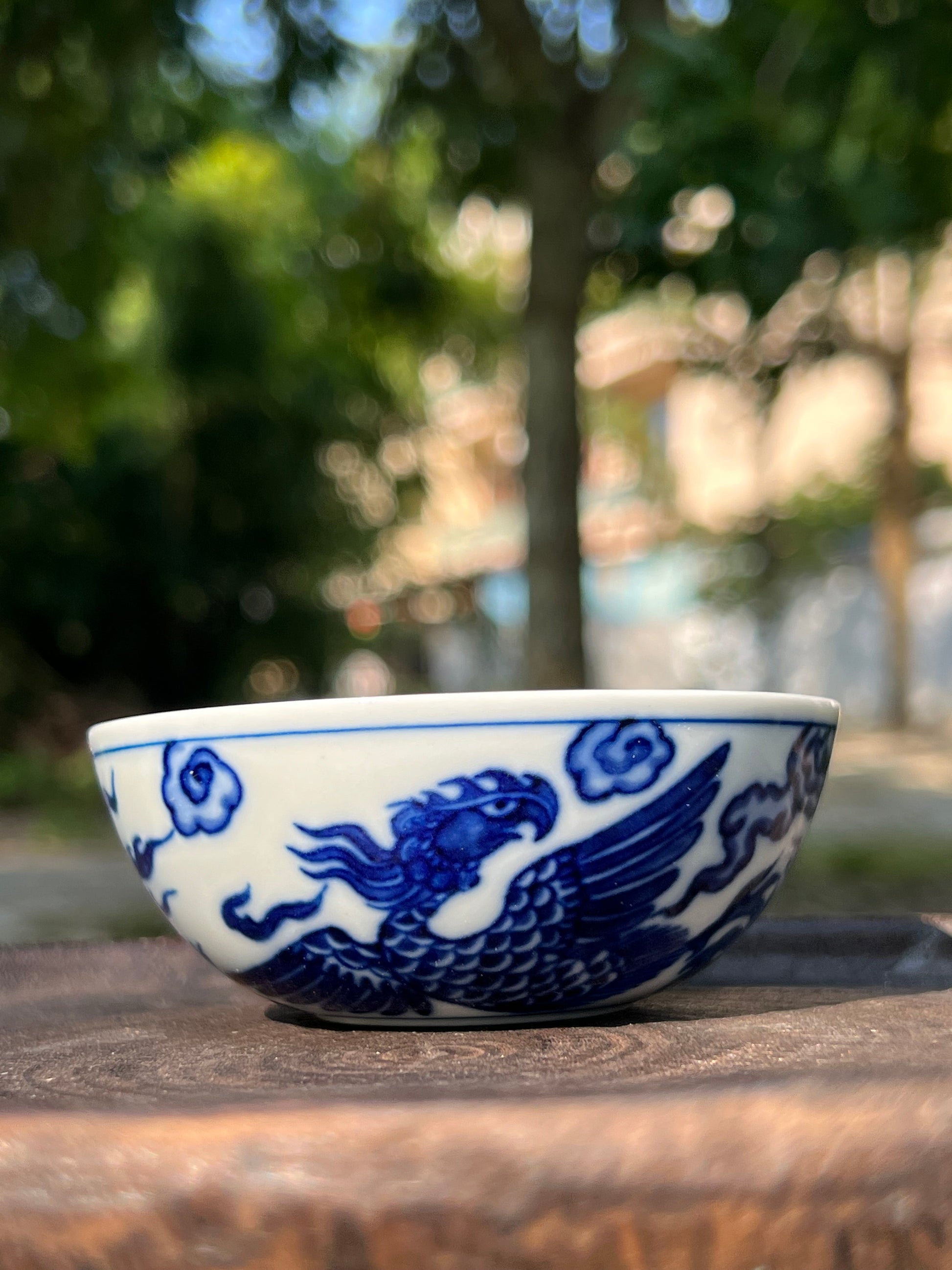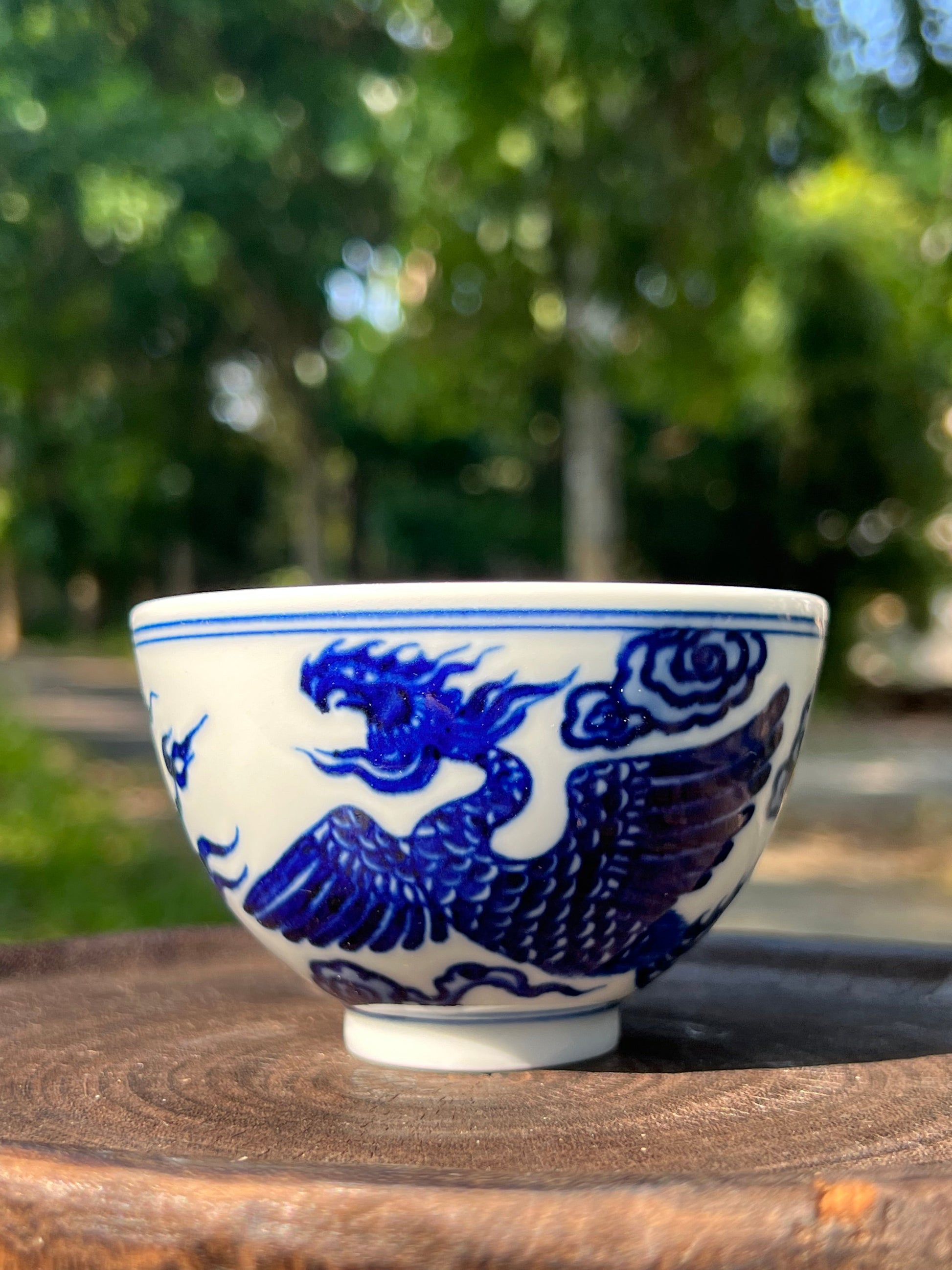 This Jingdezhen artwork gaiwan is handpainted with Chinese phoenix and auspicious clouds by a Jingdezhen experienced ceramic painter, Cao Yi.
