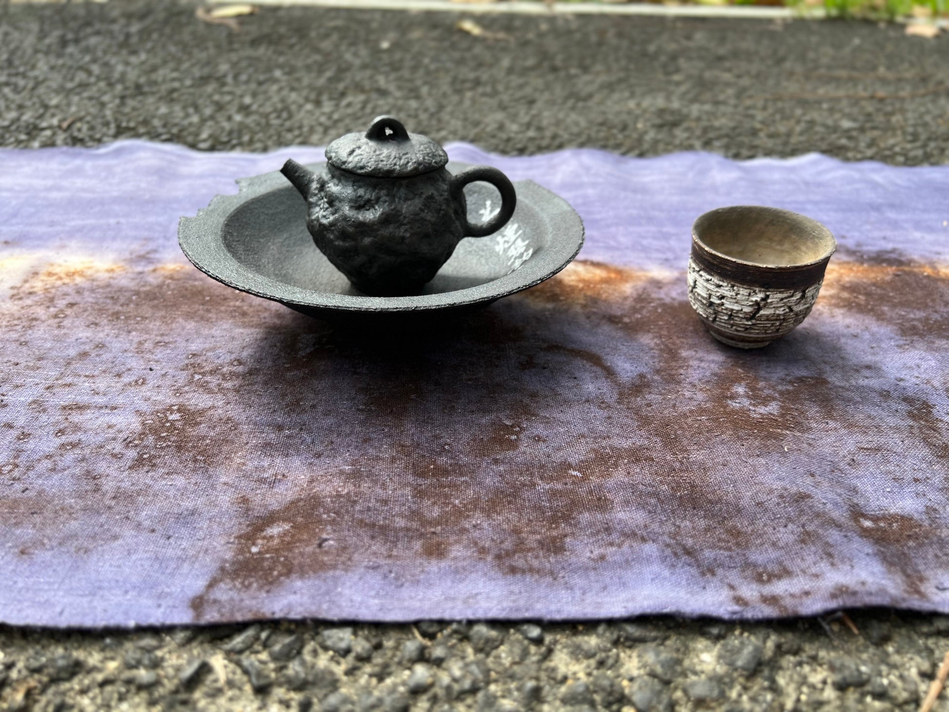 Hand Dyed Plant Dyed Cotton Tea Table Cloth Nature Dye Tea Mat Chabu Chaxi Purple Color