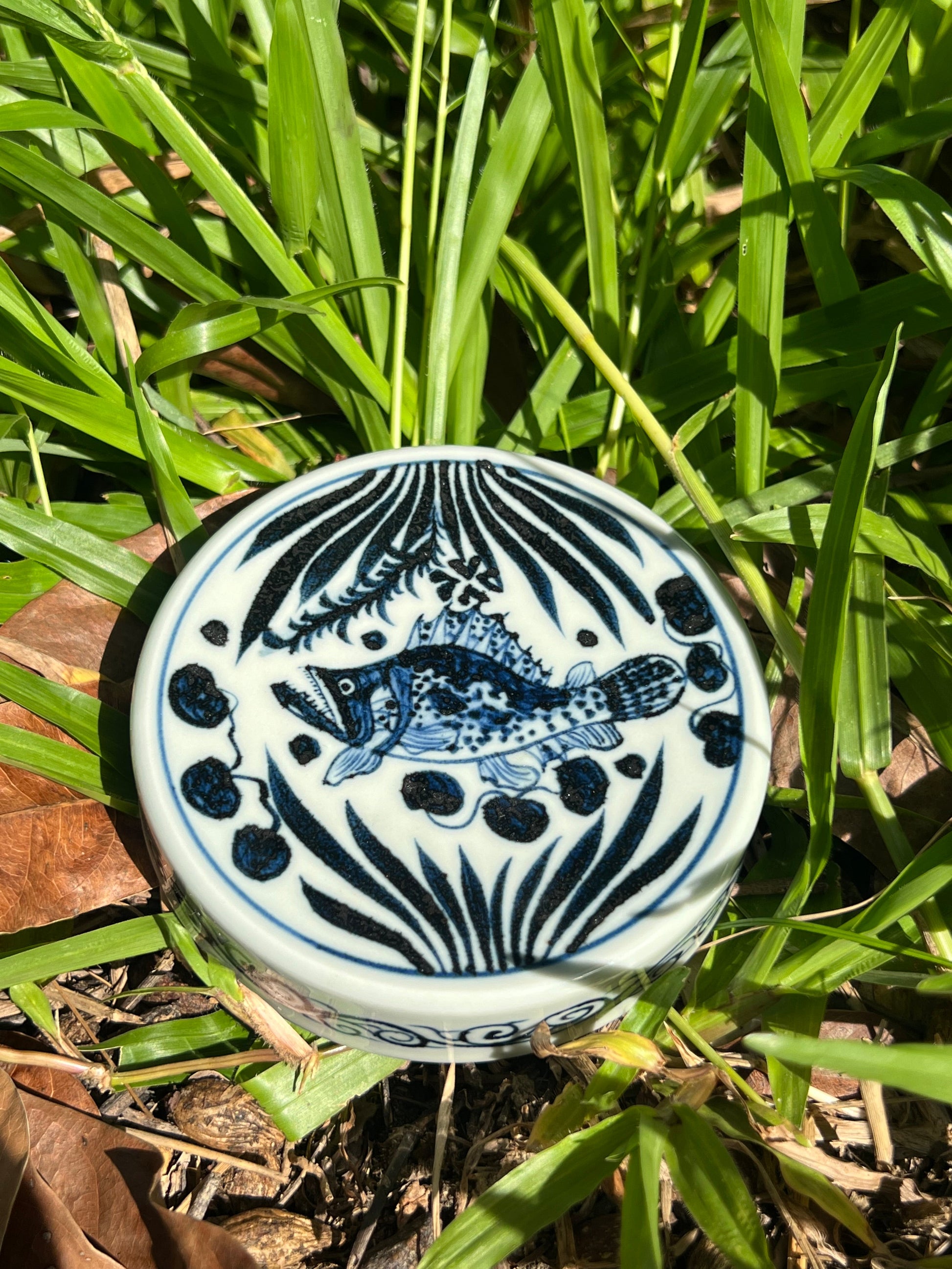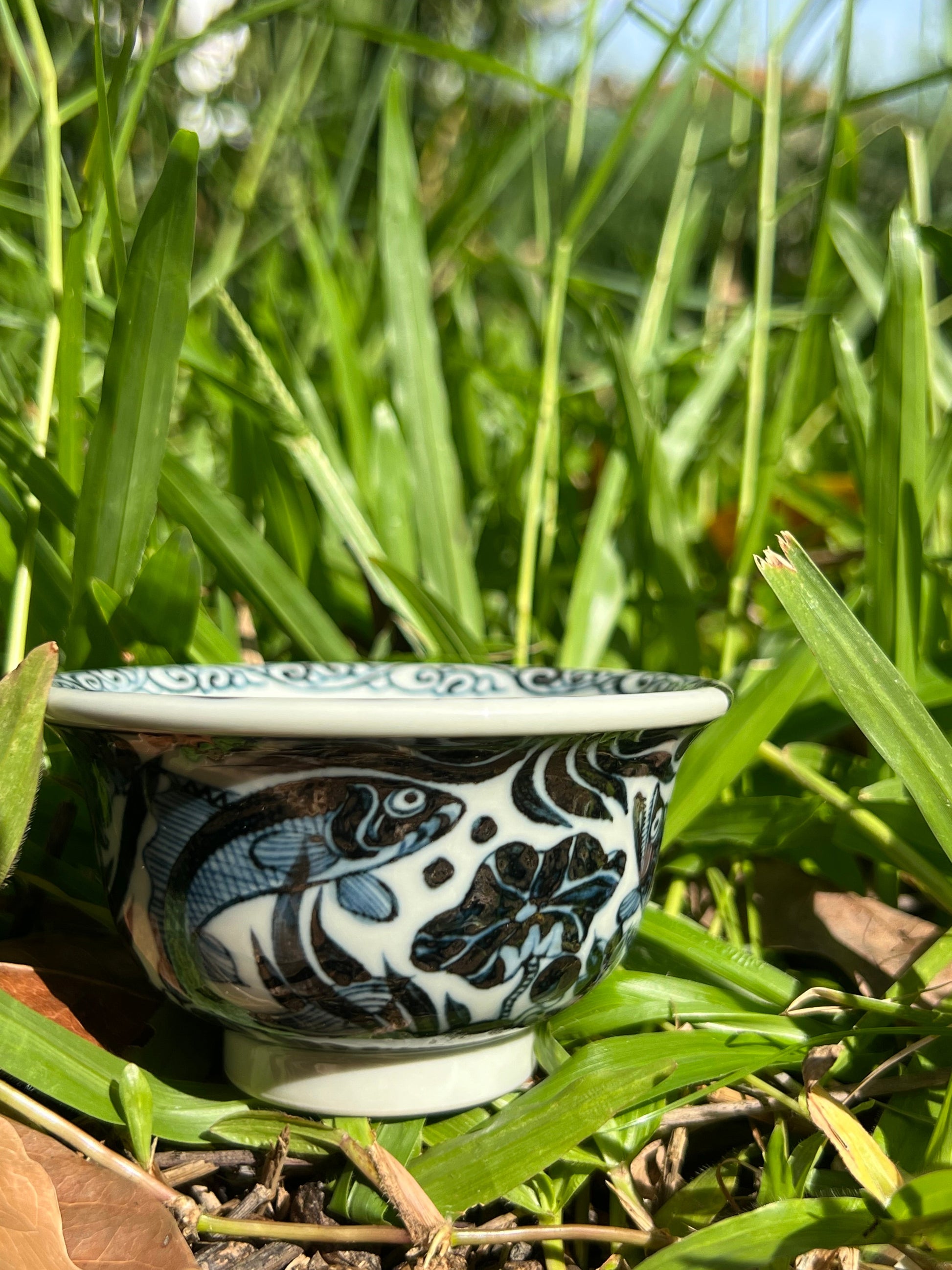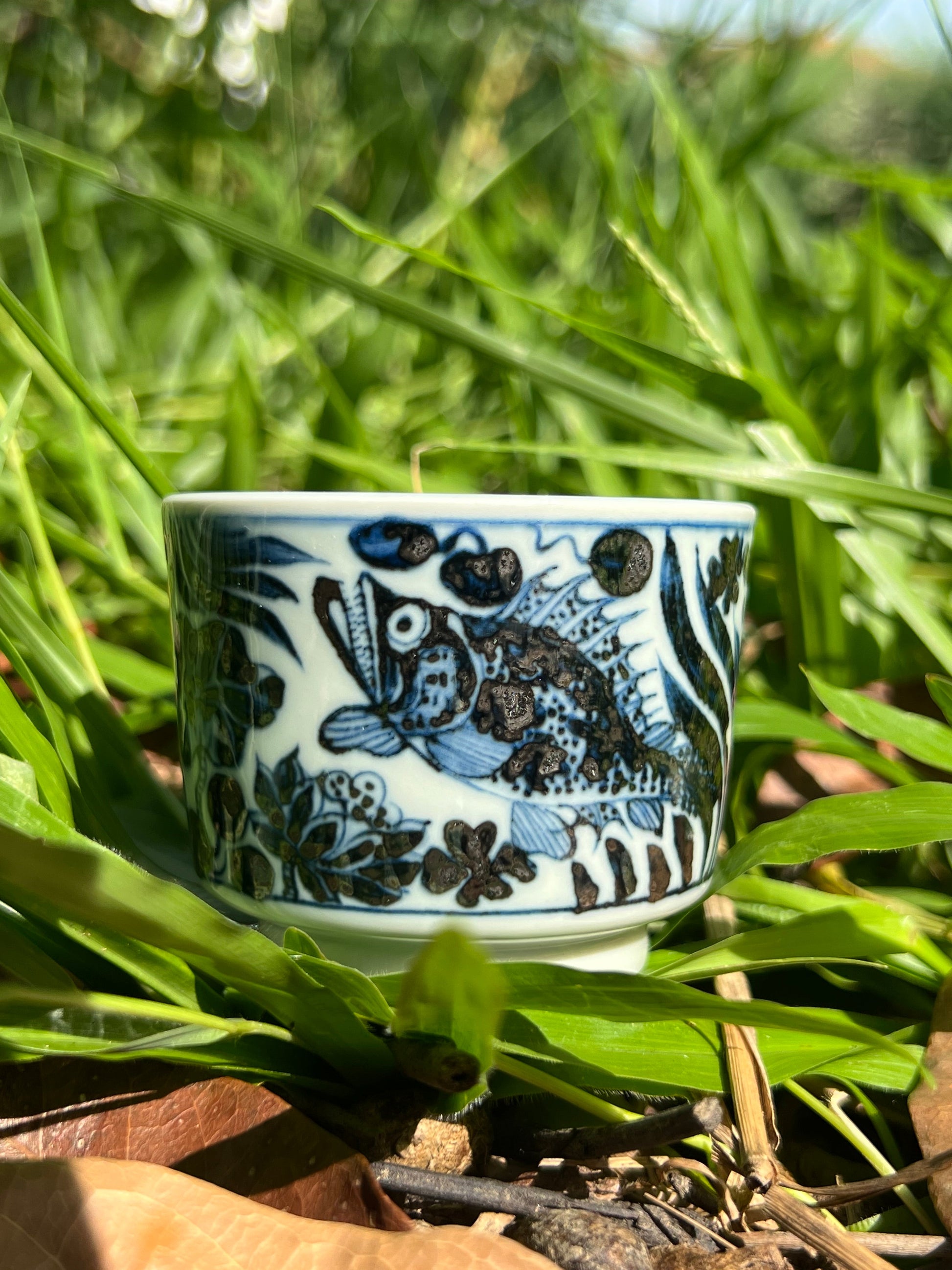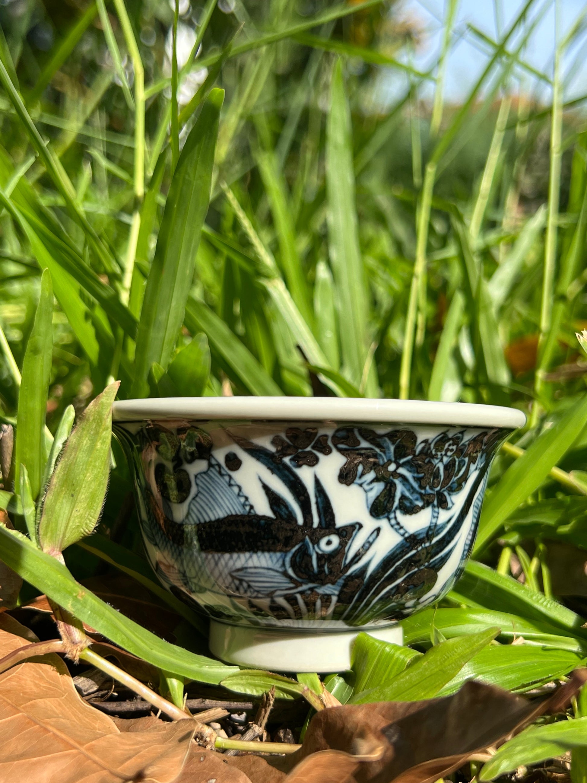 This Jingdezhen artwork gaiwan set was painted by a Jingdezhen experienced ceramic painter. The inside and outside of the gaiwan are painted with fish and algae patterns.