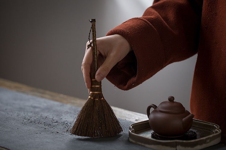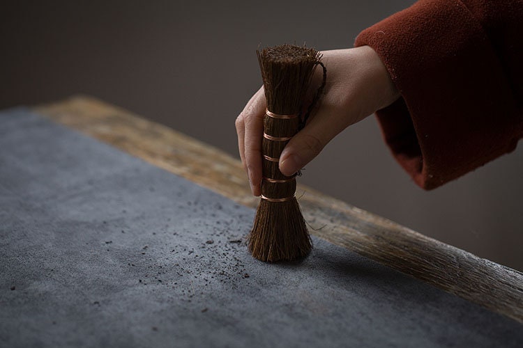 Those two little palm fibre tea brushes are used for sweeping away dust and tea residues, and it is also very suitable for cleaning tea table mats.