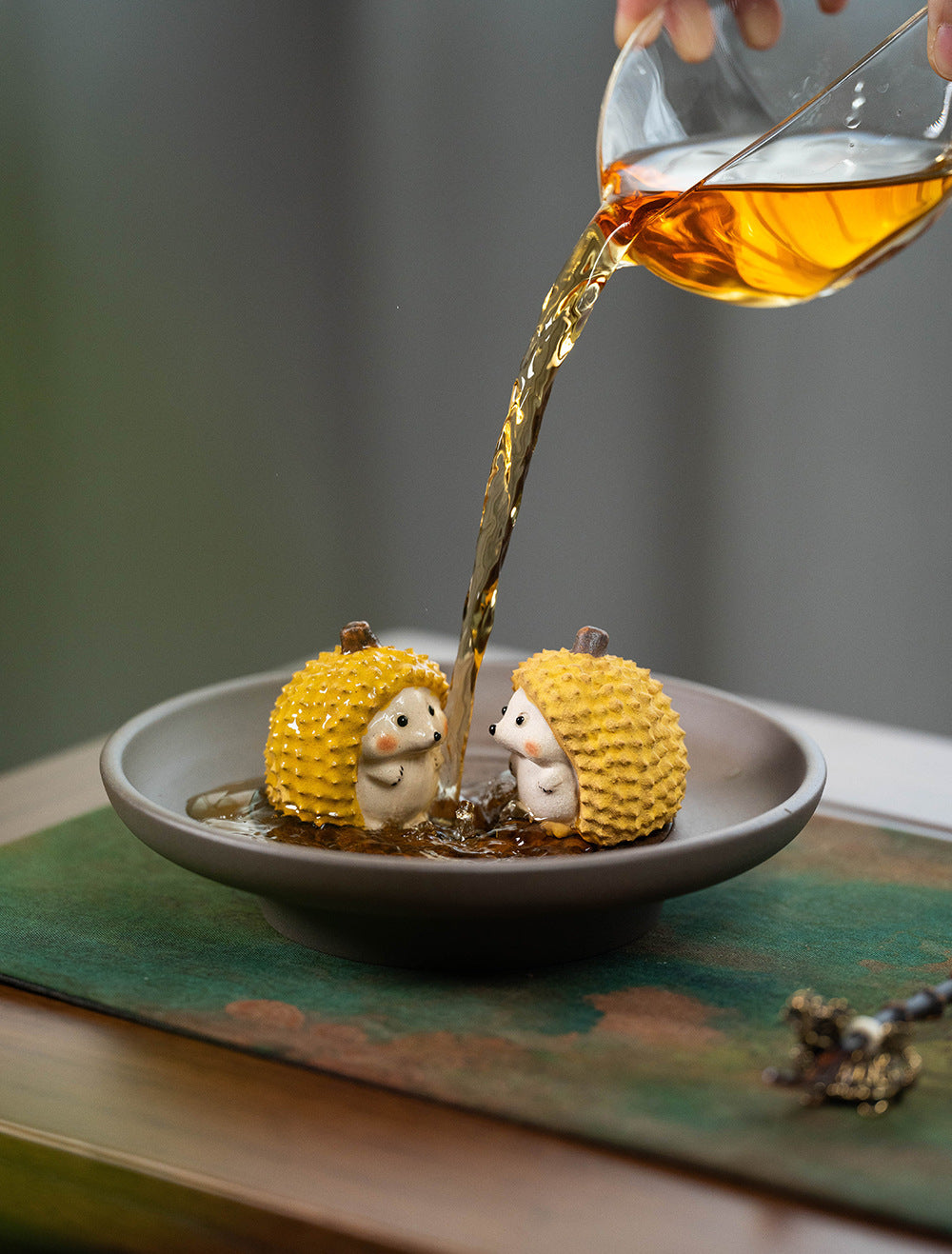 This cute tea pet is designed in the shape of durian combined with small animals. It is so cute and adorable that people can’t put it down. It is very cute and charming when placed on the tea table.