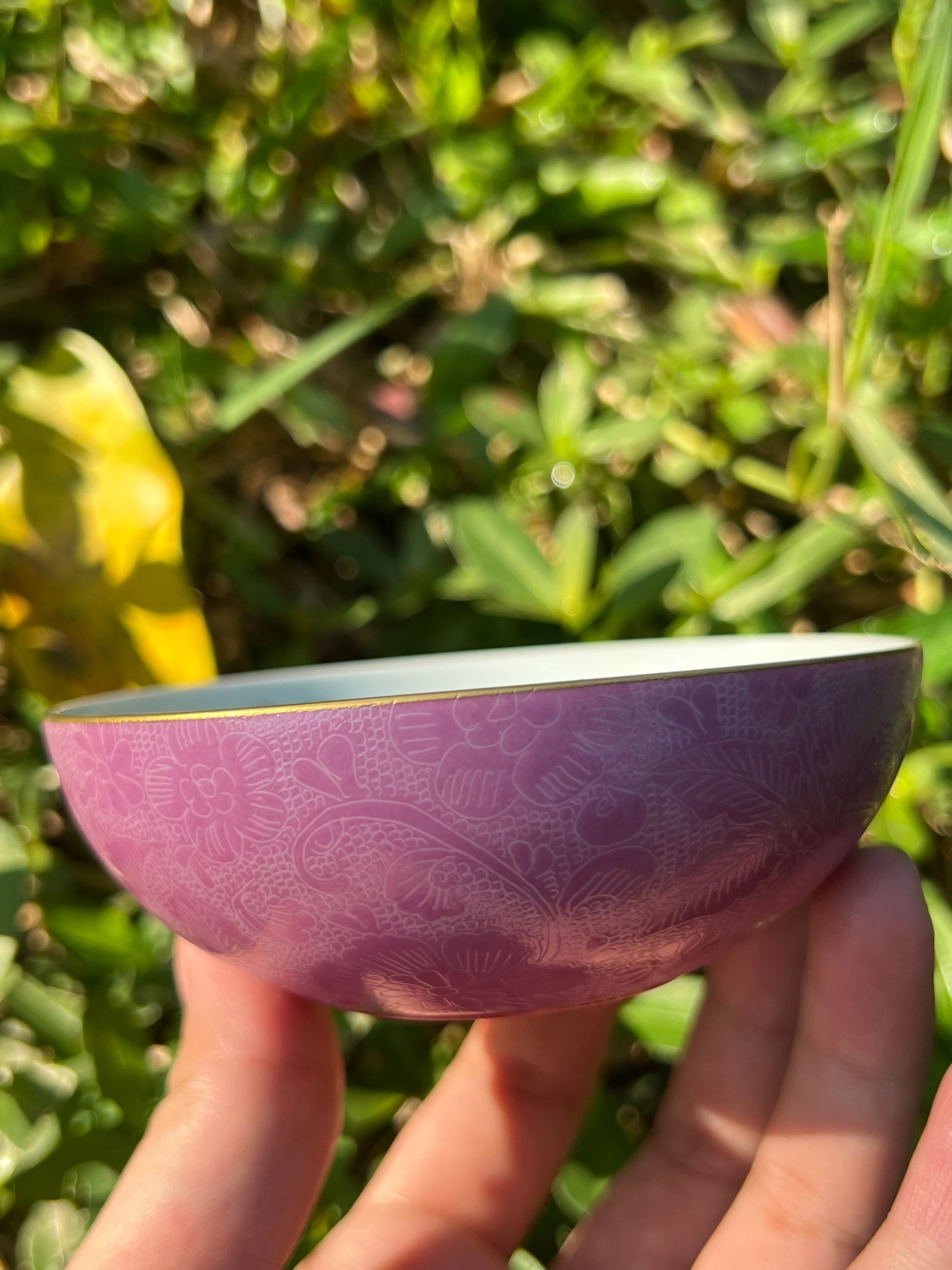 This Jingdezhen artwork gaiwan is a combination of Pahua craftsmanship and enamel craftsmanship. The outside of the gaiwan is made of Pahua craftsmanship and the inner part is made of famille rose craftsmanship.