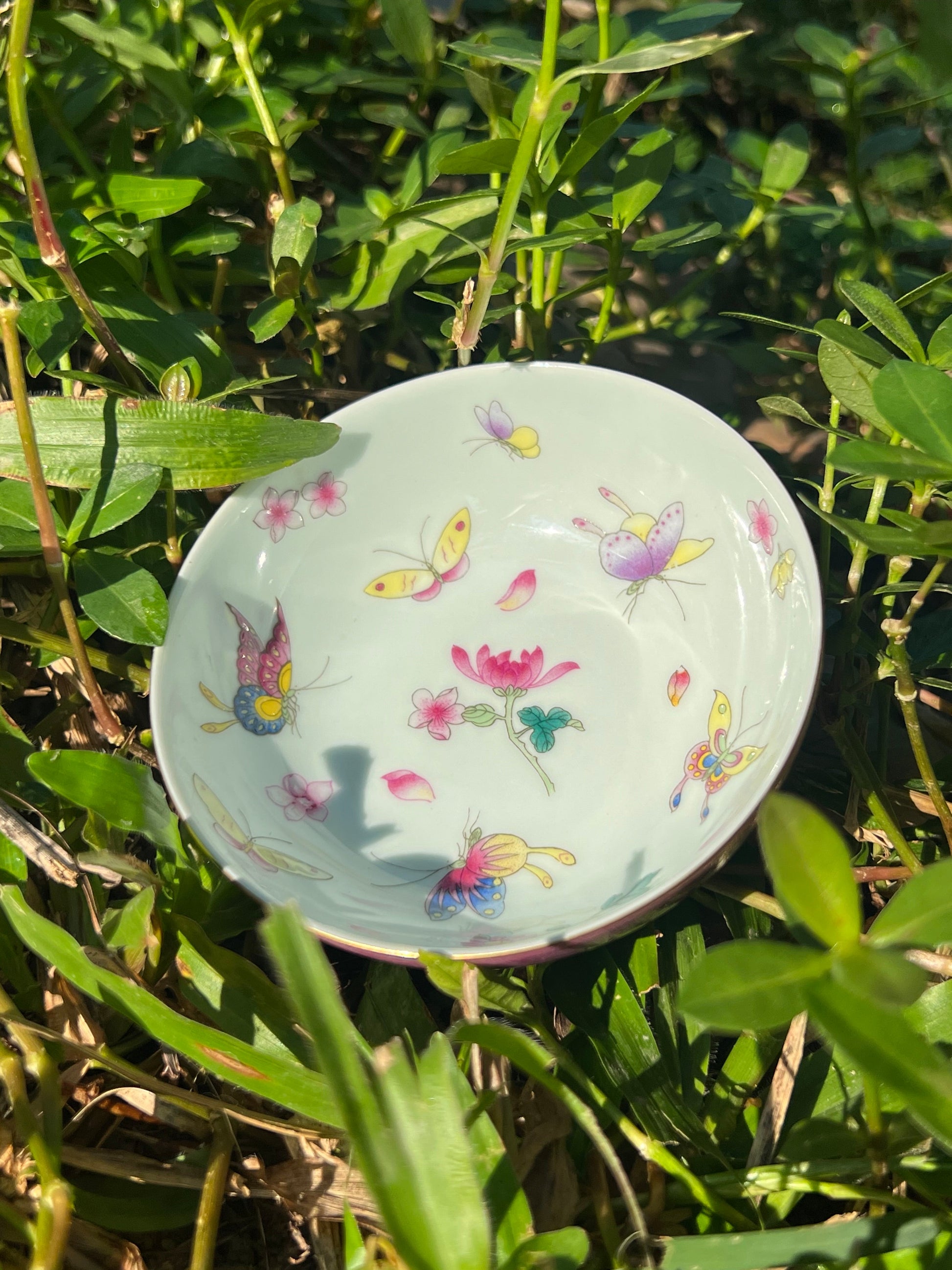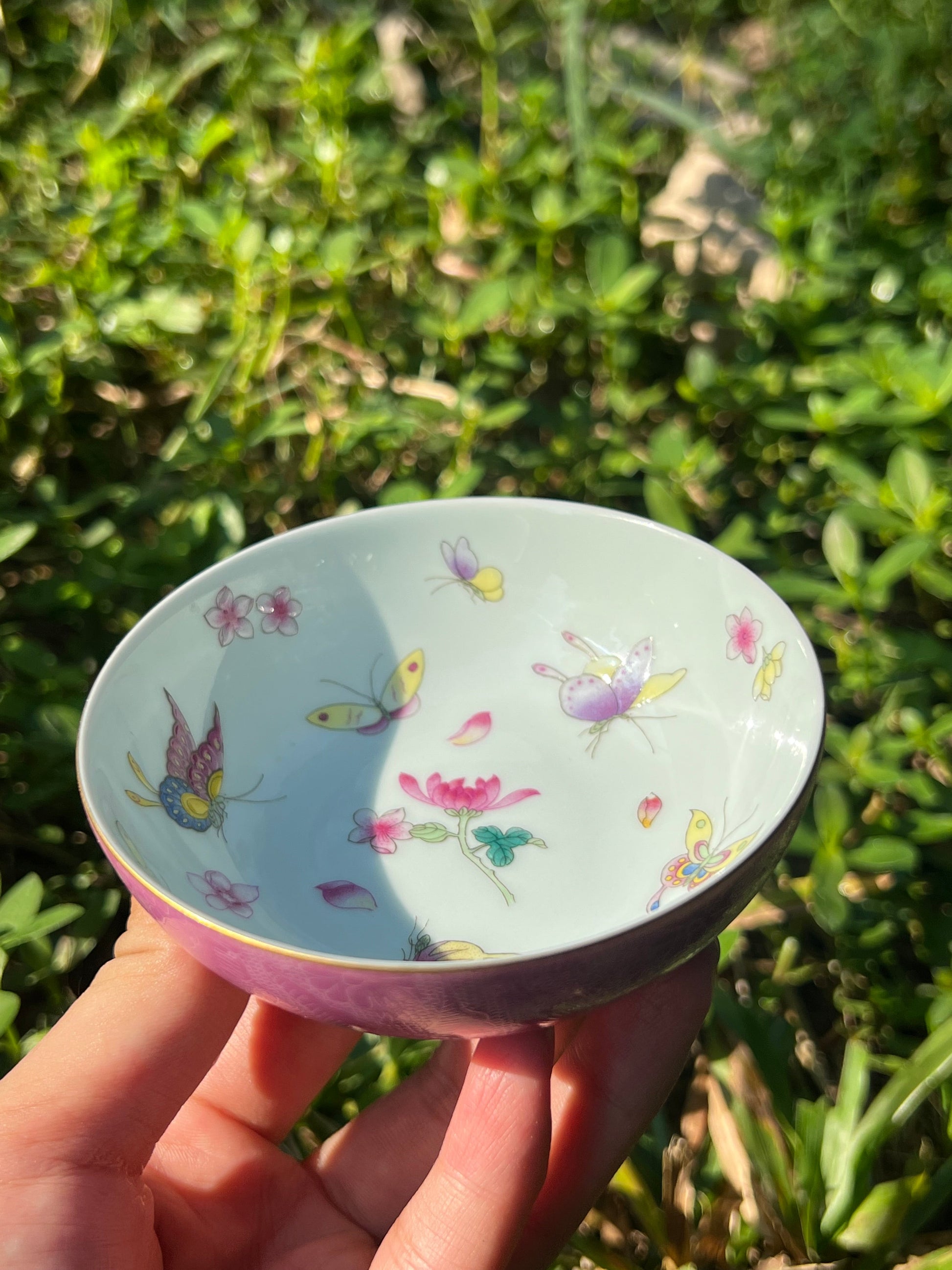 Hand Painted Pahua Chinese Butterfly Teacup Jingdezhen Master Ceramic Artwork Purple Base