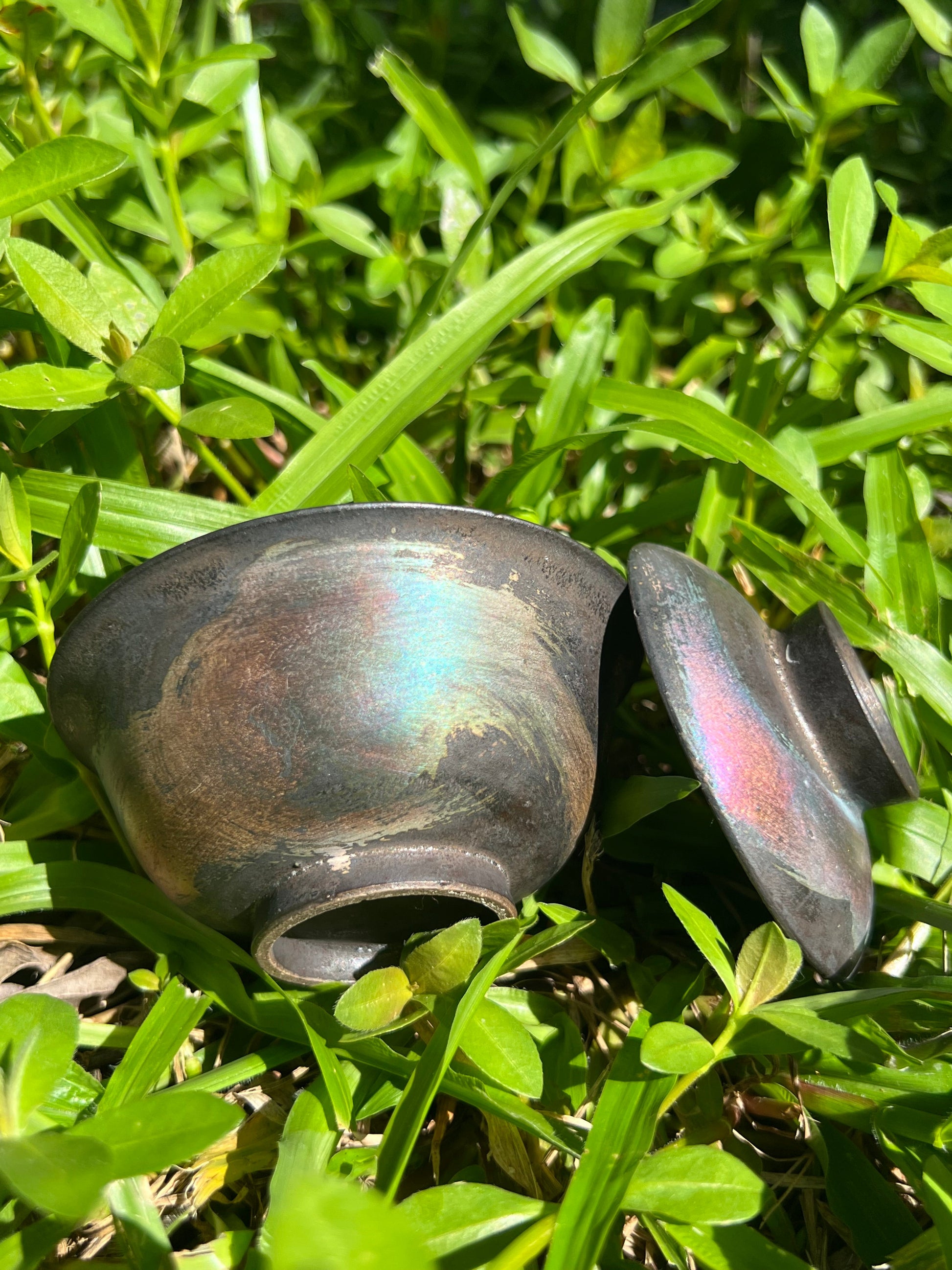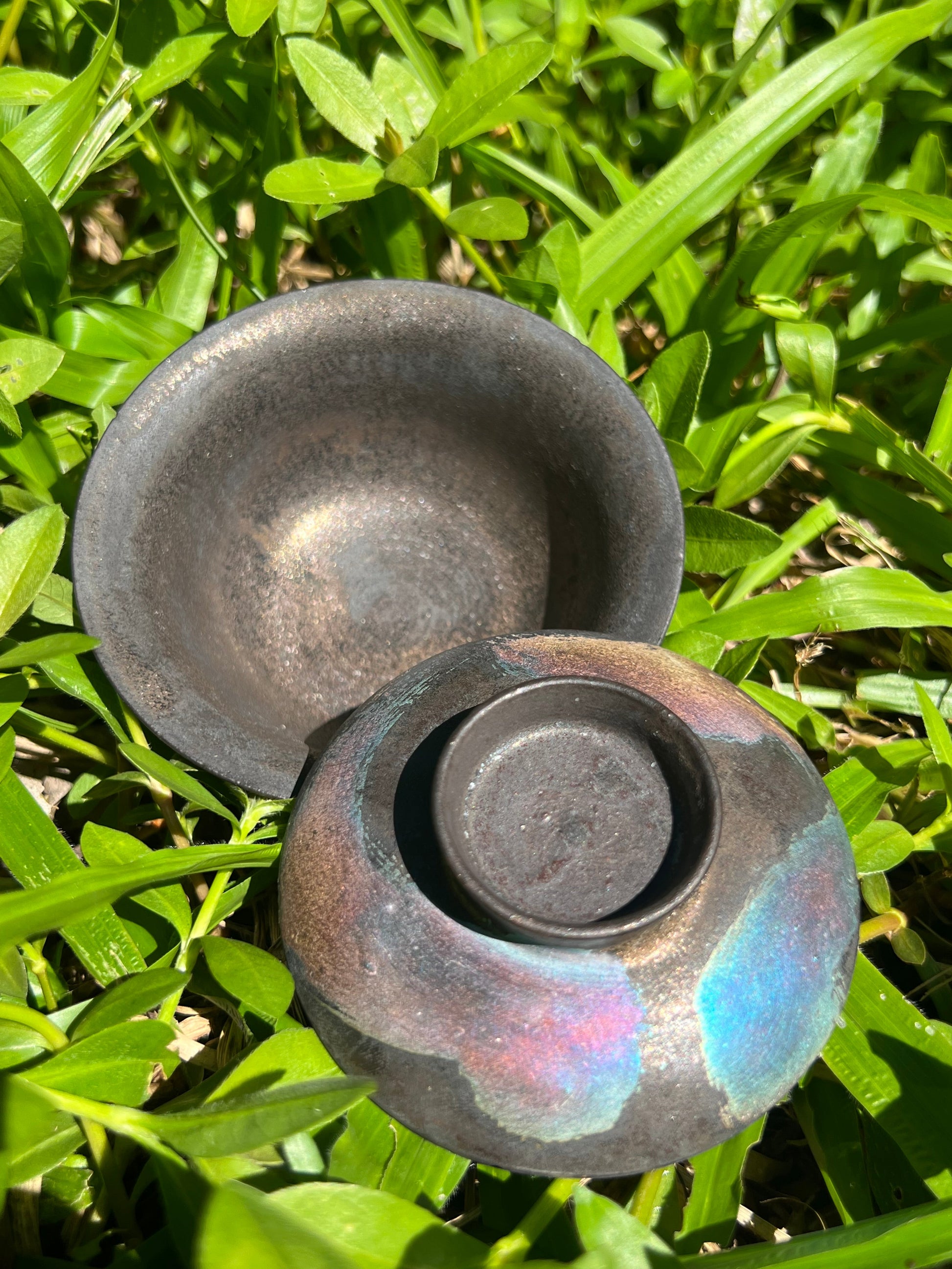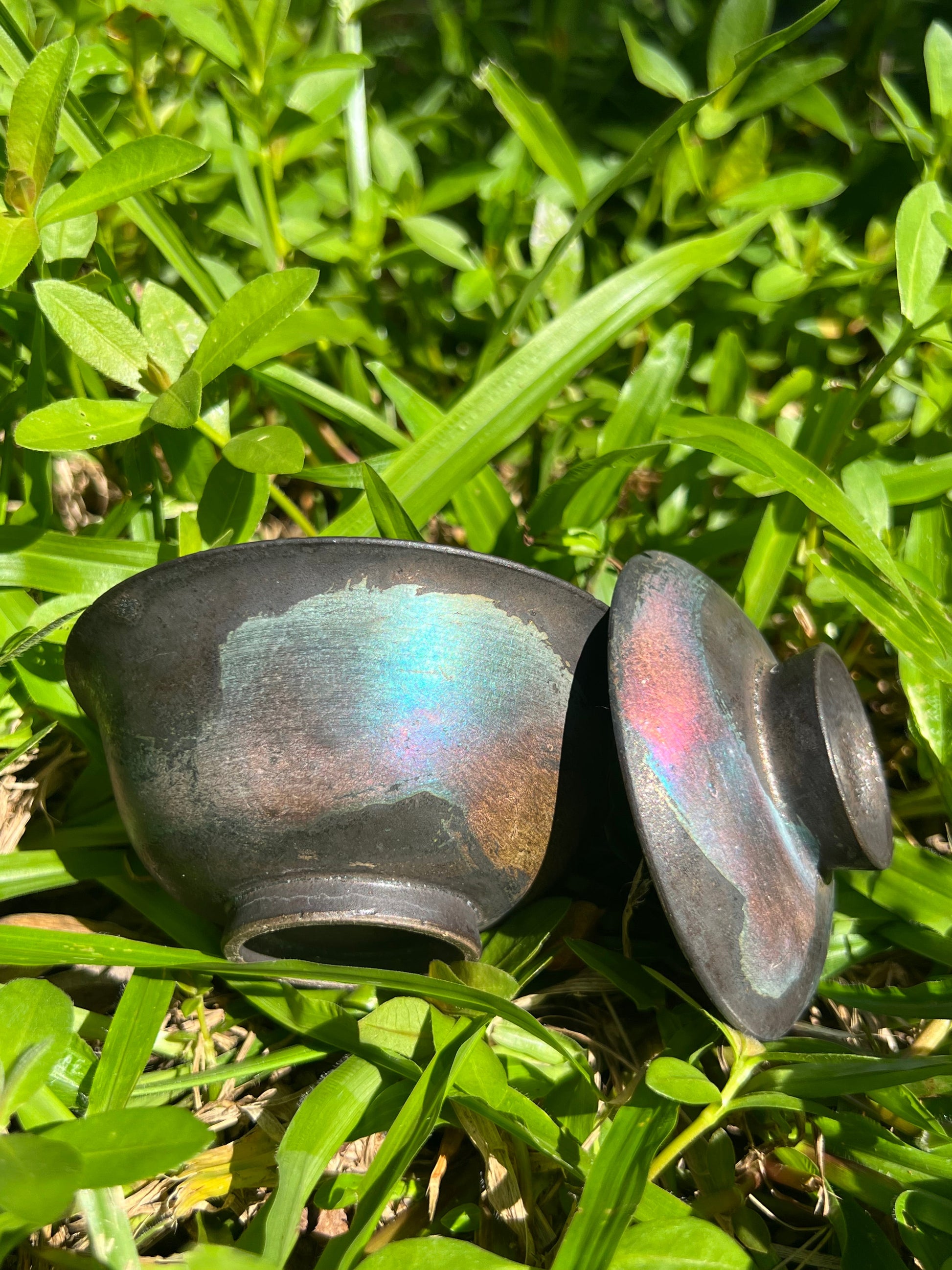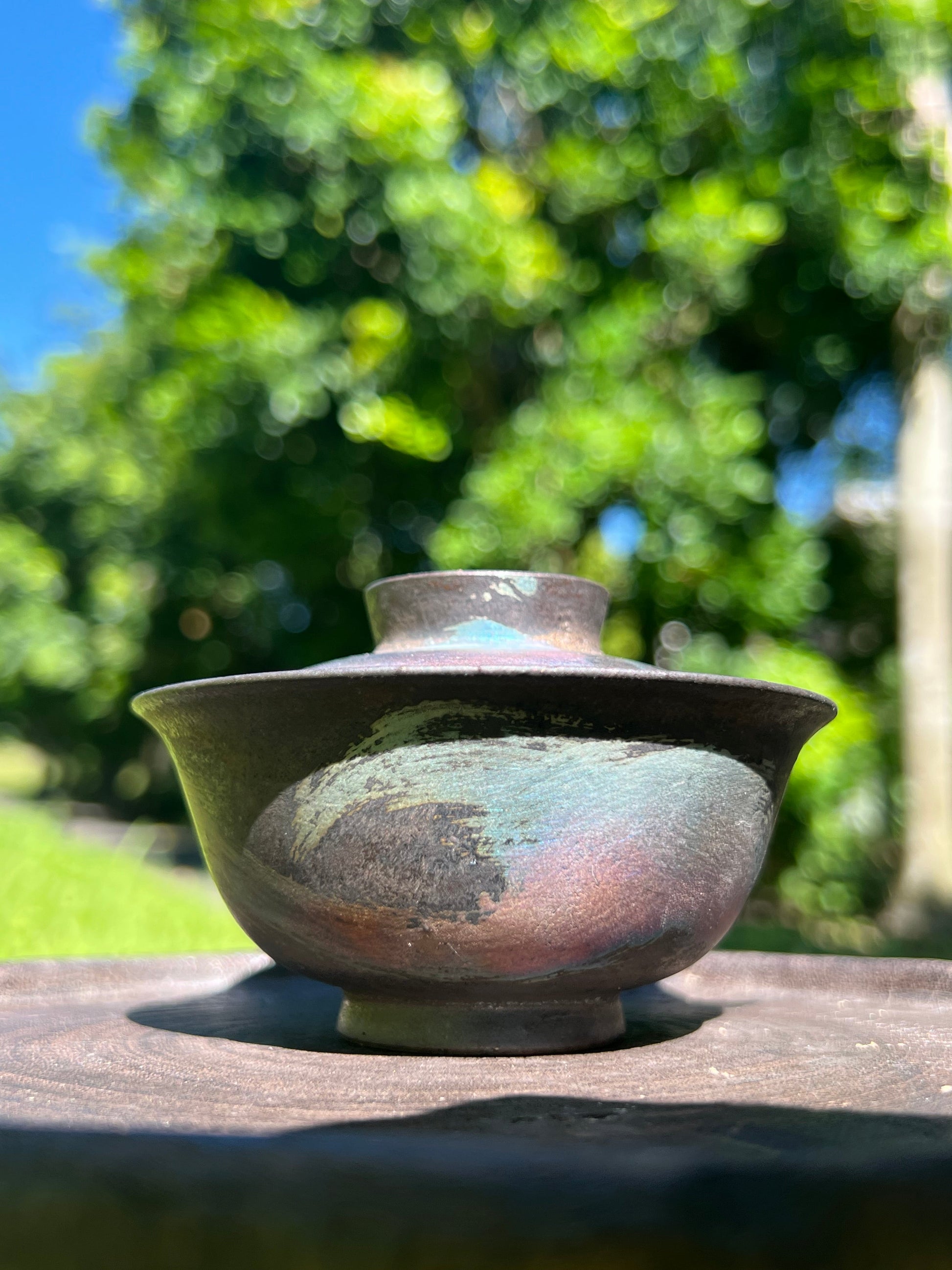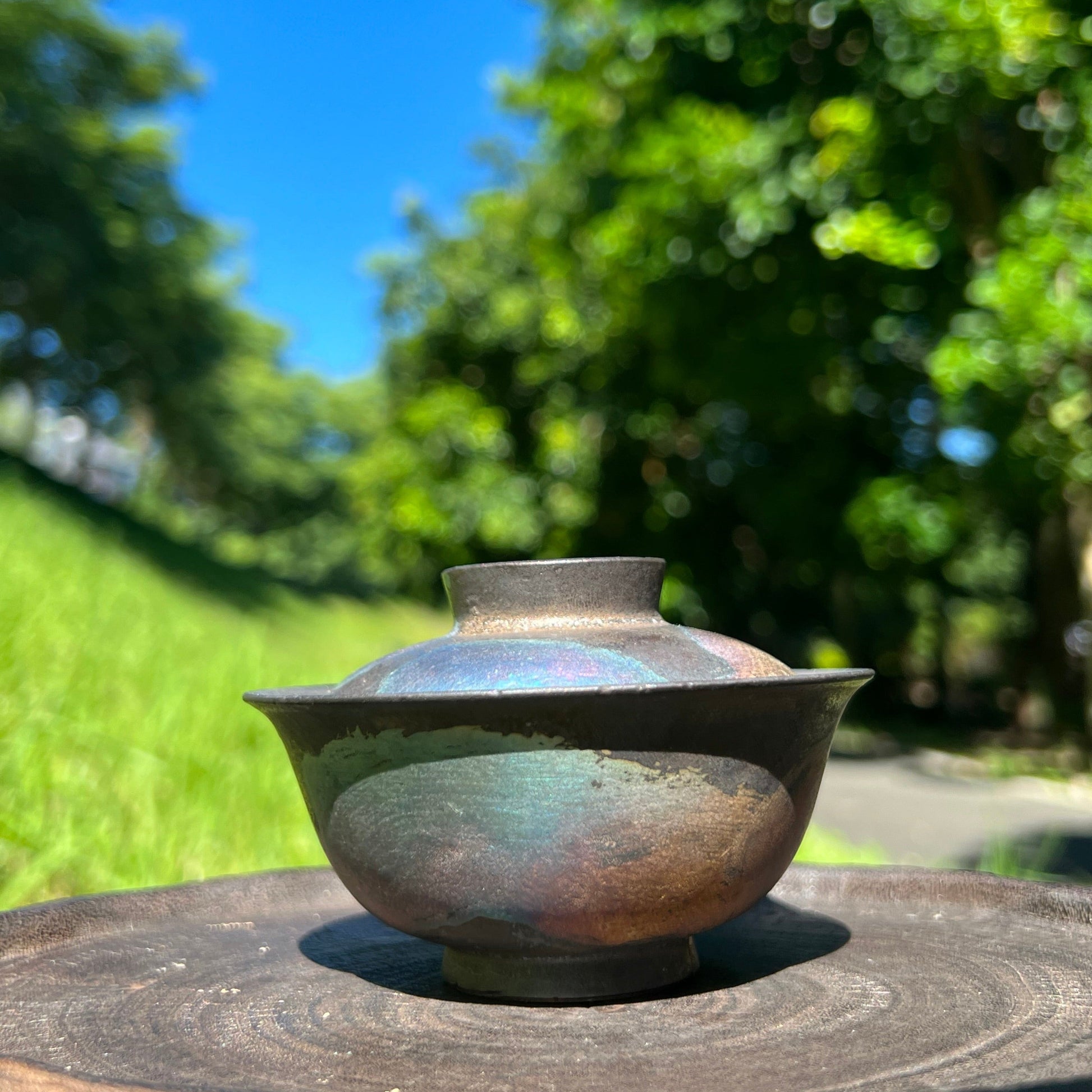 This unique Gaiwan is made of Chinese purple clay, then brushed with a silver glaze and finally fired to create an image of the Milky Way.
