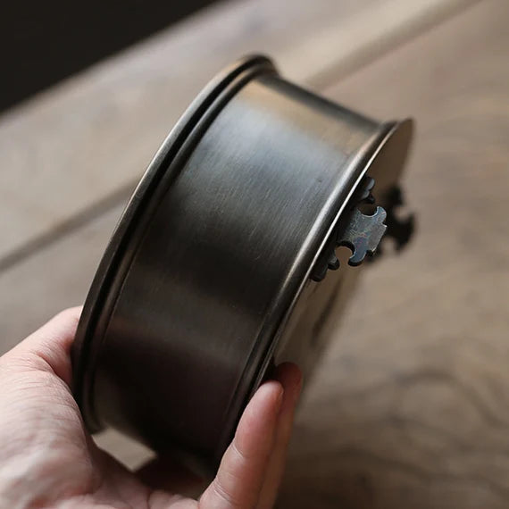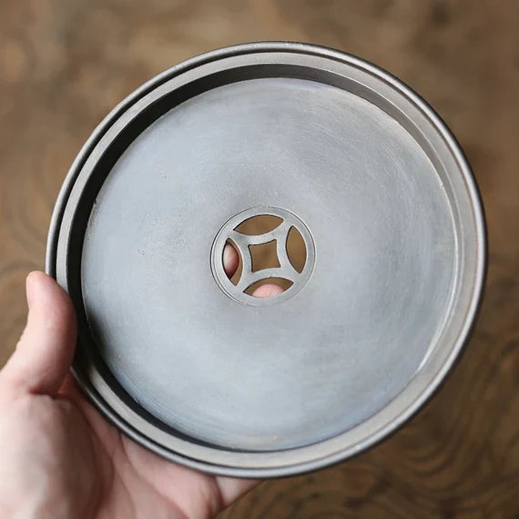 This classic Chaozhou tin tea tray is made by a very famous tin craftsman-Yan Jili(颜吉利), every his artwork is forged his name on the backside. if you are searching for a tea tray for your Gongfu tea set, this will be an excellent choice. Simple design but very elegant looking.