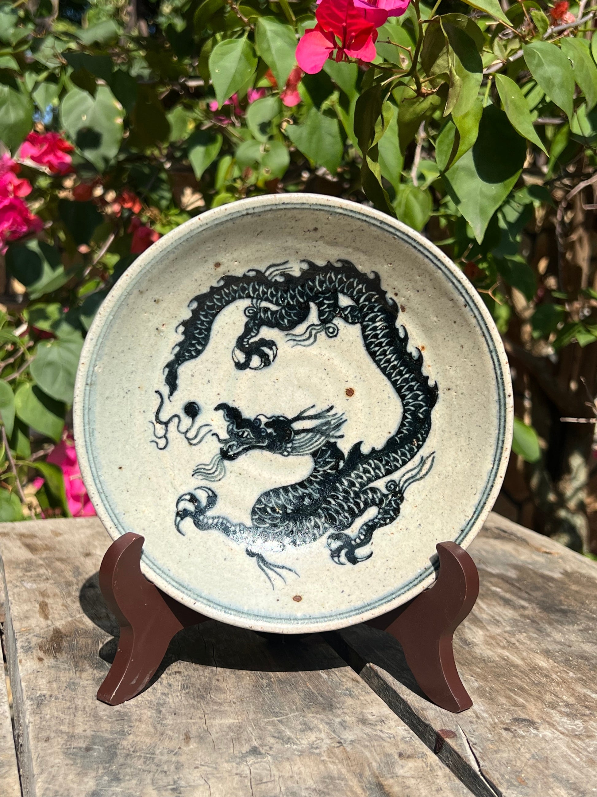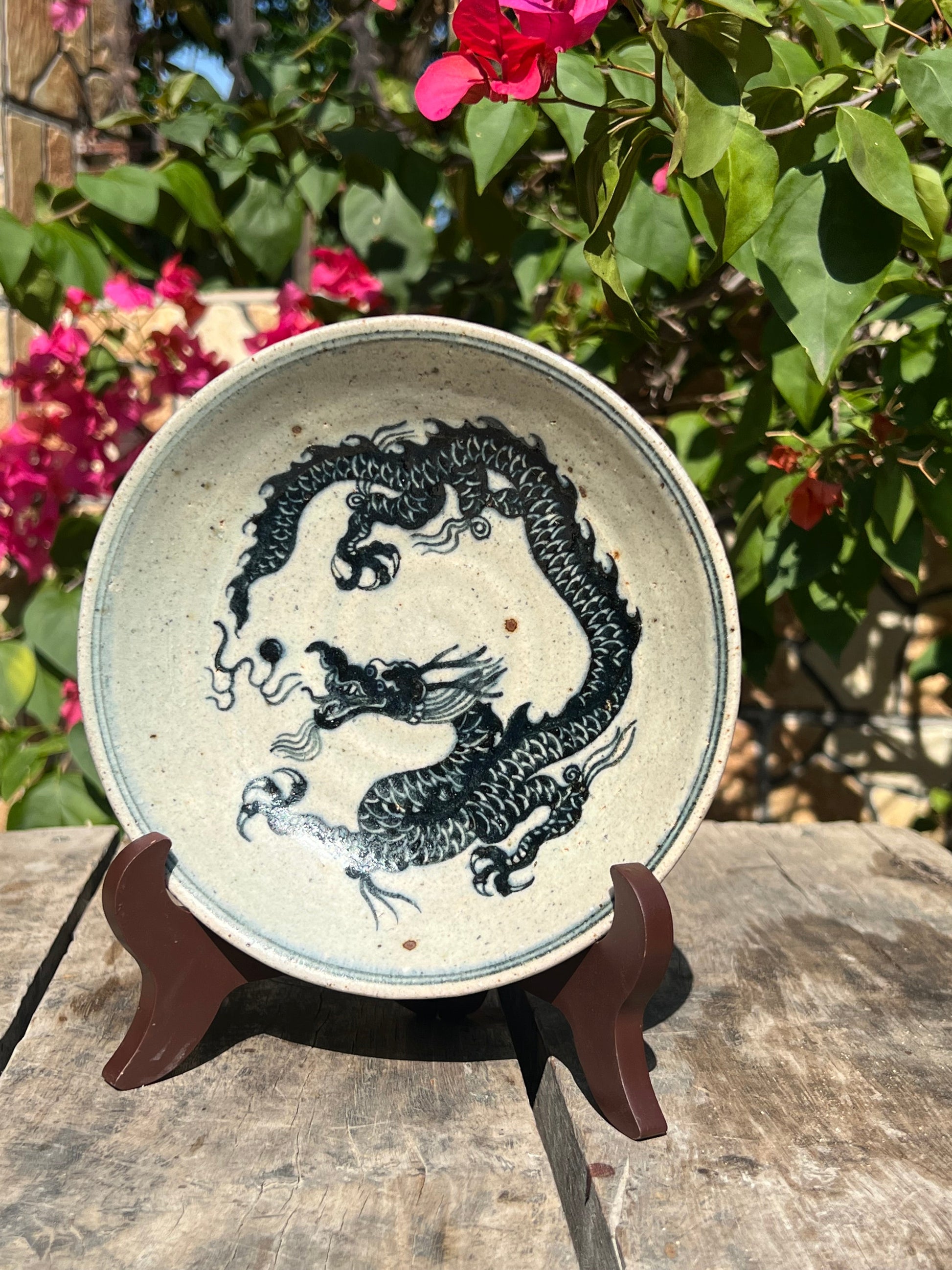 This Jingdezhen artwork tea tray is painted with a Chinese dragon and by Jingdezhen experienced ceramicist.