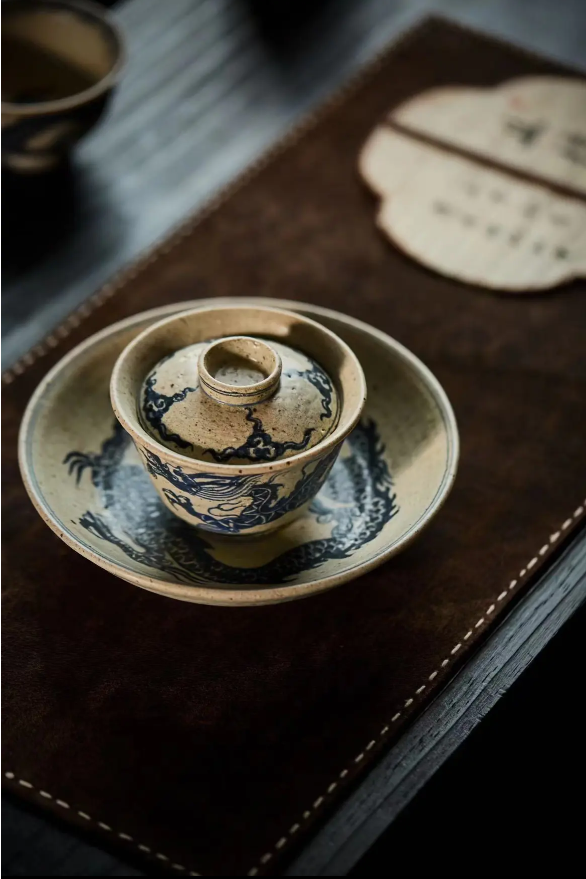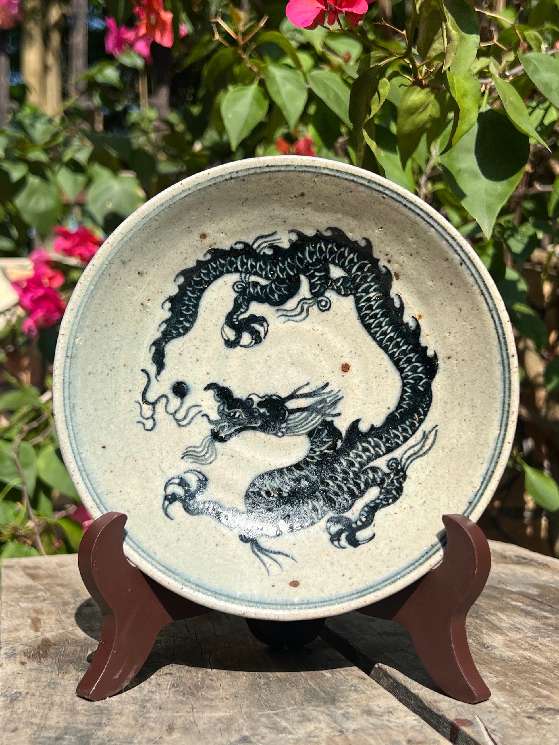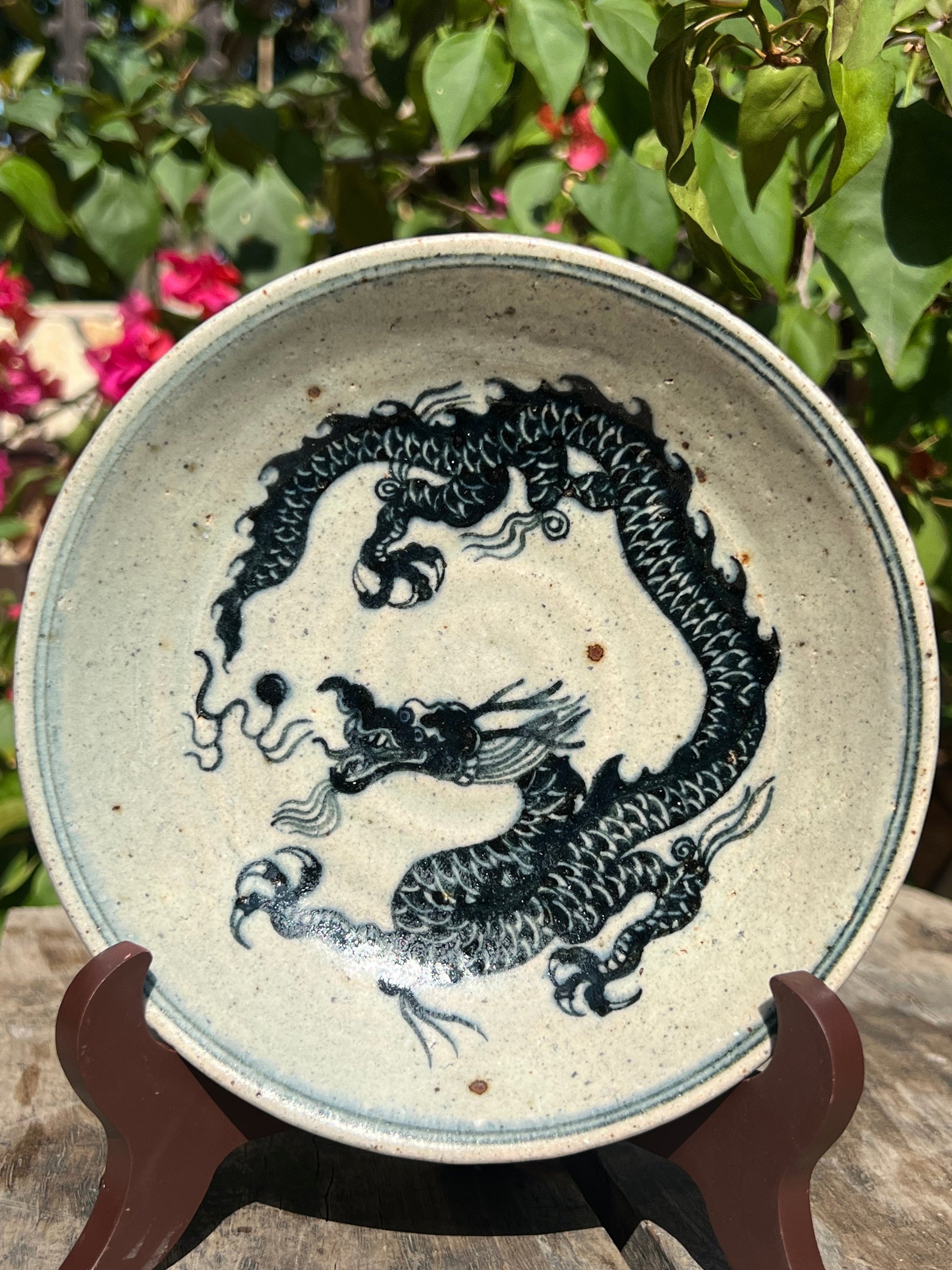 Chinese Handpainted Chinese Dragon Blue and White Pottery Jingdezhen Tea tray Teapot Holder Master Pottery Artwork