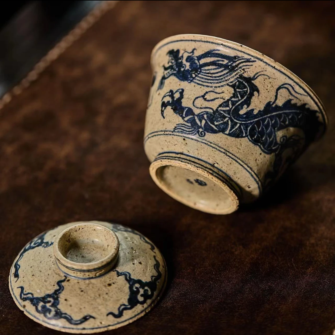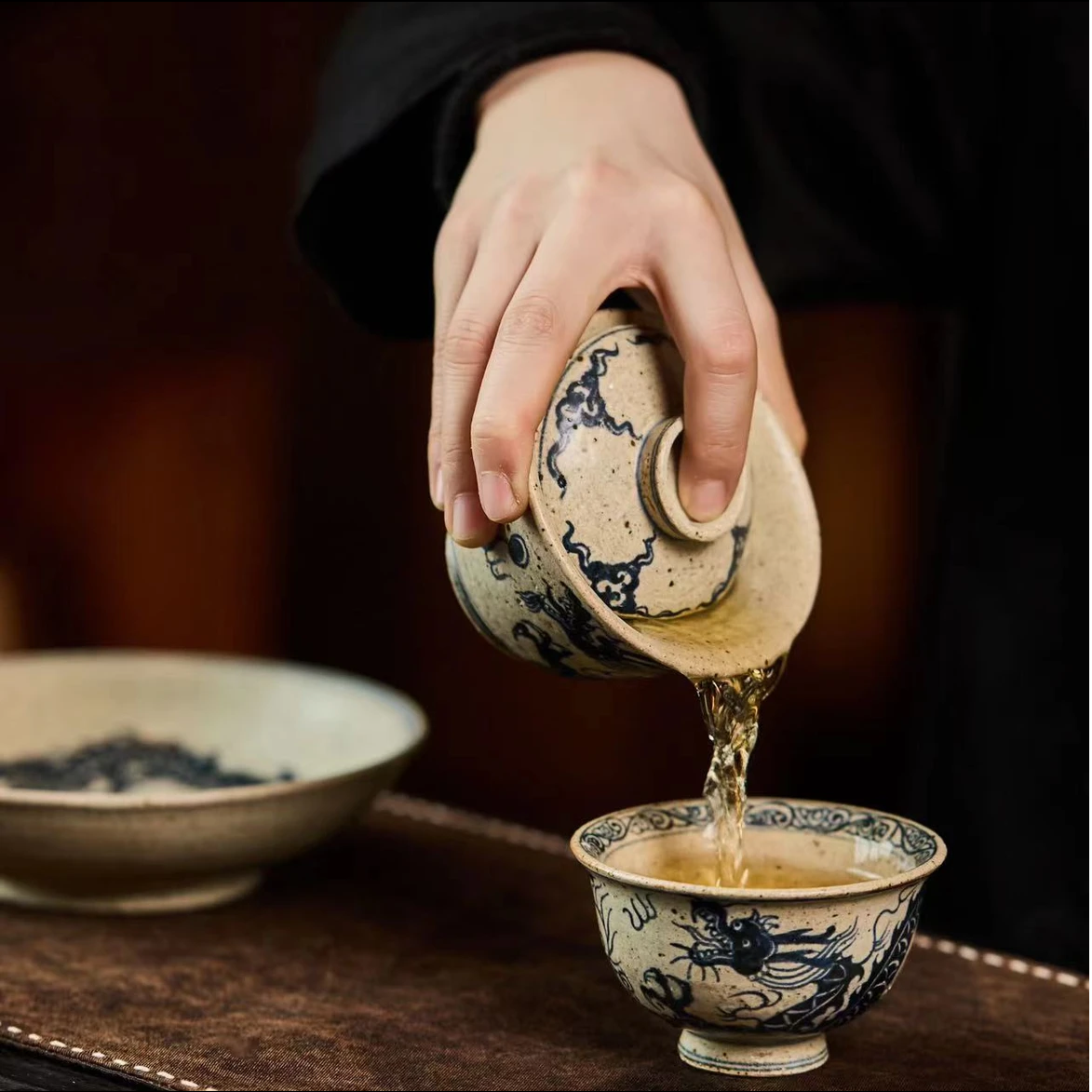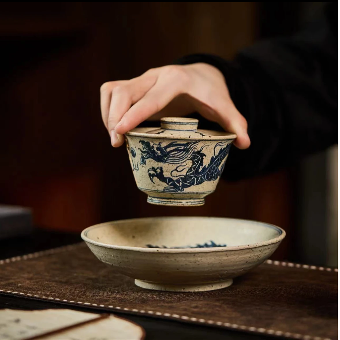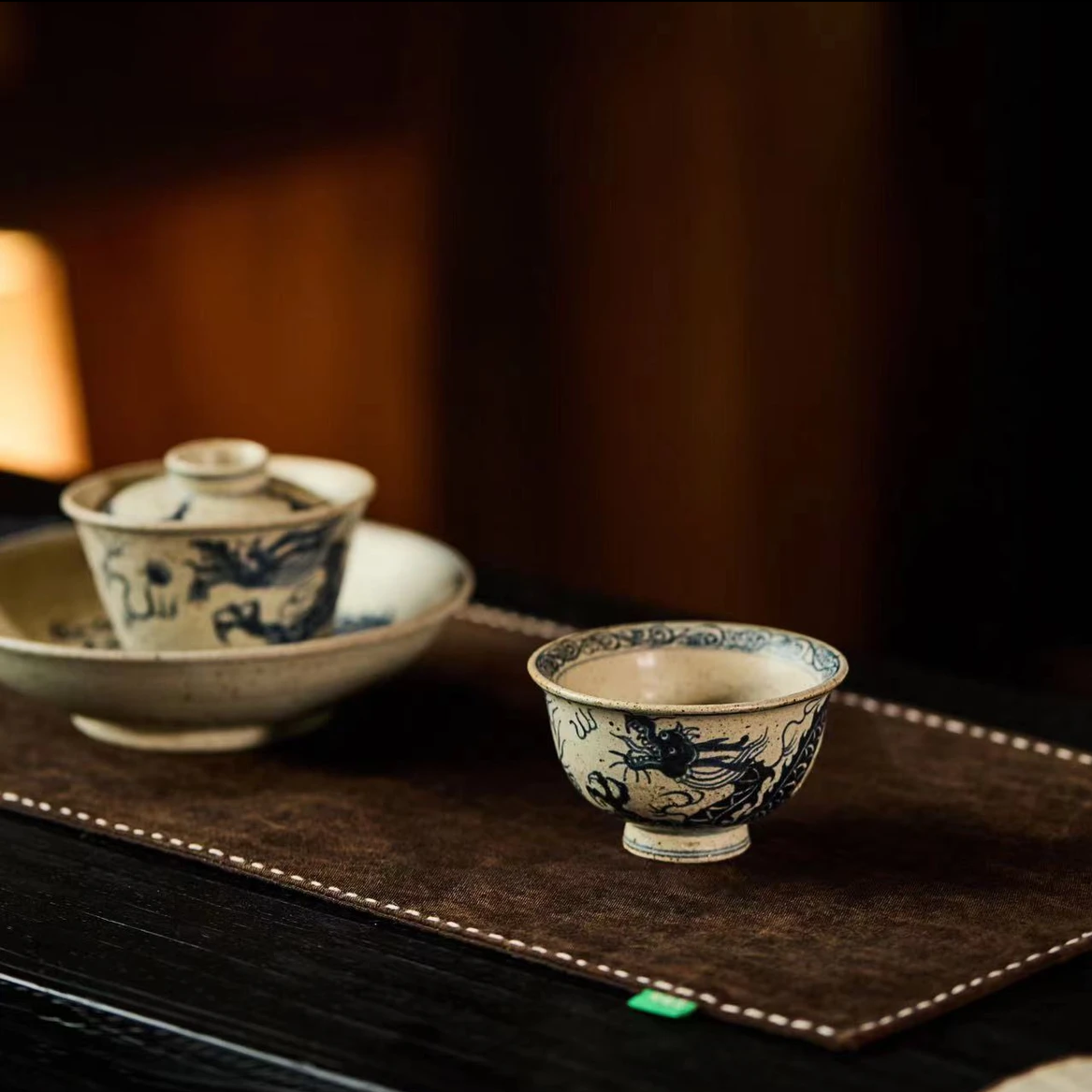 Chinese Handpainted Chinese Dragon Blue and White Pottery Jingdezhen Tea tray Teapot Holder Master Pottery Artwork