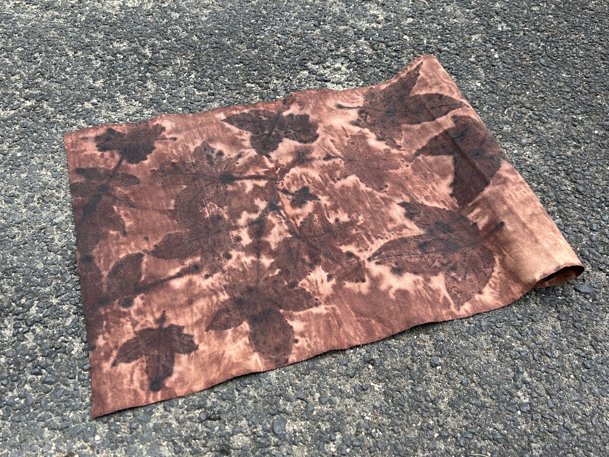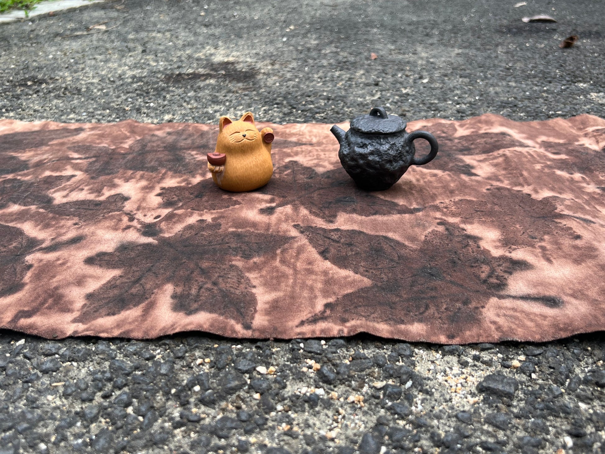 This hand-dyed tea mat is reddish brown, as if we are drinking tea together in a maple forest in late autumn :)